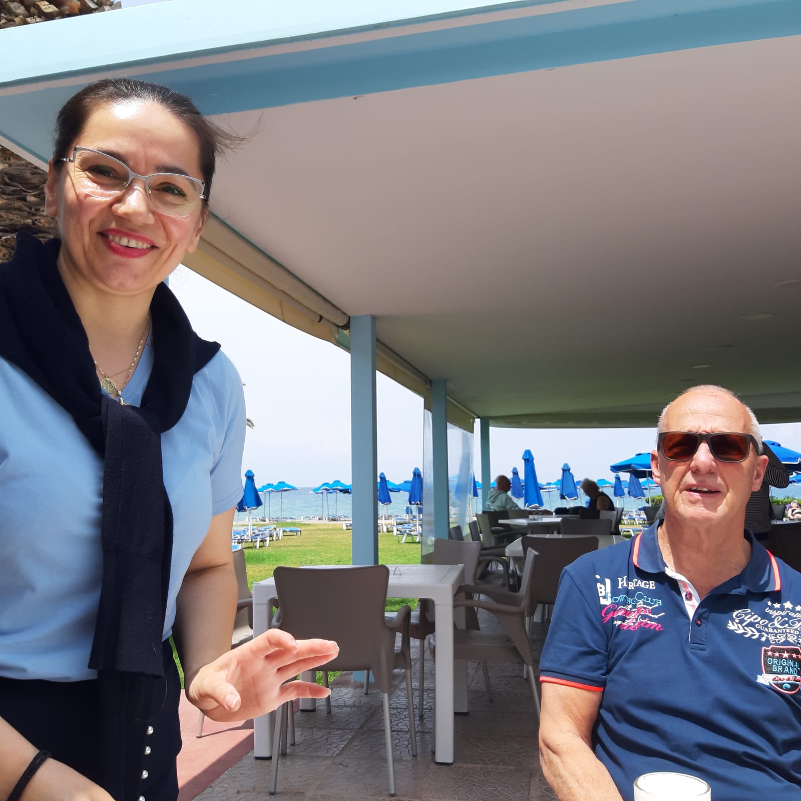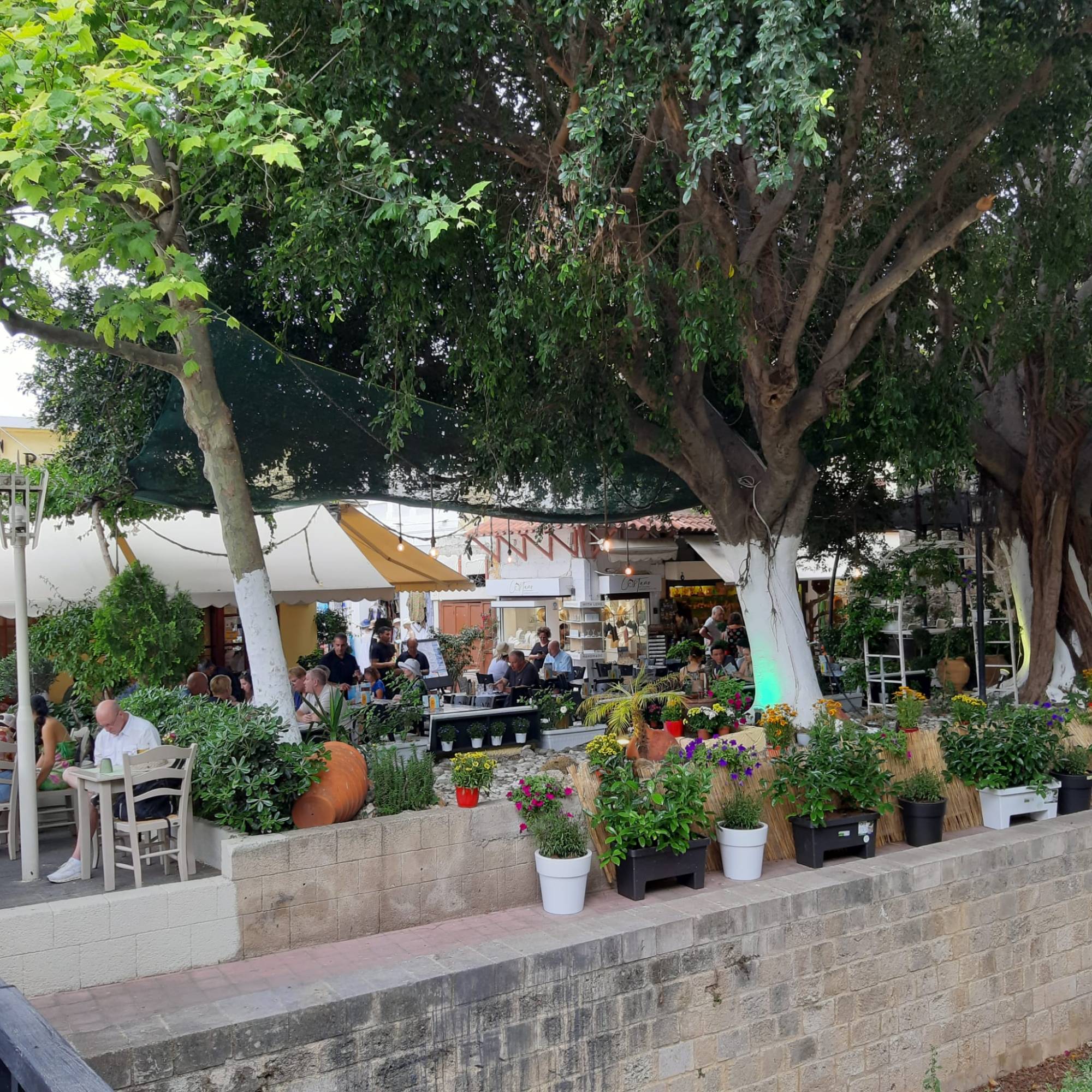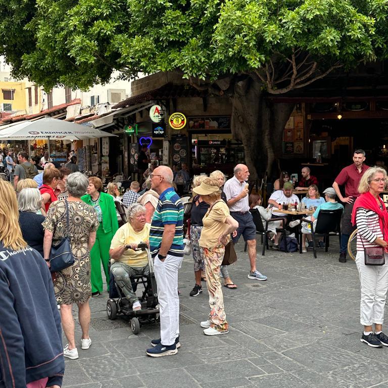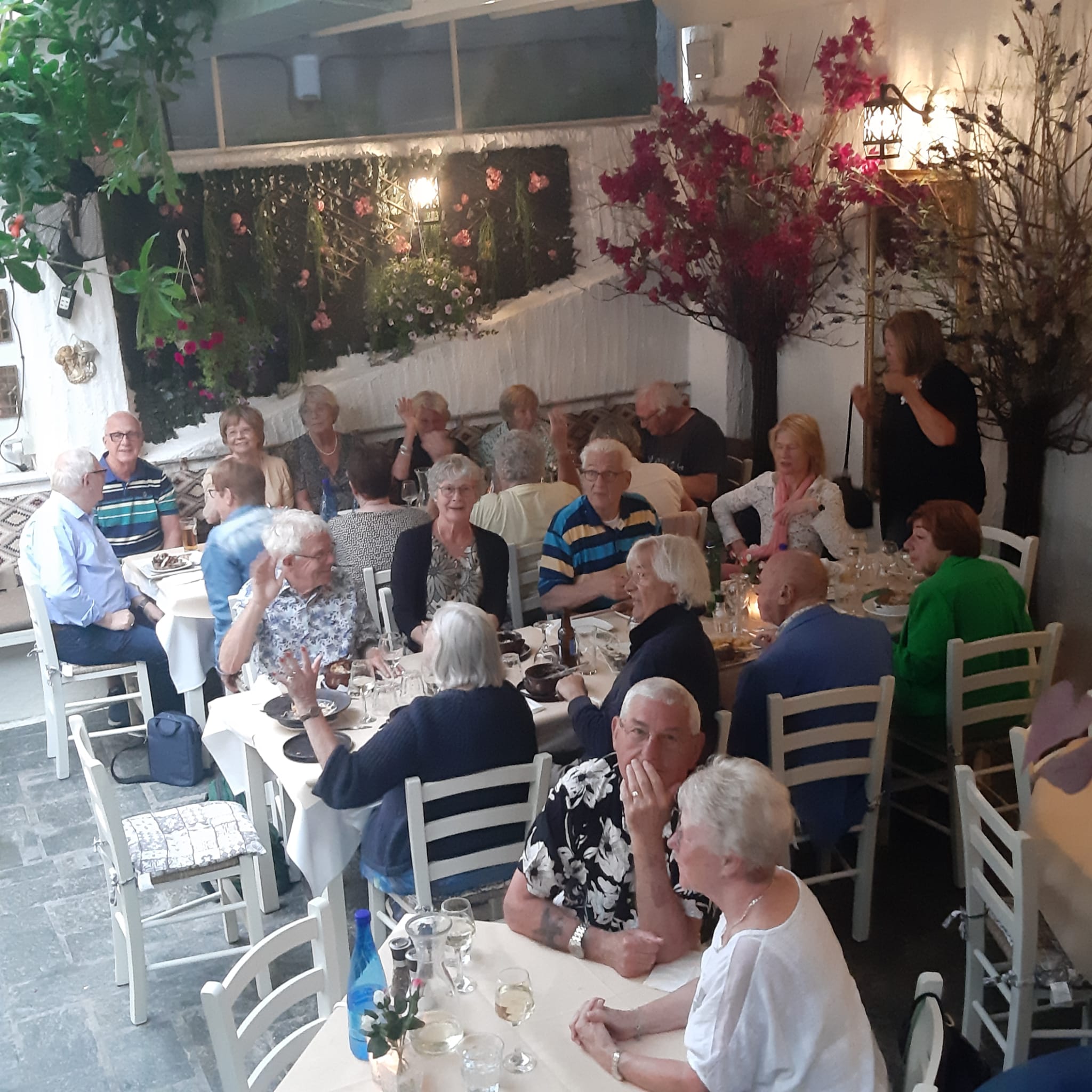 Ik, Jacqueline, ga eerder samen met Frido en Gjilke naar het restaurant, waar we met de groep gaan eten. Het wordt daar een vrolijke boel en omdat er nog wat tijd over is voordat het busje ons weer zal komen ophalen ga ik met wat gasten nog even de stad door en drinken we op een leuk pleintje koffie. De anderen zijn ook op de afgesproken tijd richting de uitgang van Rhodos stad gegaan. Om 22.00 uur rijden we weer richting hotel.