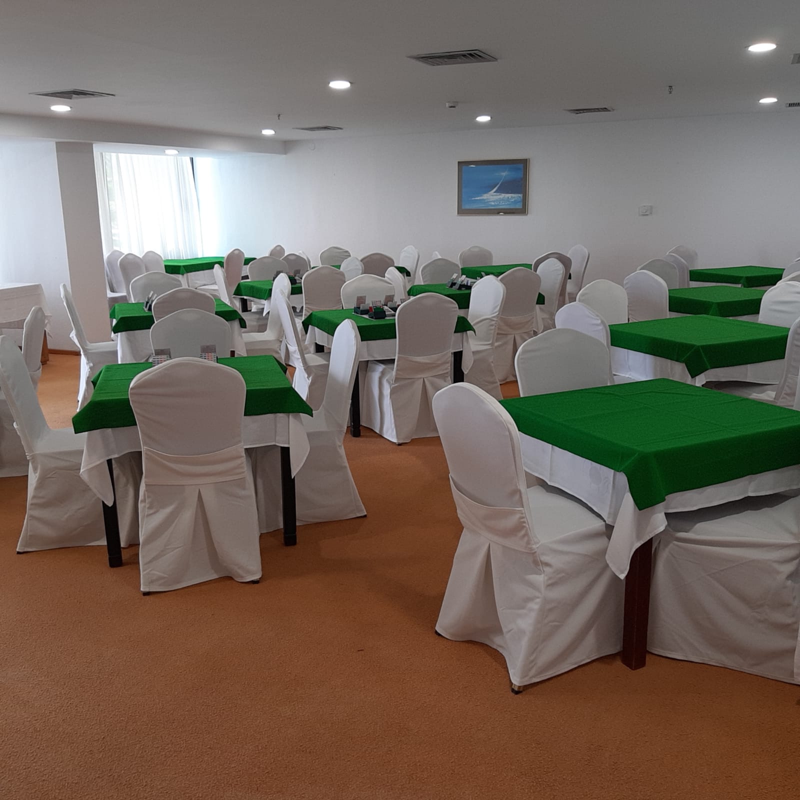 De ruime zaal is dit jaar gerenoveerd. Mooie tafels met groene kleedjes en goede verlichting. Onze pennen hebben we uitgereikt met een gelukspoppetje of een klavertje 4. Rosey en Frido zijn 1e geworden vandaag. Naar de uitslag.