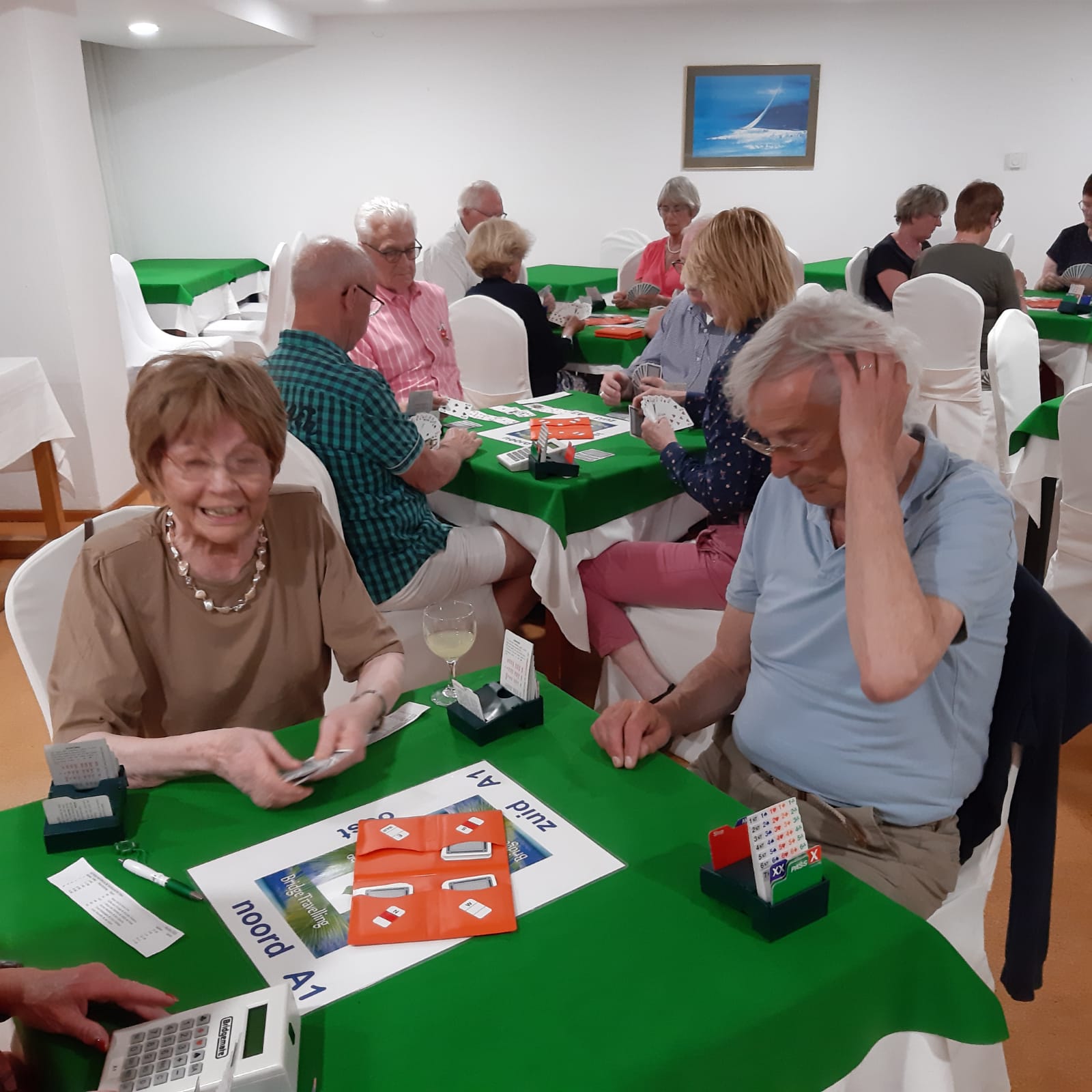Het bridgen liep weer als een geoliede machine. Jacqueline en Edith zijn voor de 3e keer 1e geworden. Gefeliciteerd! Naar de uitslag. Petra en Han staan nog steeds 1e in de competitie achtervolgd door Jacqueline en Edith. Het verschil is 2,18% 🙂 . Morgen is de bonte avond.