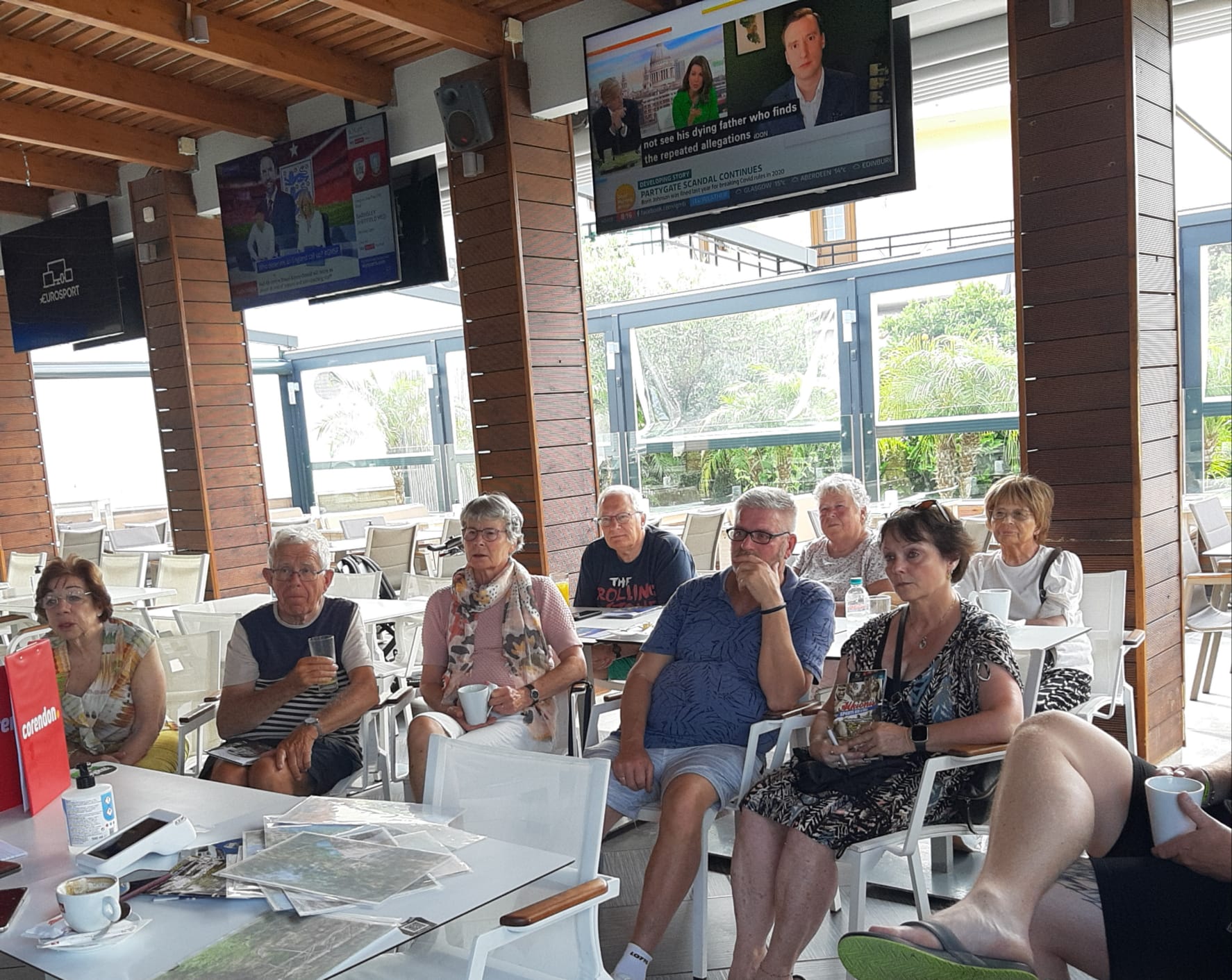 We zijn vroeg vertrokken om het eiland wat beter te leren kennen. Om 08.30 uur stond de bus al voor het hotel en Corrie die we al kennen van vorige reizen heette ons van harte welkom. We kregen allemaal een ketting met een ontvangstapparaatje, inclusief oortje, zodat we Corrie overal goed konden verstaan