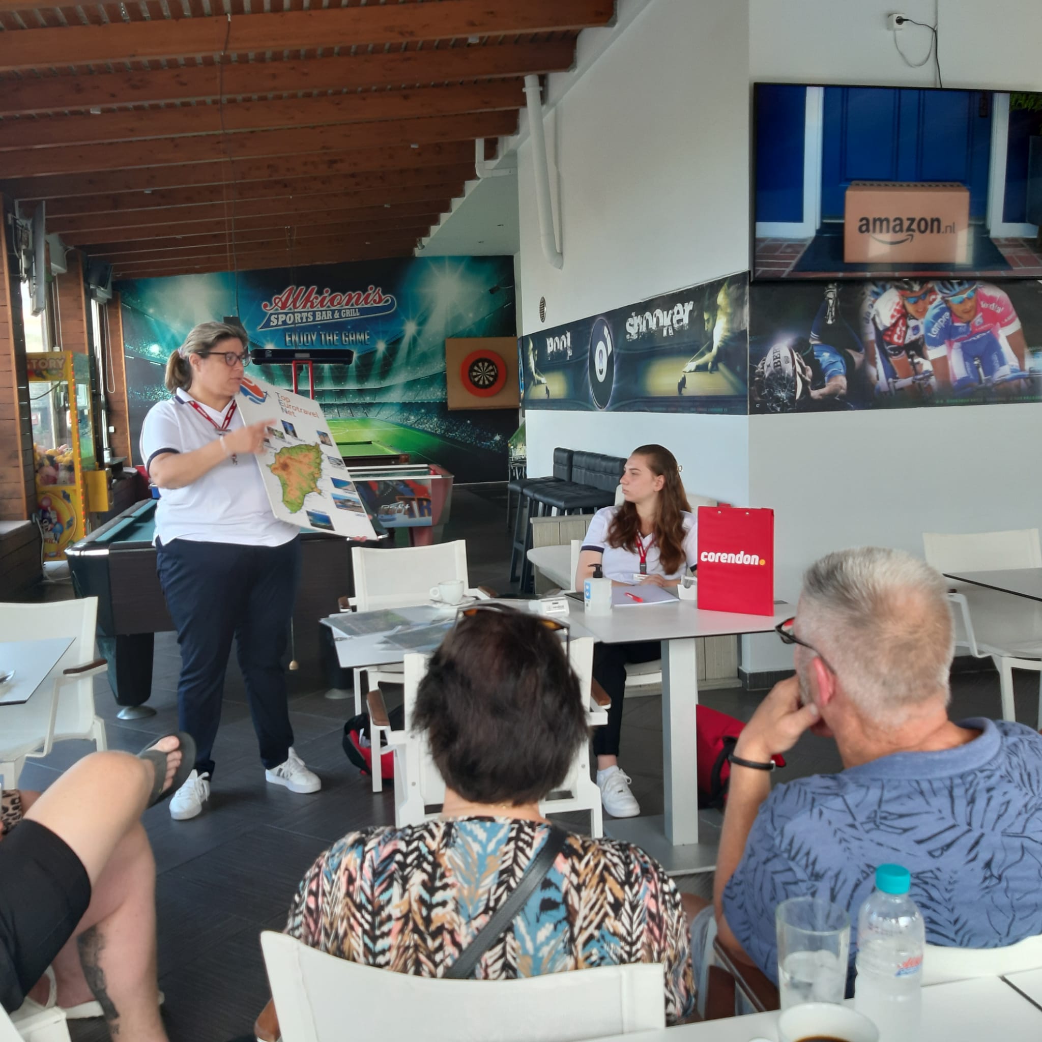 Vanmorgen hebben we van Filis, onze hostess van Corendon een uitleg gekregen van wat er allemaal te doen en te beleven is hier op het eiland. Besloten is om direct een rondreis te boeken voor morgen, omdat Mariet en Trudy maar een week blijven. Vanavond gaan we bekijken welke excursies we nog meer willen boeken.