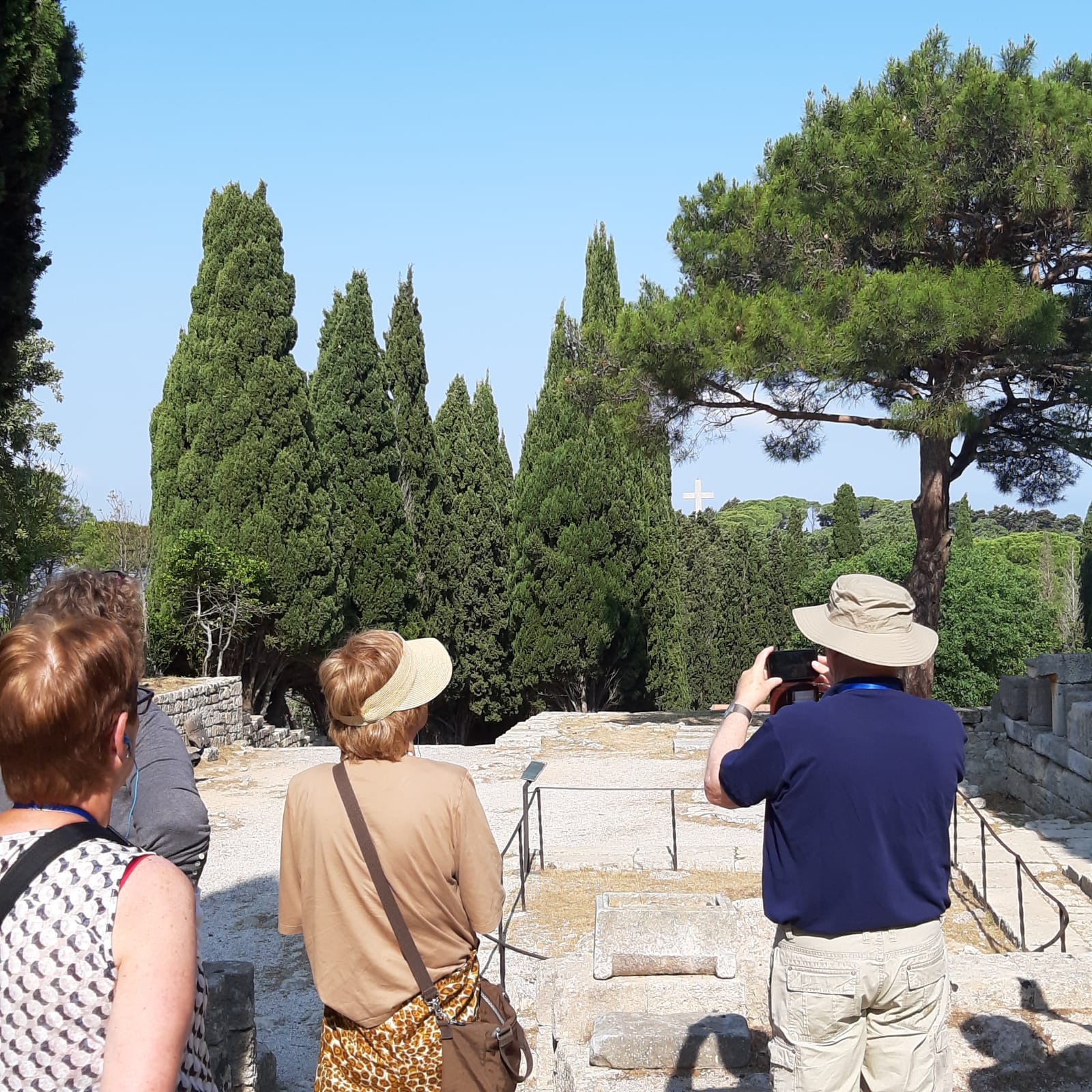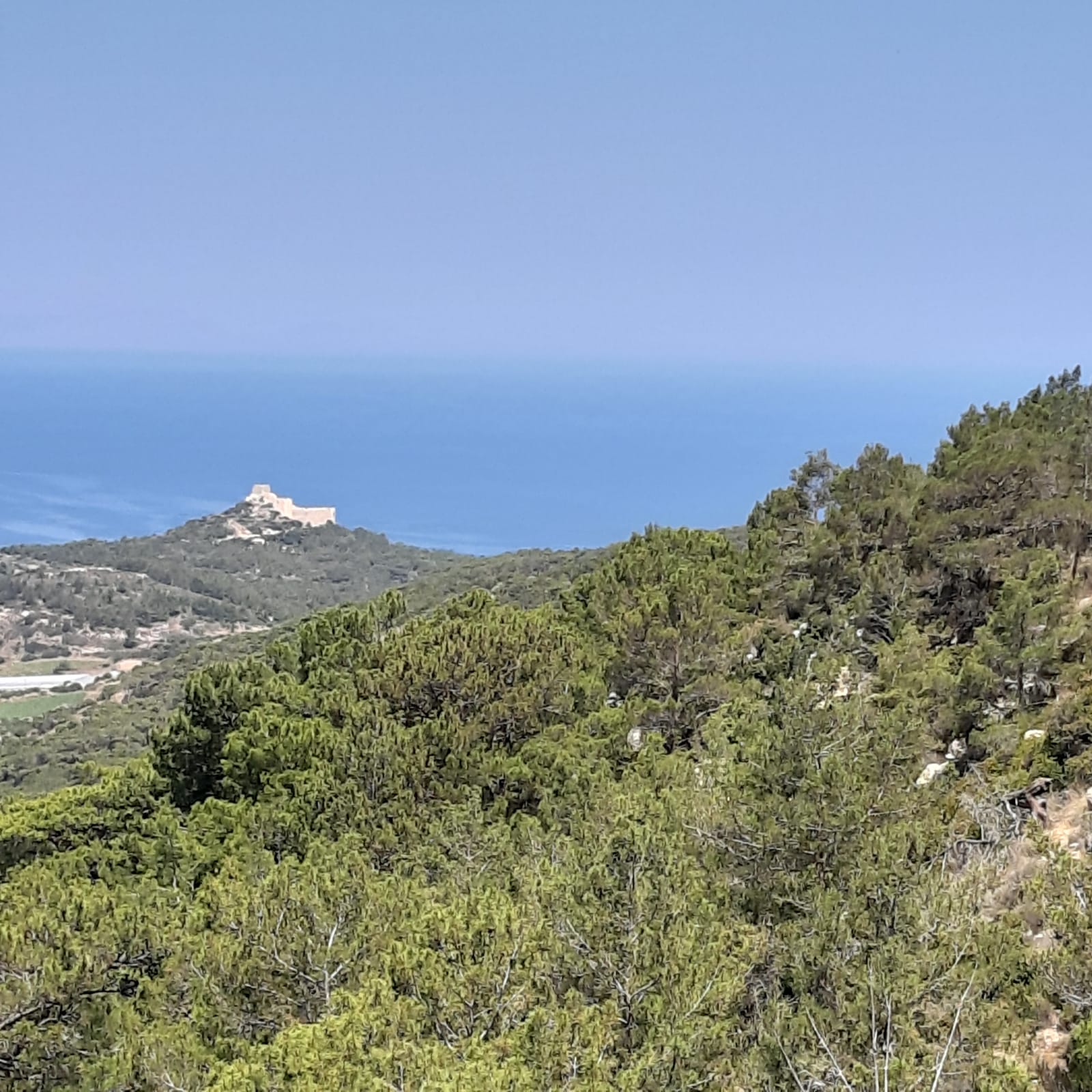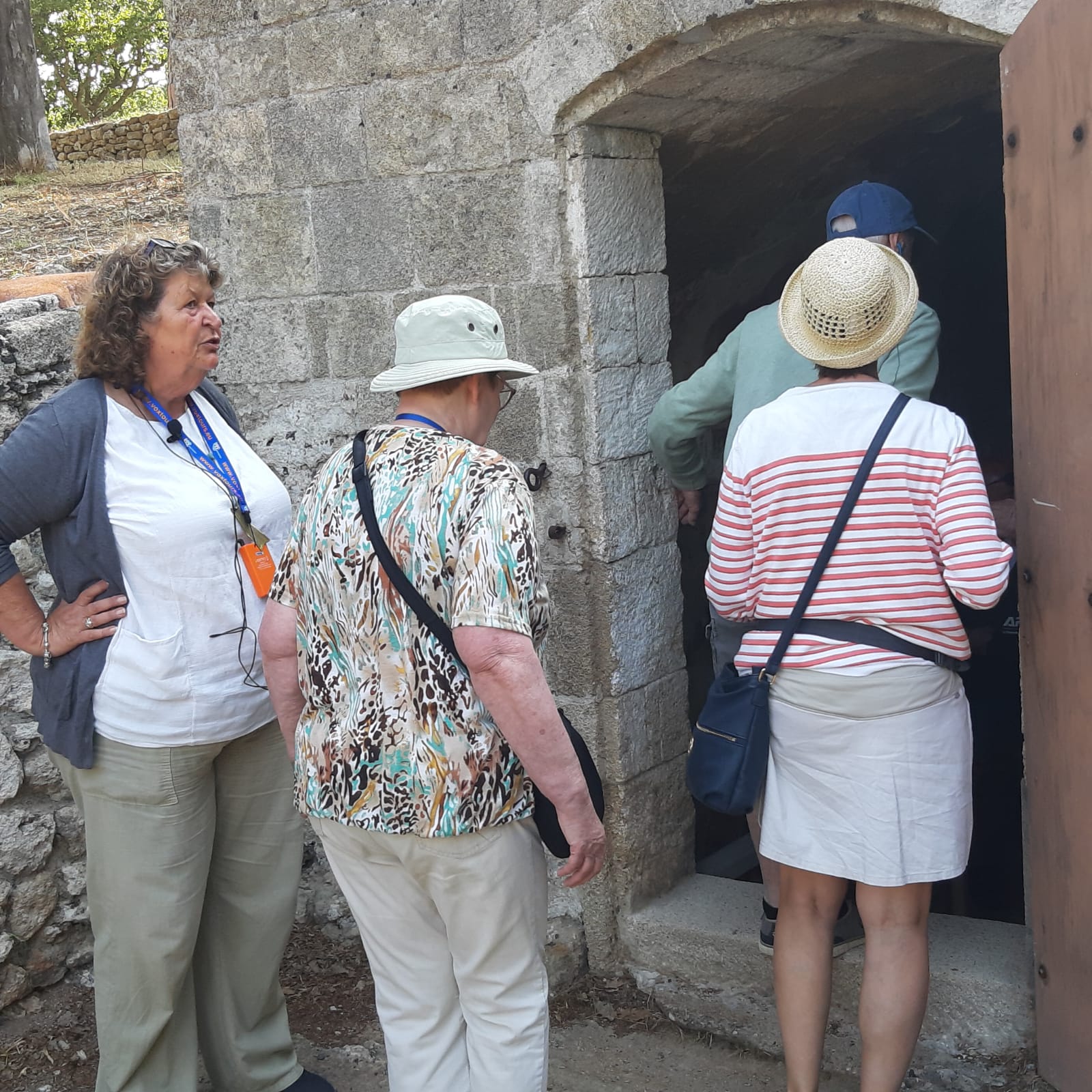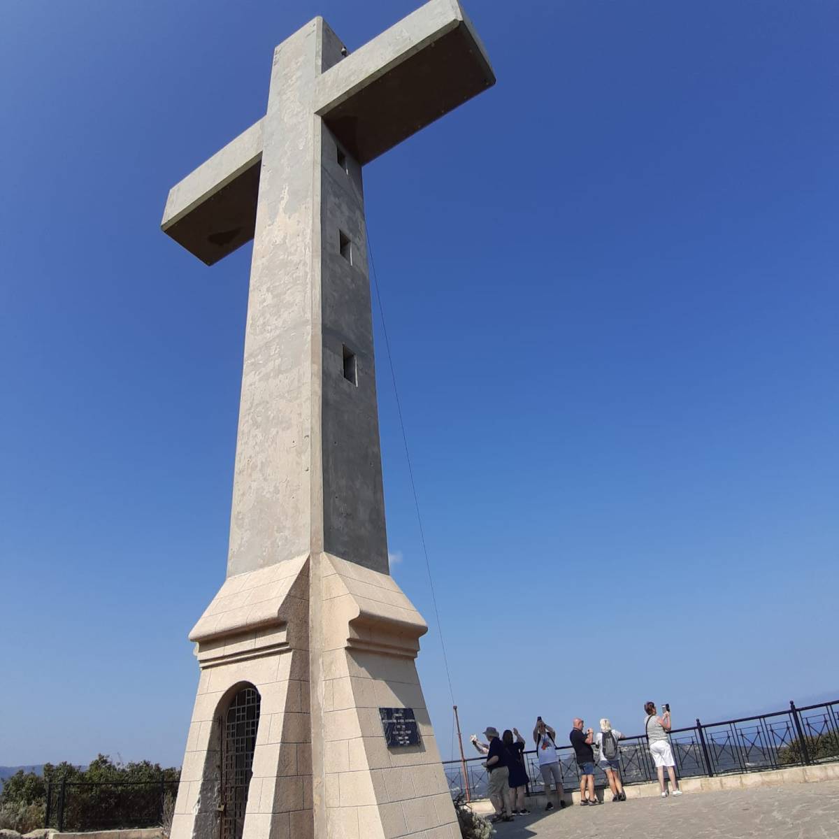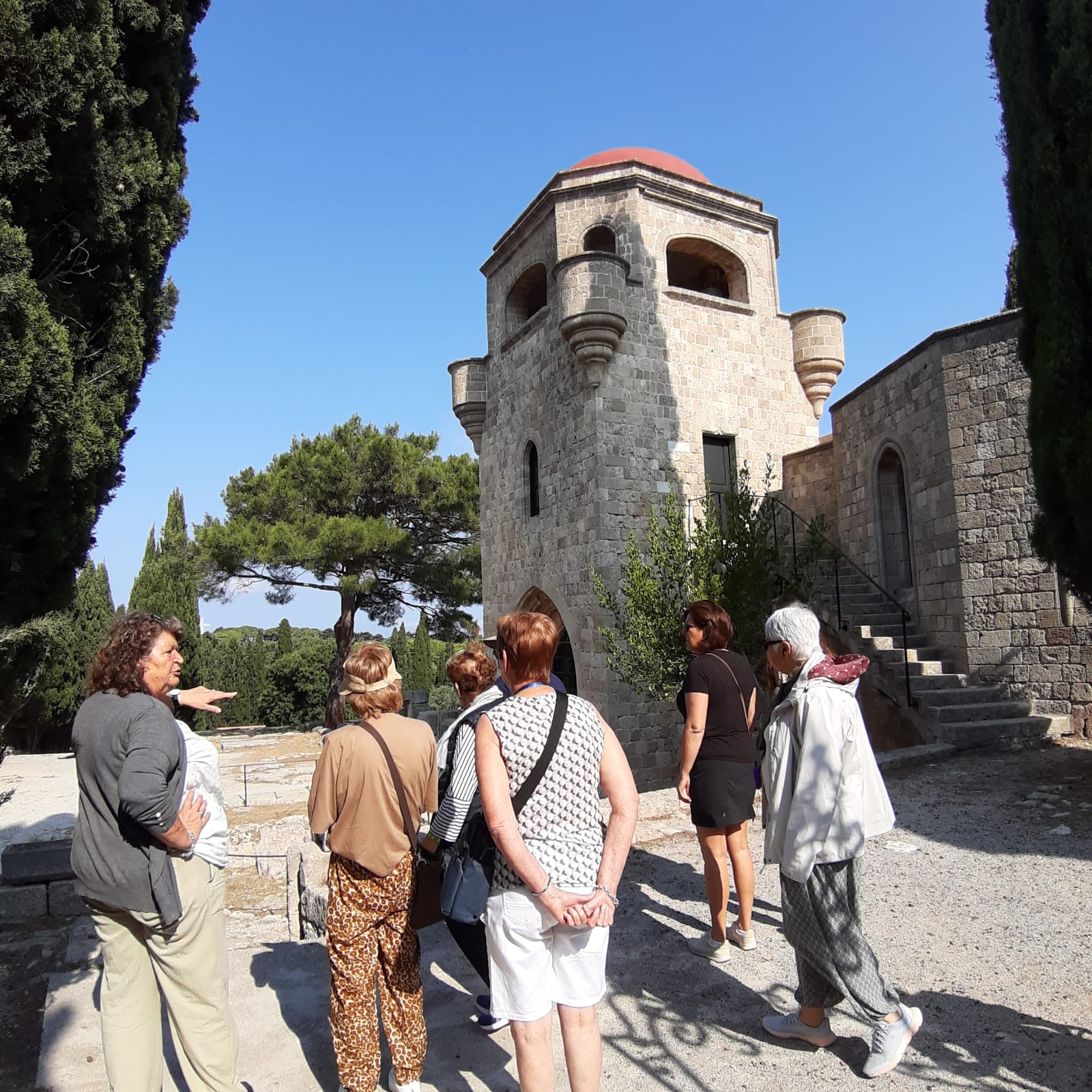 Als eerste zijn we de berg Felerimos opgegaan waar we door het mooie lange pad reden waar aan weerszijde de lijdensweg van Jezus wordt afgebeeld in koperen plaketten. Aan het eind kom je bij het grote kruis waar je een schitterend uitzicht hebt op Rhodos, Ook het klooster is de moeite waard om even te bezoeken. De vele pauwen die er rond lopen hebben in deze tijd, waar ze op zoek zijn naar vrouwtjes, een prachtige staart die ze steeds weer opzetten.
