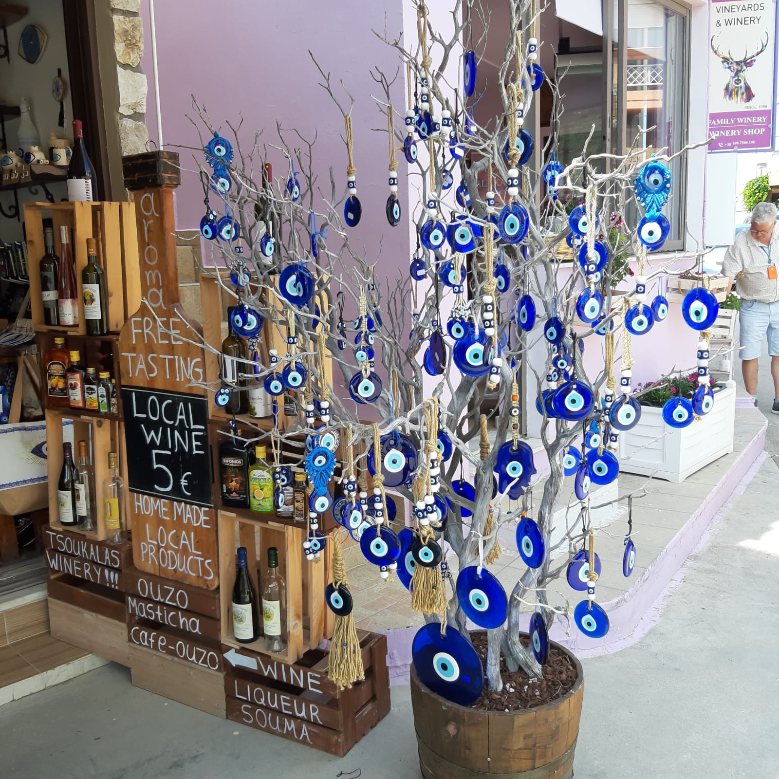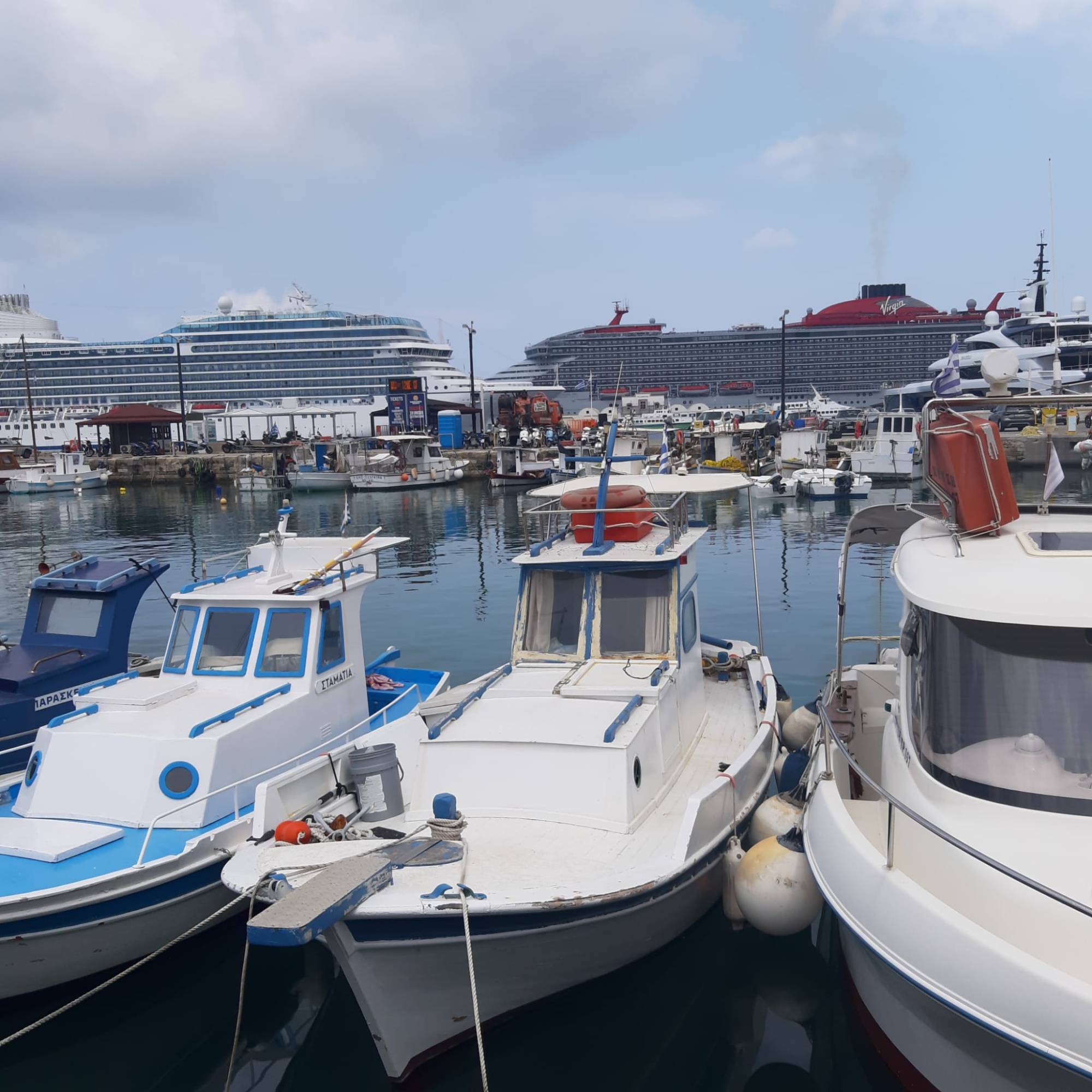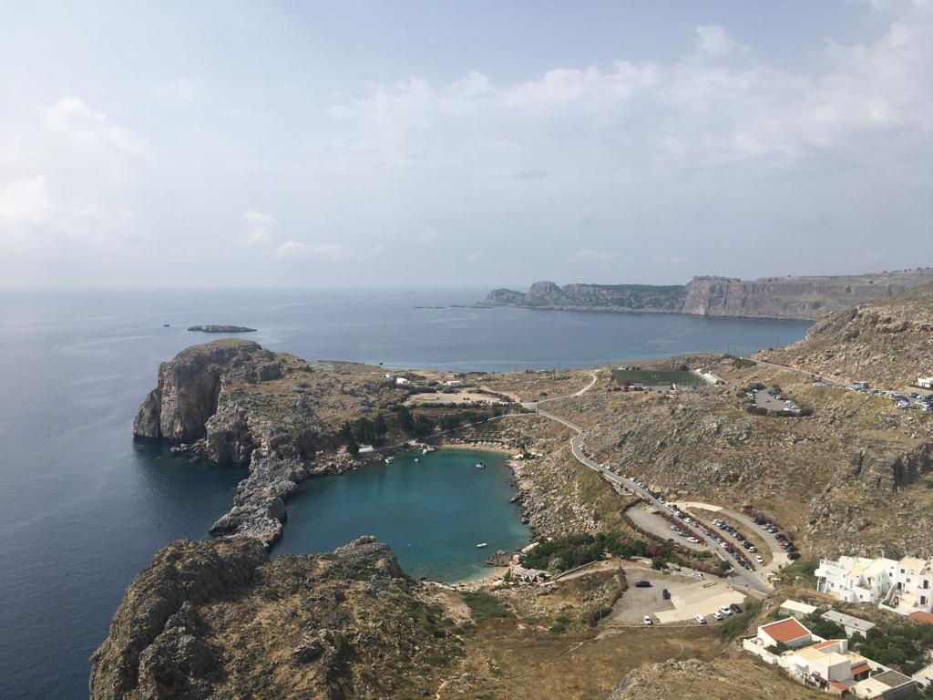 Jan en Coco hebben de voorkeur gegeven aan een heerlijk terrasje en zijn lopend door het kleine centrum gelopen. Ikzelf ben alle trappen opgelopen naar de bovenstad, zo’n 400 treden. Deze trap wordt ironisch Kali Strata of goede weg genoemd. Eenmaal boven heb je een gigantisch uitzicht over het eiland, maar ook een flesje water nodig.