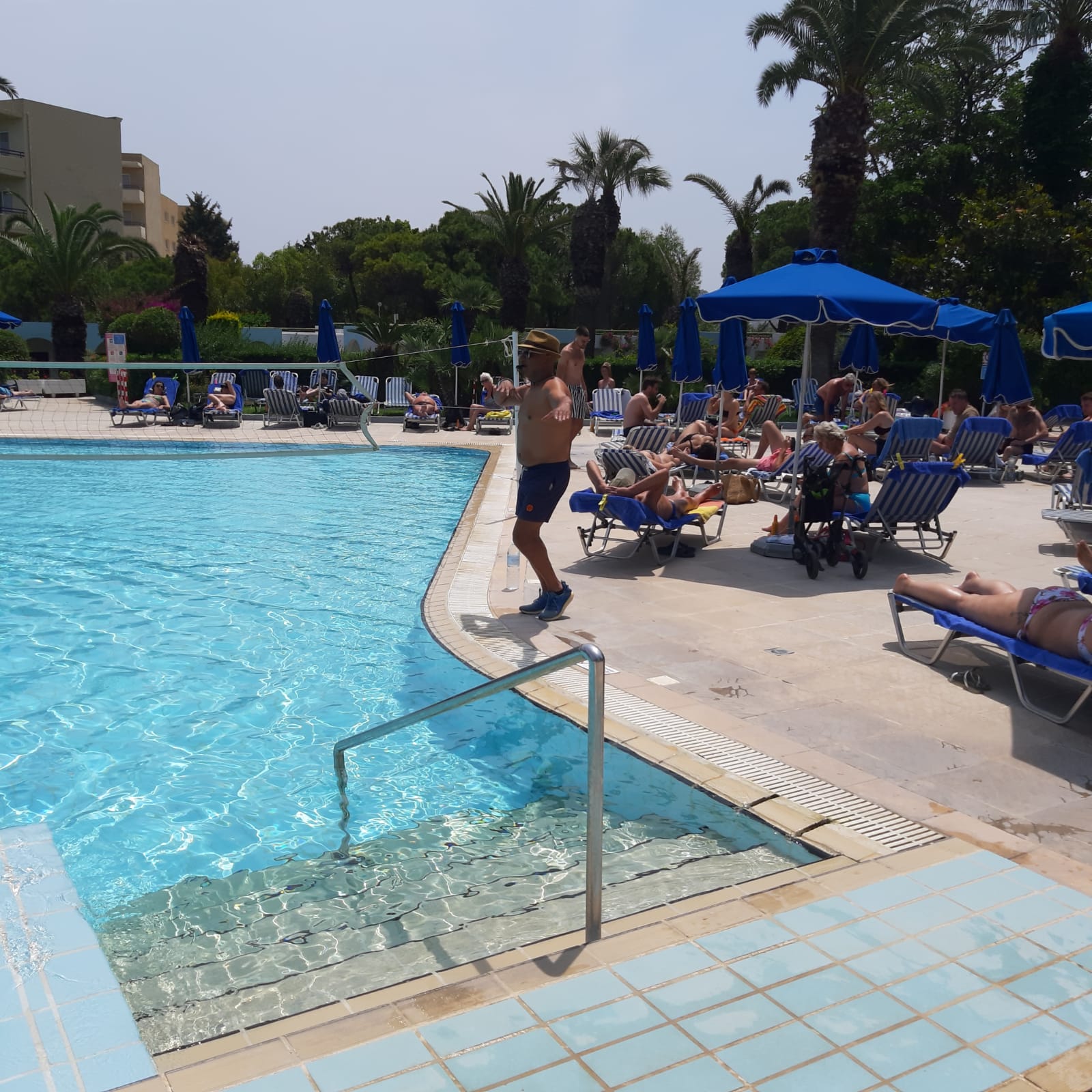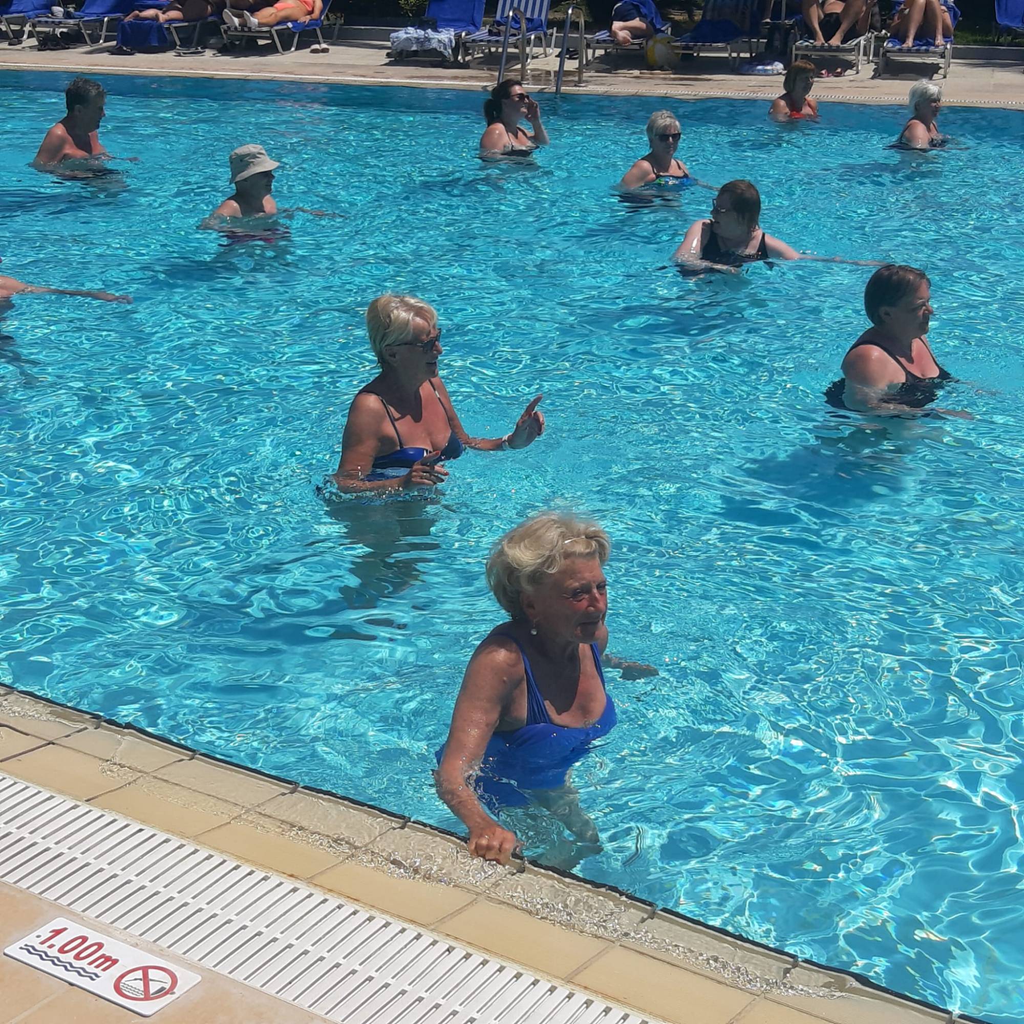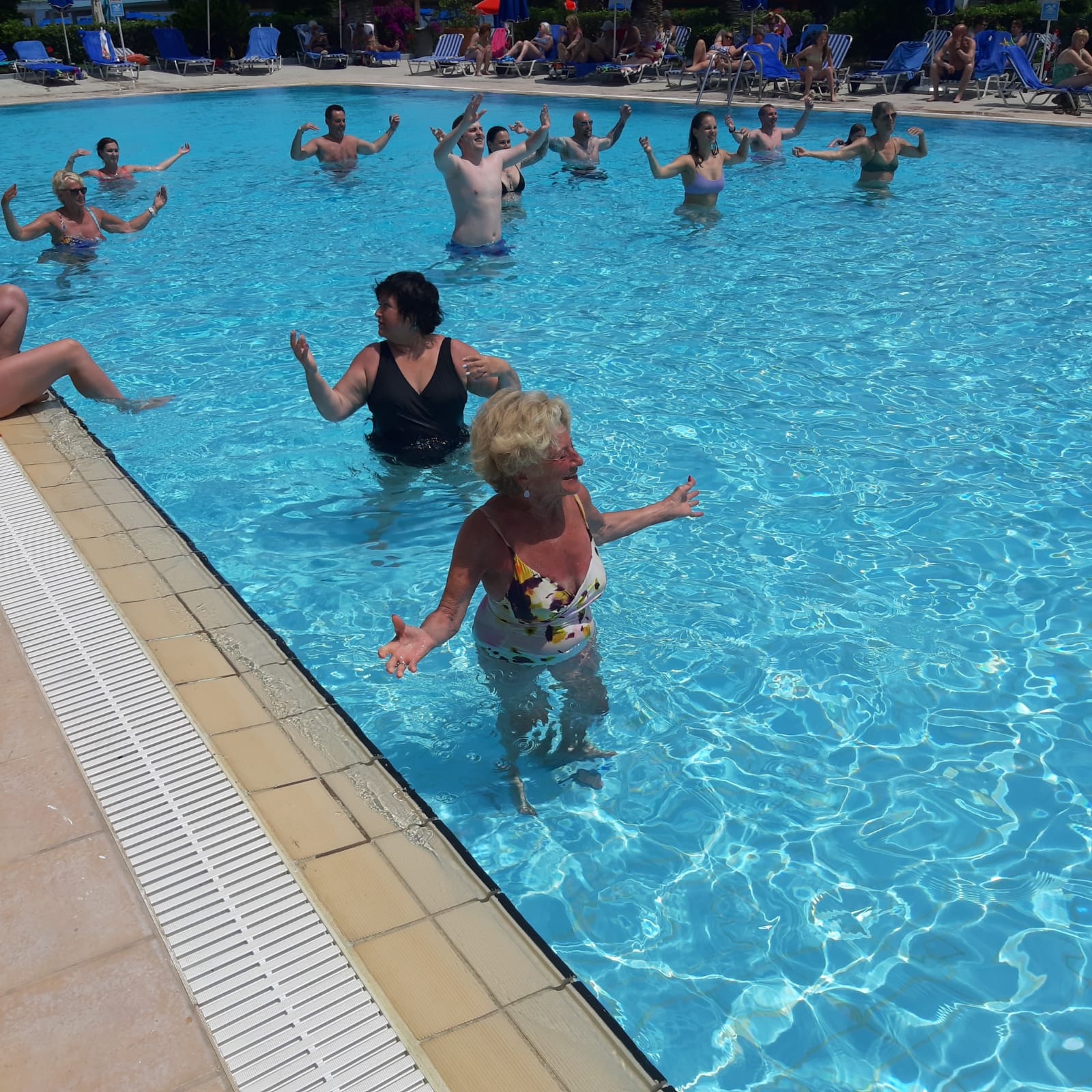Het weer is hier net zo onvoorspelbaar als in Nederland. Het zou een slechte dag worden, maar we werden met de zon wakker en hij is niet meer weggeweest. Vandaag werd weer mee gedaan aan aqua gym en werd gerelaxt aan het zwembad.