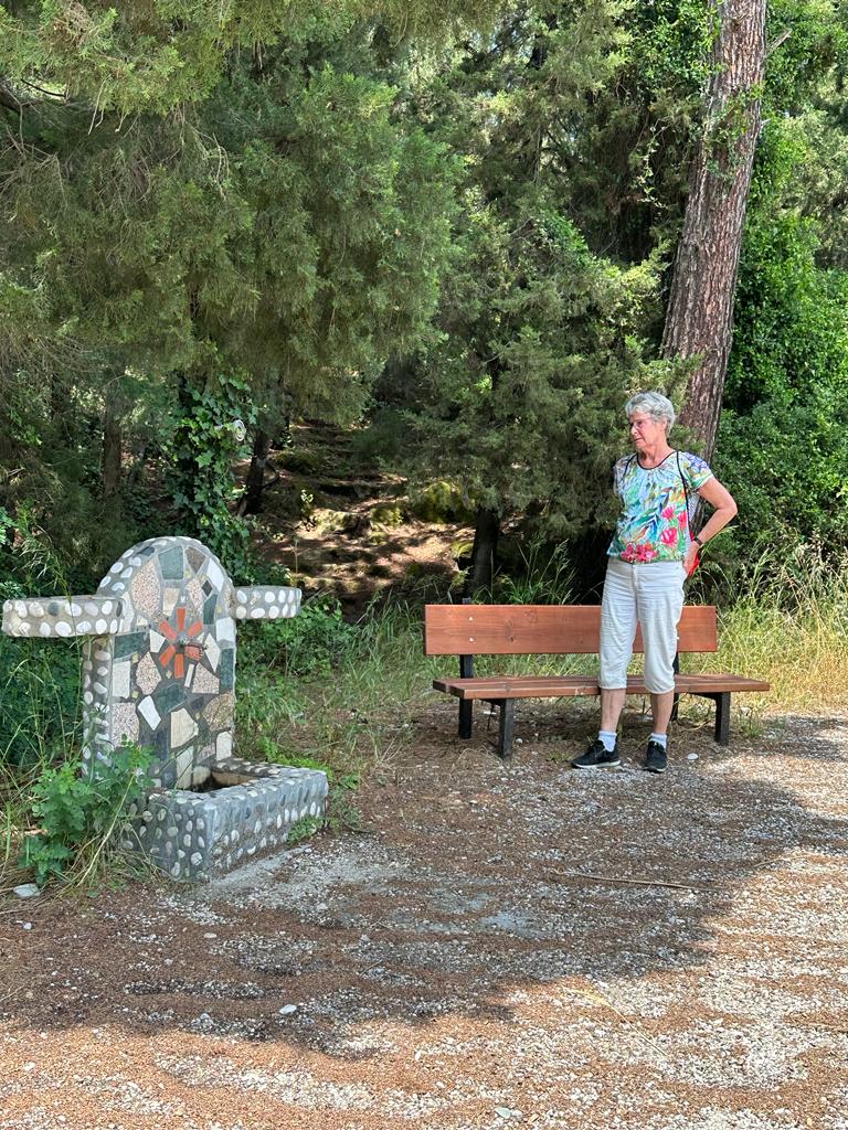 Han en Ilona zijn de Filerimos berg opgewandeld. Best een pittige klus, waarbij je toch de laatste 2 1/2 km. goed moet klimmen. Bij het fonteintje waar je heerlijk water kunt tappen zijn ze het laatste stukje via het bos gelopen. Moe, maar voldaan kwamen ze weer in het hotel aan.