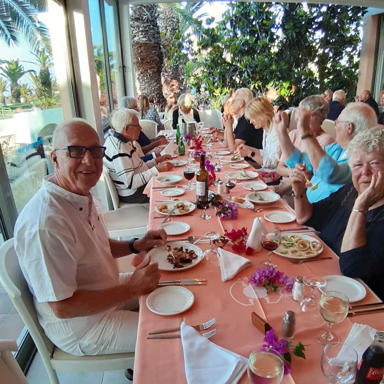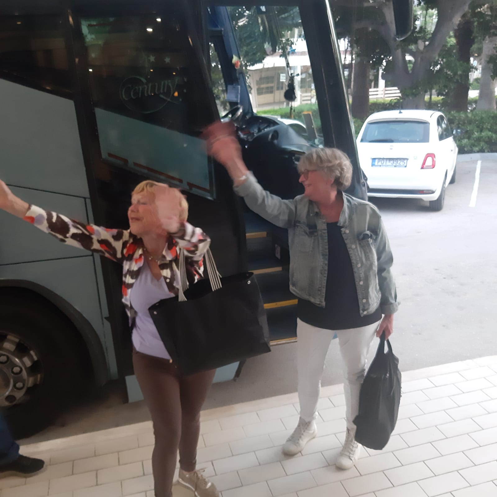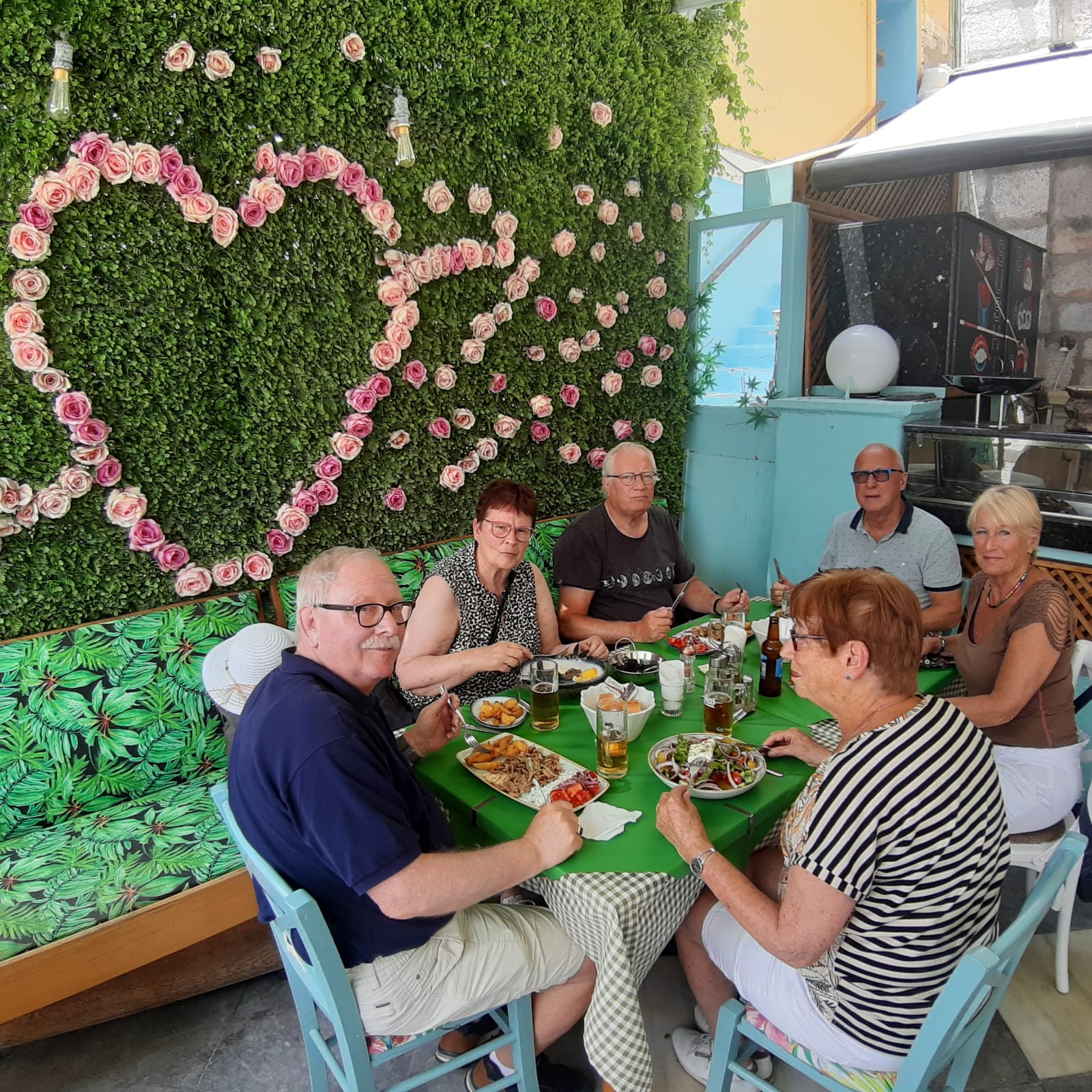 Na het diner hebben we kunnen genieten van de Griekse avond, waar weer werd meegedanst. Han; bedankt voor het insturen van het filmpje 💃. Om 23.00 uur was het dan toch tijd om afscheid nemen van iedereen. De koffers werden in de bus geladen en er werd uitbundig gezwaaid. Rosey en Frido vertrekken morgenochtend.