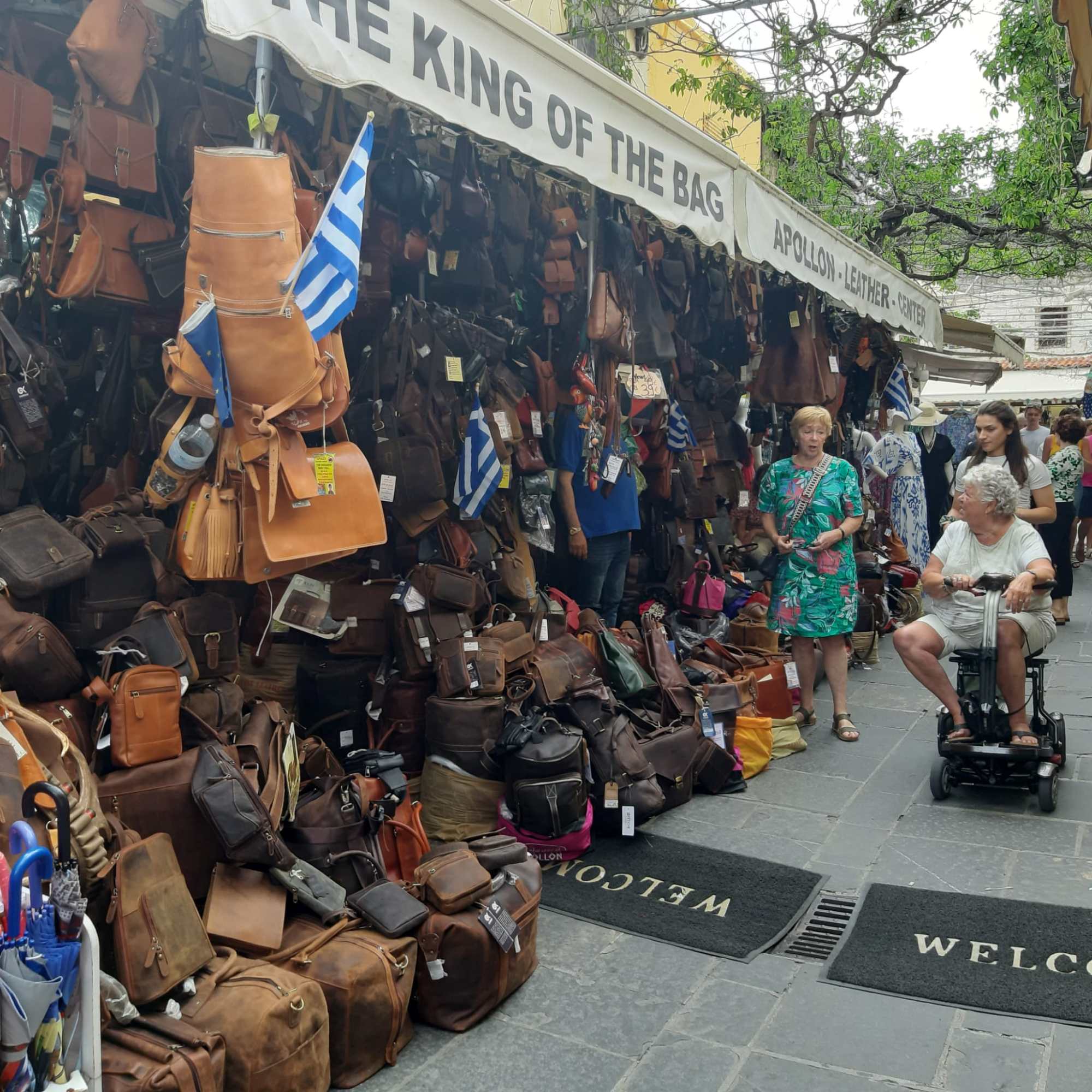 Bij het begin van de beklimming van de Acropolis kon je een ezeltaxi nemen maar dat deed ik natuurlijk niet. Het was gelukkig niet zo warm maar toch een hele klim. Mooie vergezichten gezien begeleid door een vrolijke Griekse muzikant. Je moest soms goed uitkijken want er waren wat gladde stenen en eindelijk dan de top wat zeker de moeite waard was. Het was een prachtige ervaring! Edith