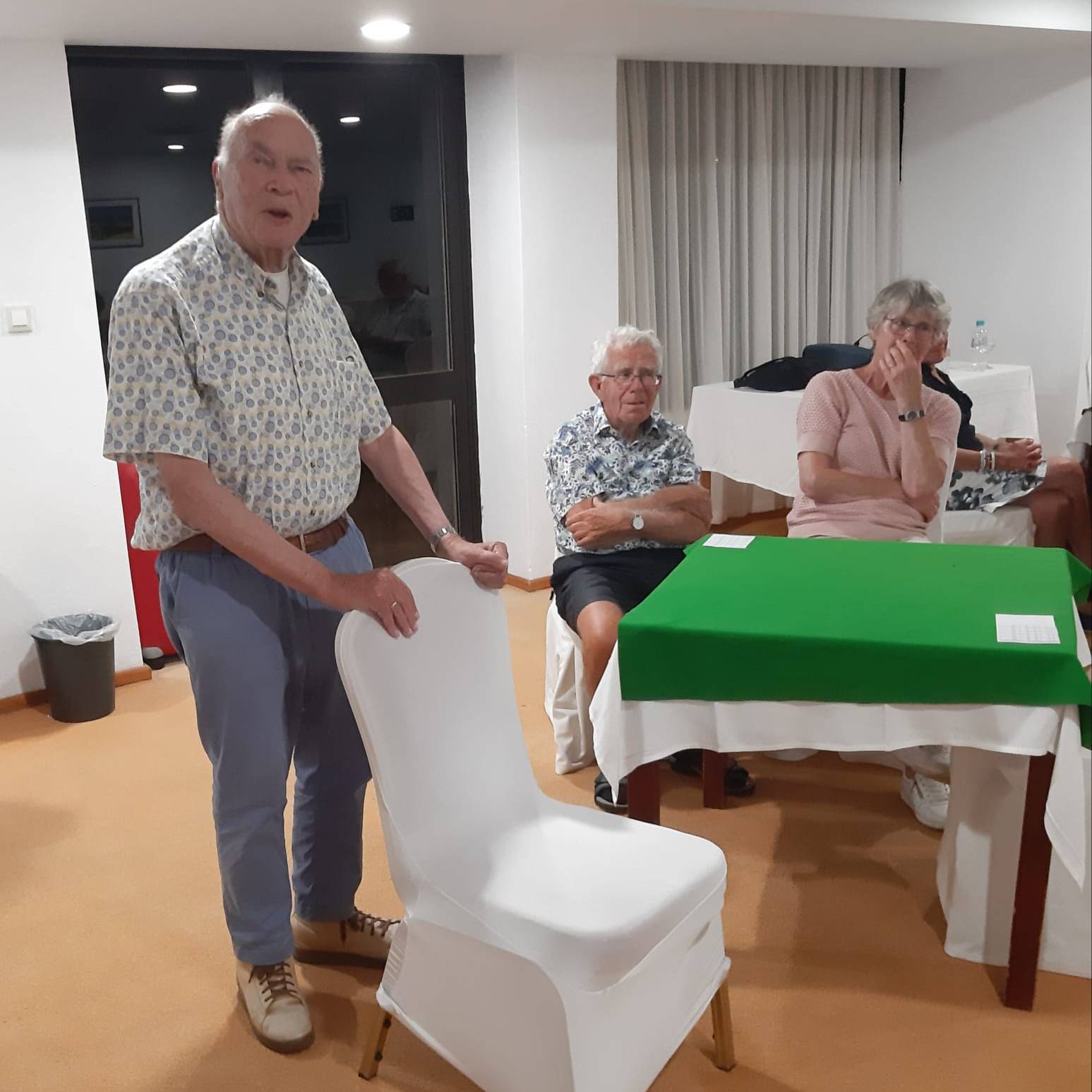 Door de muziek heen van de Fakier (het entertainment van vanavond), is alles weer voortreffelijk verlopen. Opnieuw zijn Han en Petra de winnaars en zijn nog moeilijk in te halen, maar je hebt pas gewonnen als het laatste spelletje gespeeld is….., dus je weet maar nooit. Naar de uitslag.