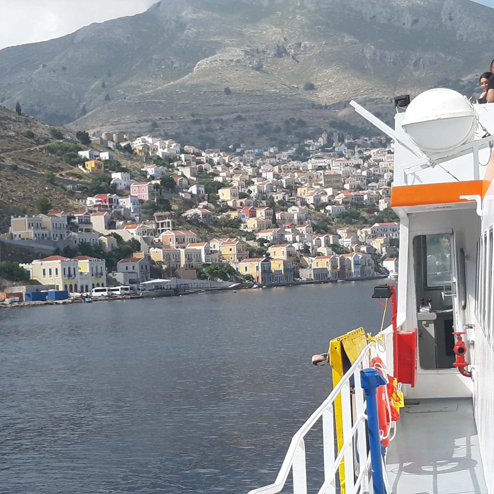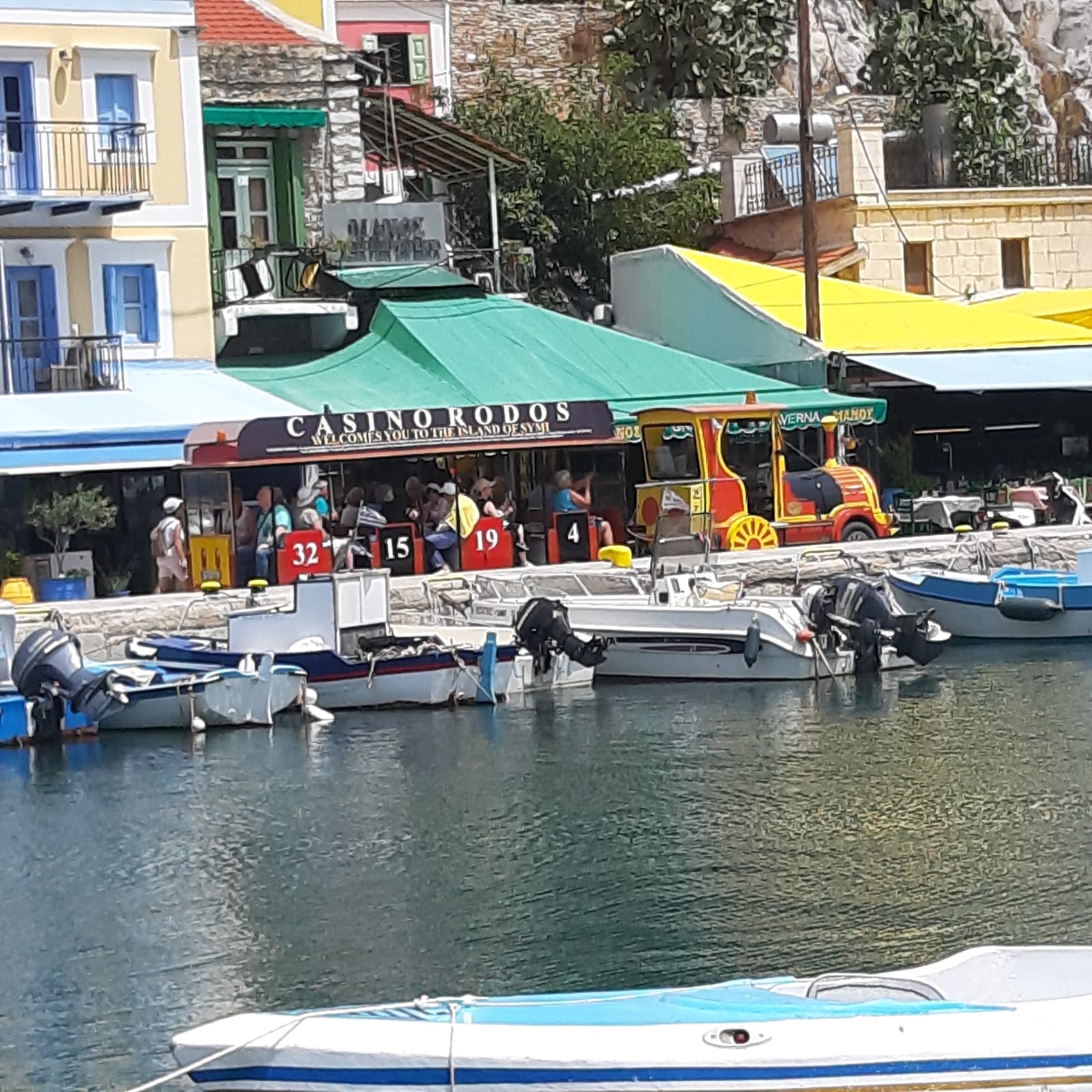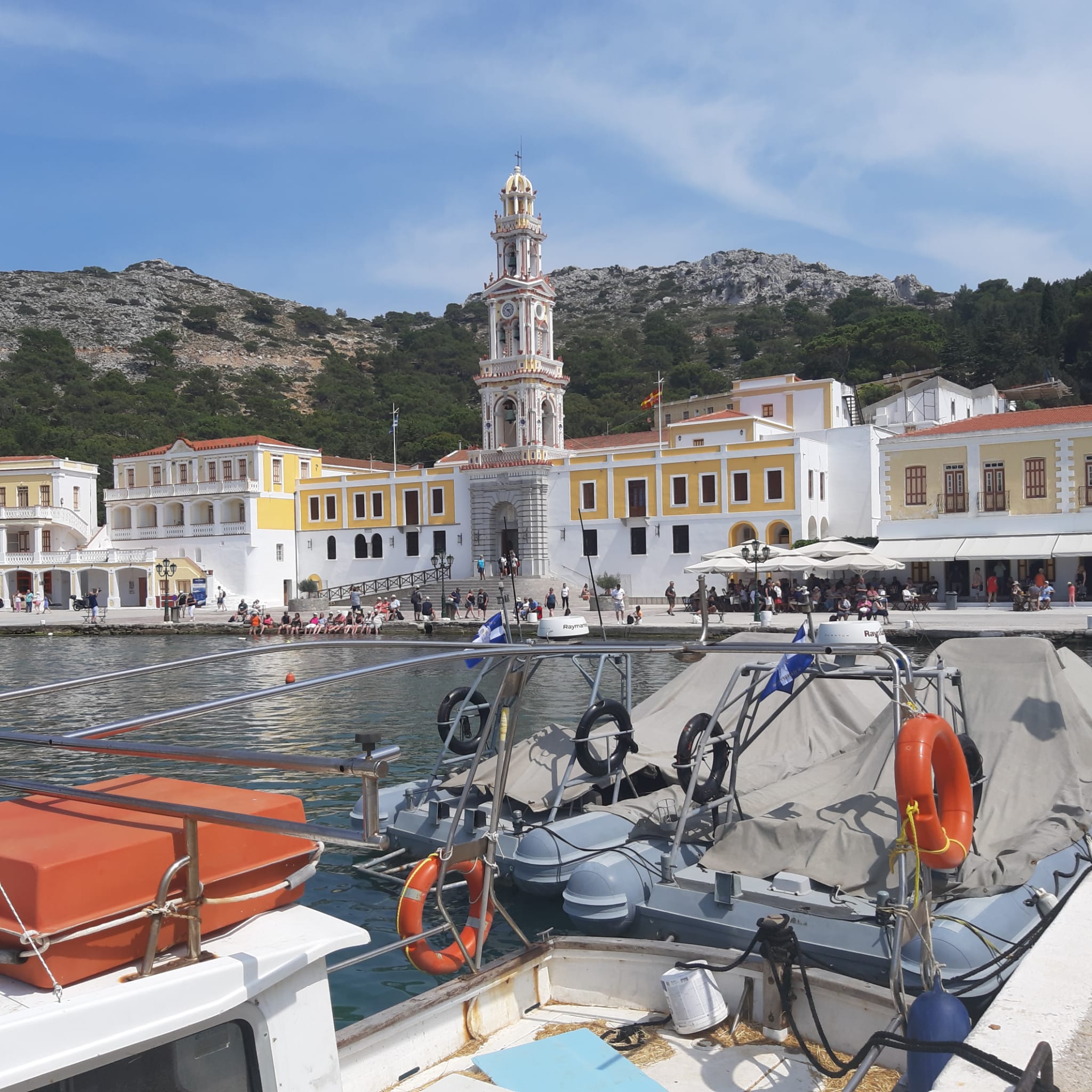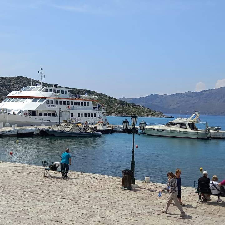 Vanmorgen zijn we al om 08.00 uur opgehaald met de bus die ons naar de catamaran zal brengen die in de haven al op ons ligt te wachten. Deze vertrekt om 09.00 uur en rond 10.15 uur komen we op Simy aan, het belangrijkste bedevaartsoord van de Egeïsche gebied. Dit eiland wordt ook wel het sponzeneiland genoemd.