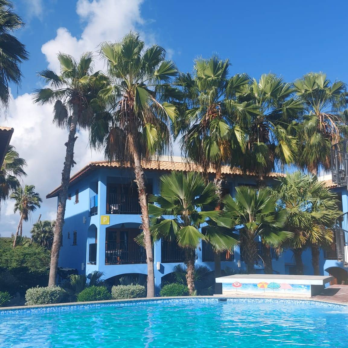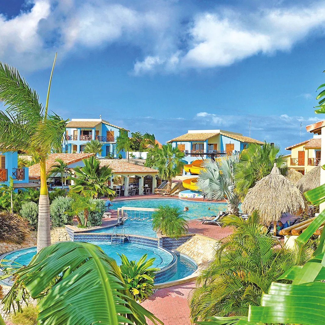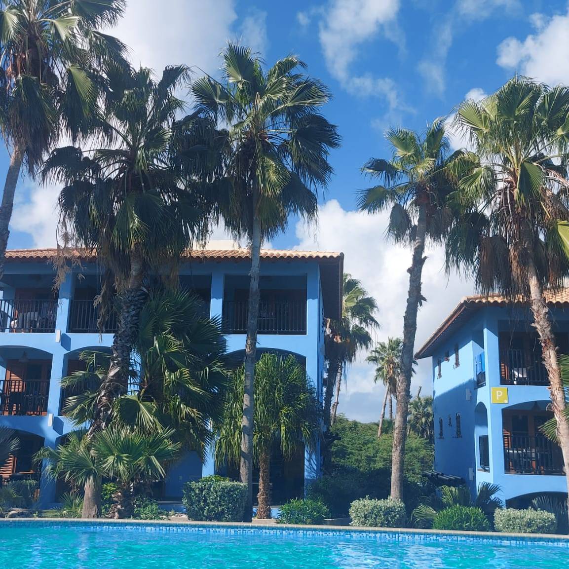 Kunuku Aqua Resort bestaat uit allemaal gebouwtjes in geel en blauw waar 9 kamers in zitten. We zitten in 5 gebouwtjes die allemaal rond het zwembad gesitueerd zijn. Een kunukuhuis is van oorsprong een voormalige slavenwoning. Kunuku betekent ‘plantage’ (en ook ‘platteland’).
