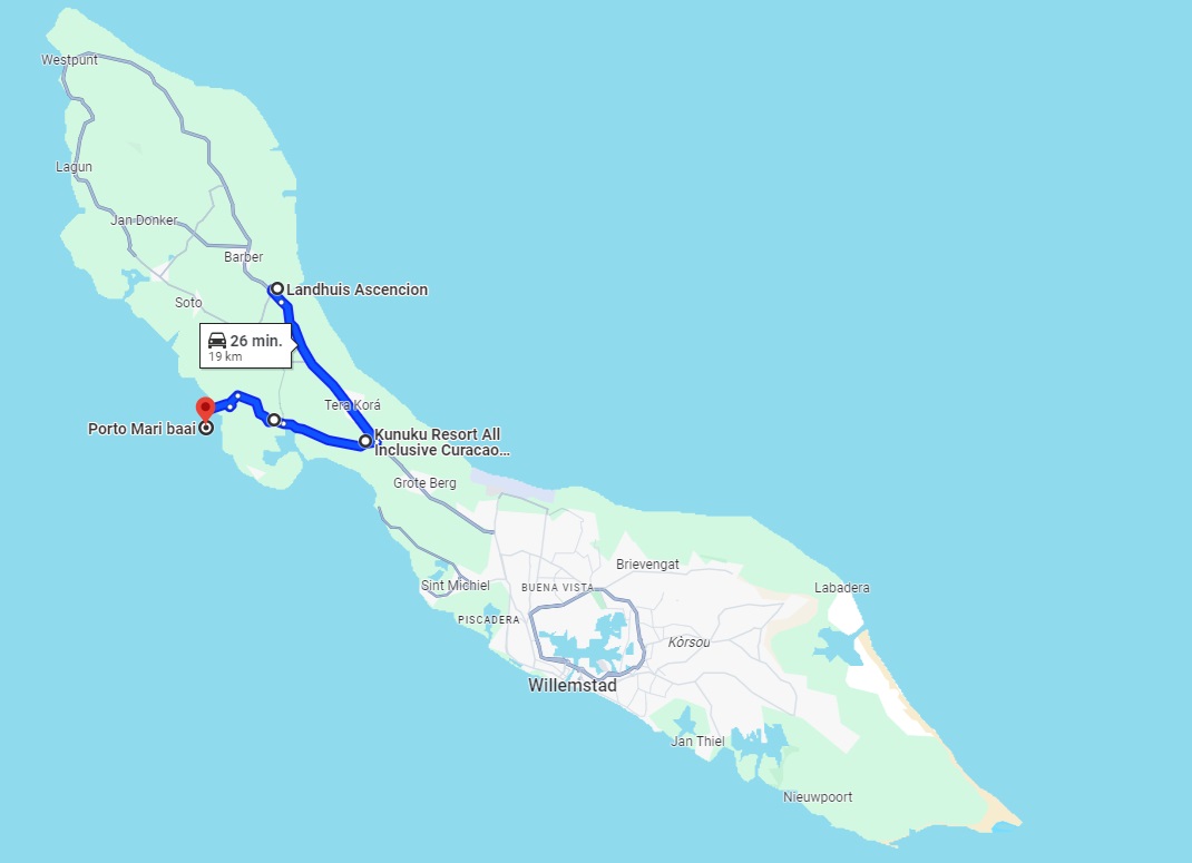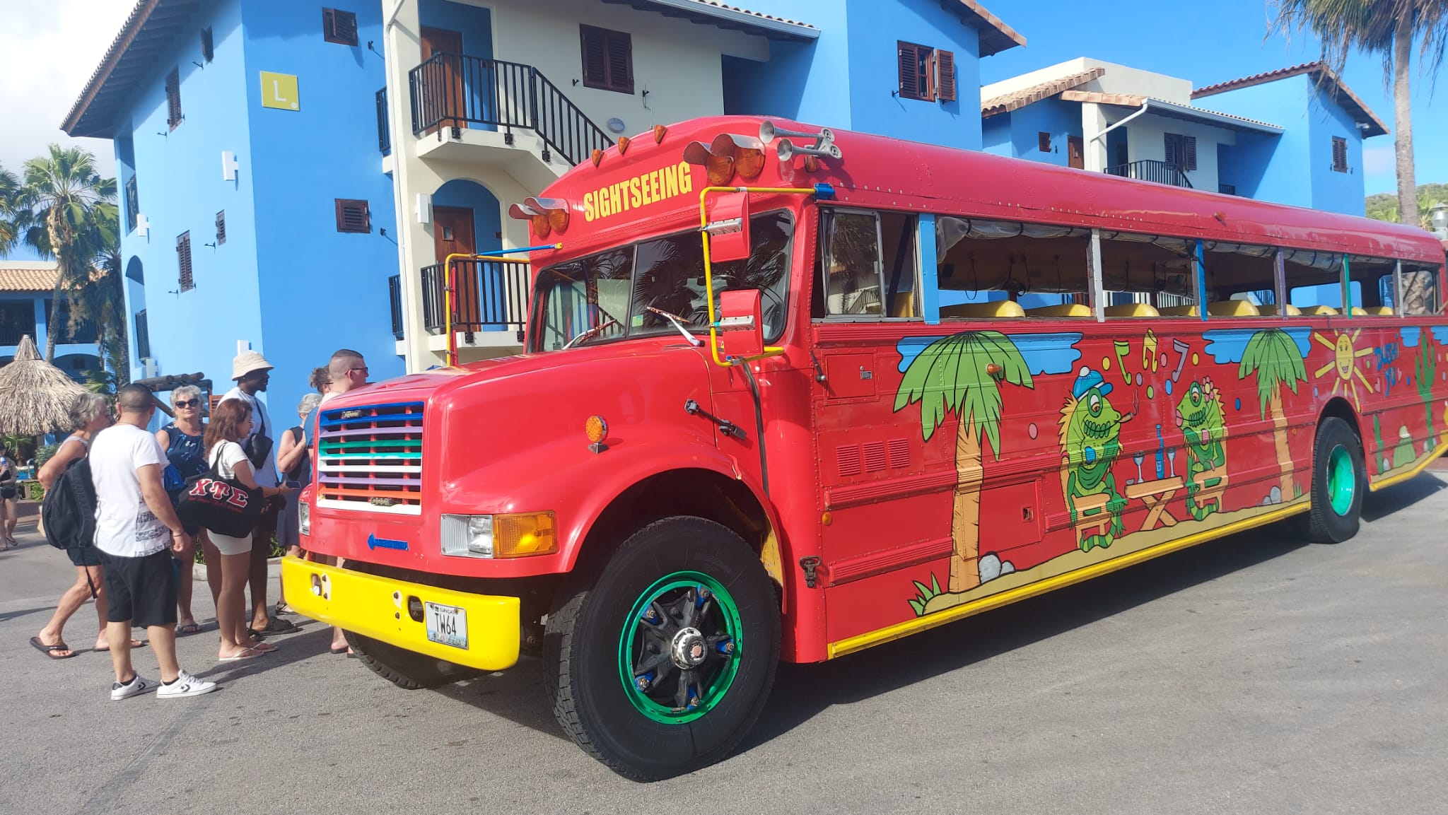 Na het ontbijt geeft de hostess van Corendon privé uitleg over Curaçao aan zes van onze gasten en gaat een aantal op pad met de auto. Benieuwd wat ze te vertellen hebben bij terugkomst. Daarnaast gaan we met een zevental het avontuur opzoeken. Met de lokale bus naar Grote Knip, een van de mooiste stranden op het eiland.