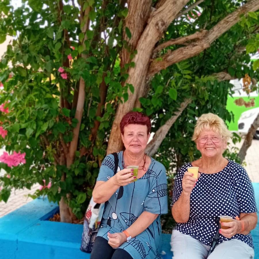 We gaan met de gehele groep naar Willemstad voor een rondwandeling. 5 personen zijn met de auto naar Willemstad gegaan en 15 met de shuttlebus. Degene die slecht ter been zijn gaan ook mee en met mij – Tanja – de pontjesbrug over. Anja gaat mee met de wandeling. De wijk Otrobanda gaan we bezoeken met onze gids Jacqueline. De Koningin Emmabrug (pontjesbrug alleen voor voetgangers) is de brug die Punda met de wijk Otrobanda verbindt. Otrabanda betekent letterlijk “de andere oever”. Tijdens de rondwandeling maken we tijd voor een ijsje. Een traktatie van de jarige Tineke. Zij werd toegezongen en gefeliciteerd.