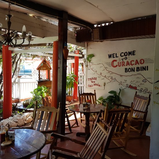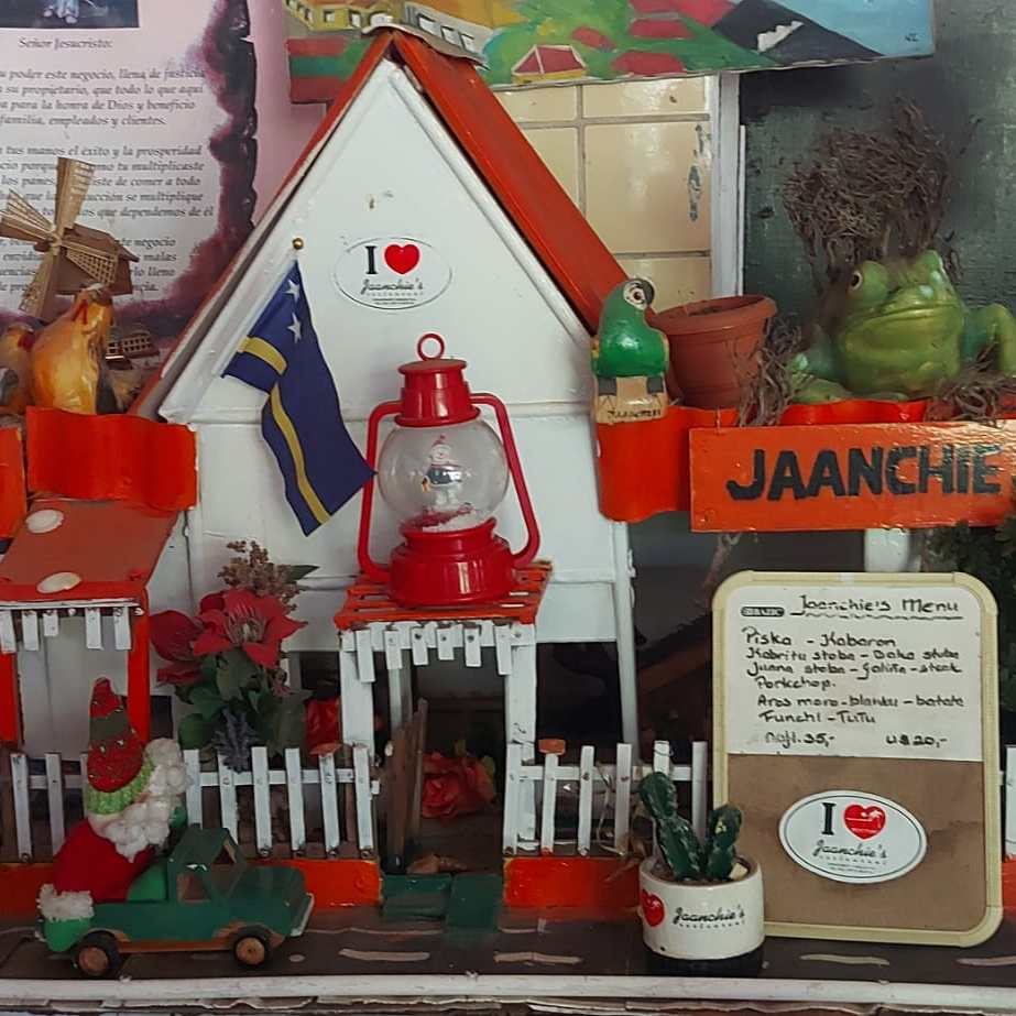 Een klein leuk restaurantje wat alleen tussen de middag open is voor de lunch. Er is geen menukaart, de eigenaar komt aan je tafel zitten en vertelt wat er zoal te krijgen is. Gestoofde geit, garnalen, oma’s stoofpotje en de Leguaan. Er zijn veel leguanen op Curaçao. Boomkippen noemen ze ze hier. Ze worden gevangen om thuis te eten. Er is op Curaçao maar 1 restaurant wat ze mag verkopen; Jaanchies. Er zijn ook veel suikerdiefjes die ook borden vol suiker krijgen.