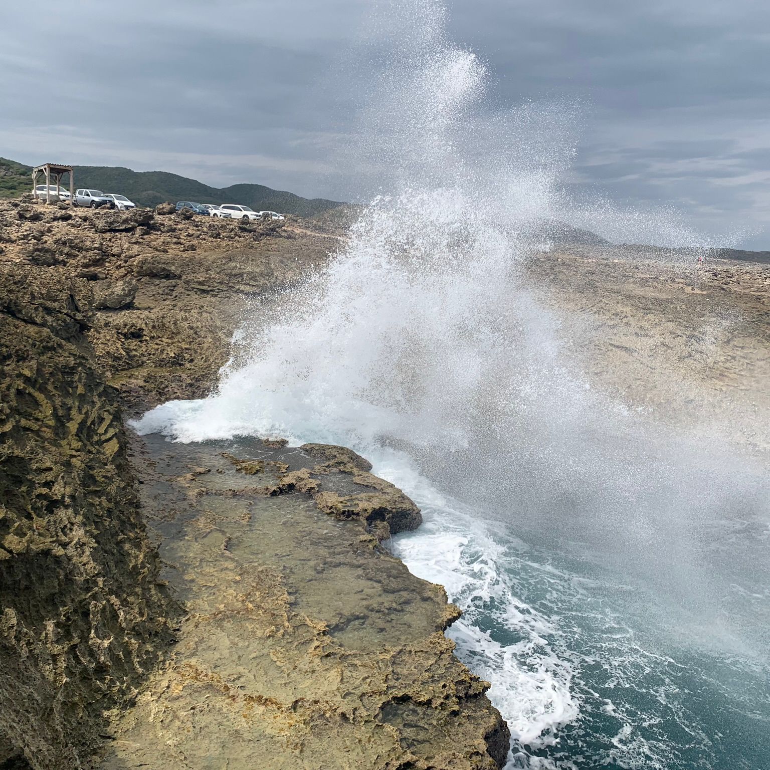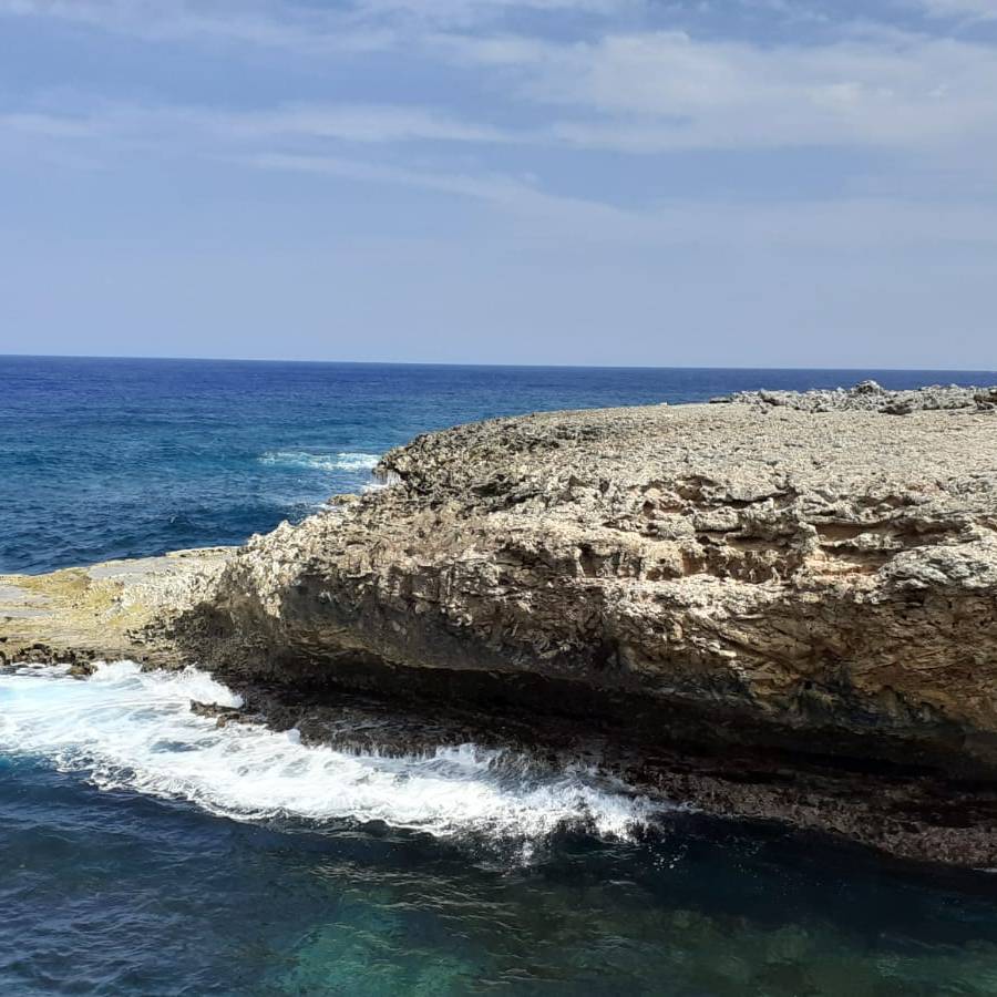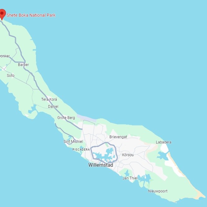 Een zestal is vroeg opgestaan om met de rondtour over het eiland te gaan. Shete Boka National Park is een van de bezienswaardigheden, een ruig en spectaculair natuurgebied aan de noordkust van Curaçao. Dit park omvat een kuststrook van ongeveer 10 kilometer met talloze kleine baaien die door de kracht van de zee zijn uitgesleten. Hier leggen zeeschildpadden in grote aantallen hun eieren, waardoor het park een belangrijk beschermd natuurgebied voor deze bijzondere dieren is.