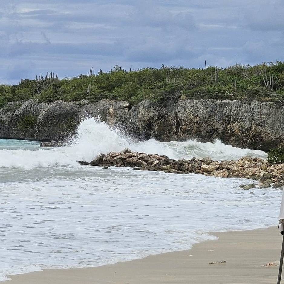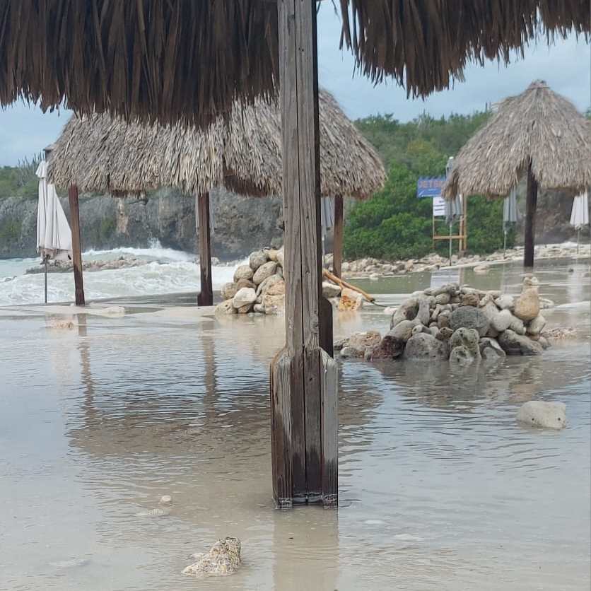 Terug gereden naar Cas Abou, daar mochten we niet eens de parkeerplaats op. Langs de hele westkust was een verordening dat het te gevaarlijk was om de zee in de gaan. Stranden werden daarom gesloten. Daaibooi was wel te bereiken en ook daar was het chaos op het strand. Vandaag wordt er geruimd om morgen weer open te gaan.