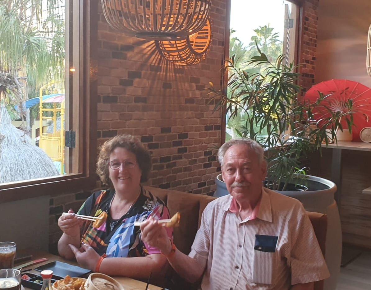 Met Els en Horst naar de Sushi. Tijdens ons verblijf kun je naast het dinerbuffet ook 1 x BBQ-en en 1 x All You Can Eat Sushi eten.