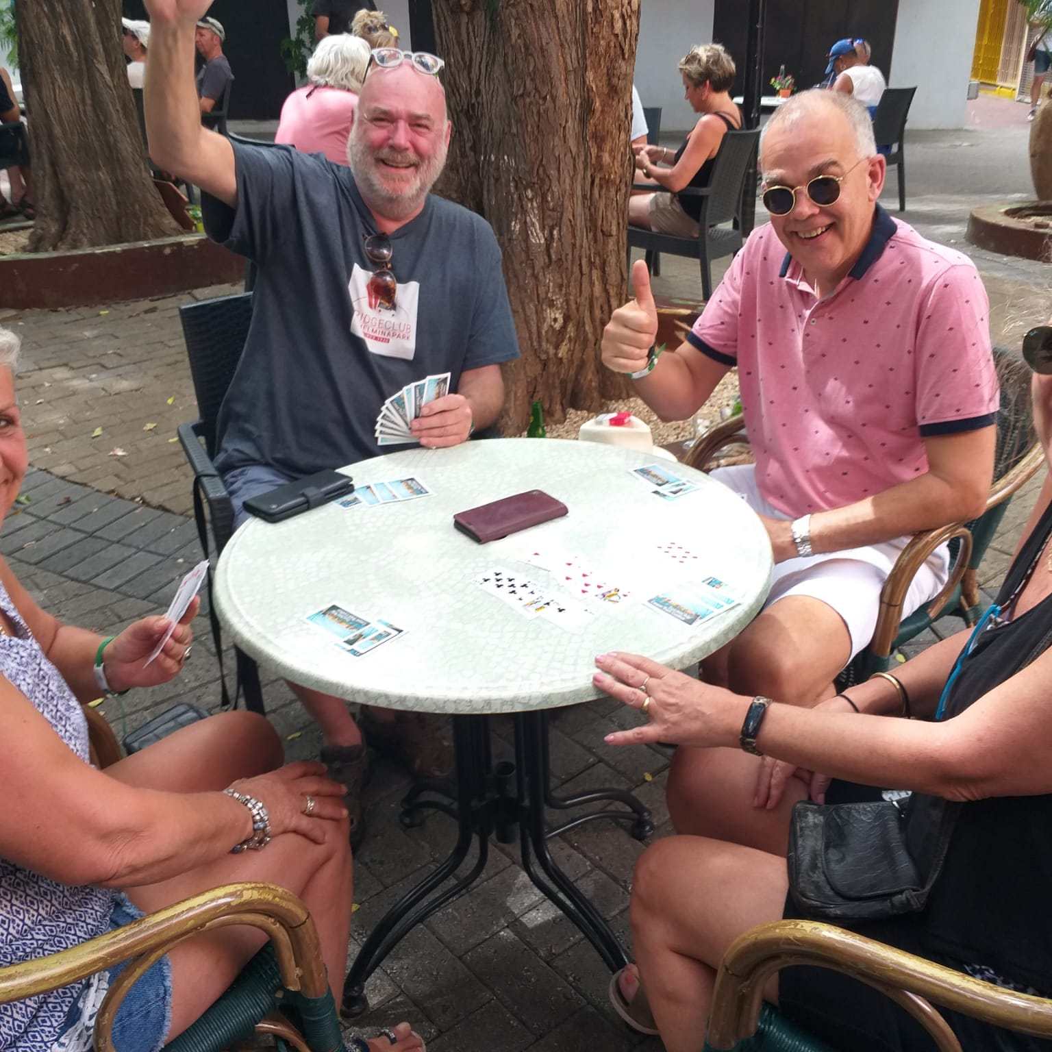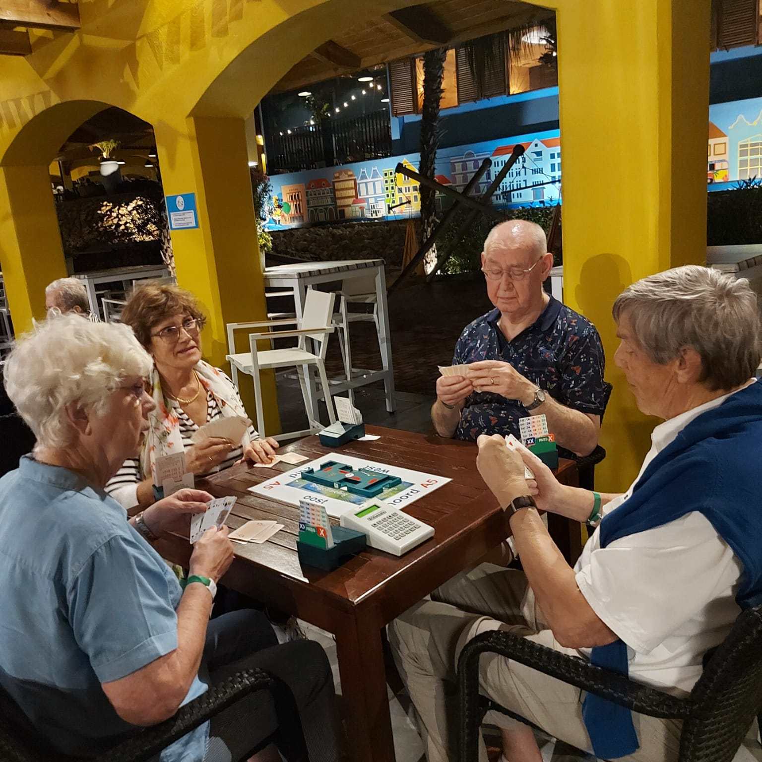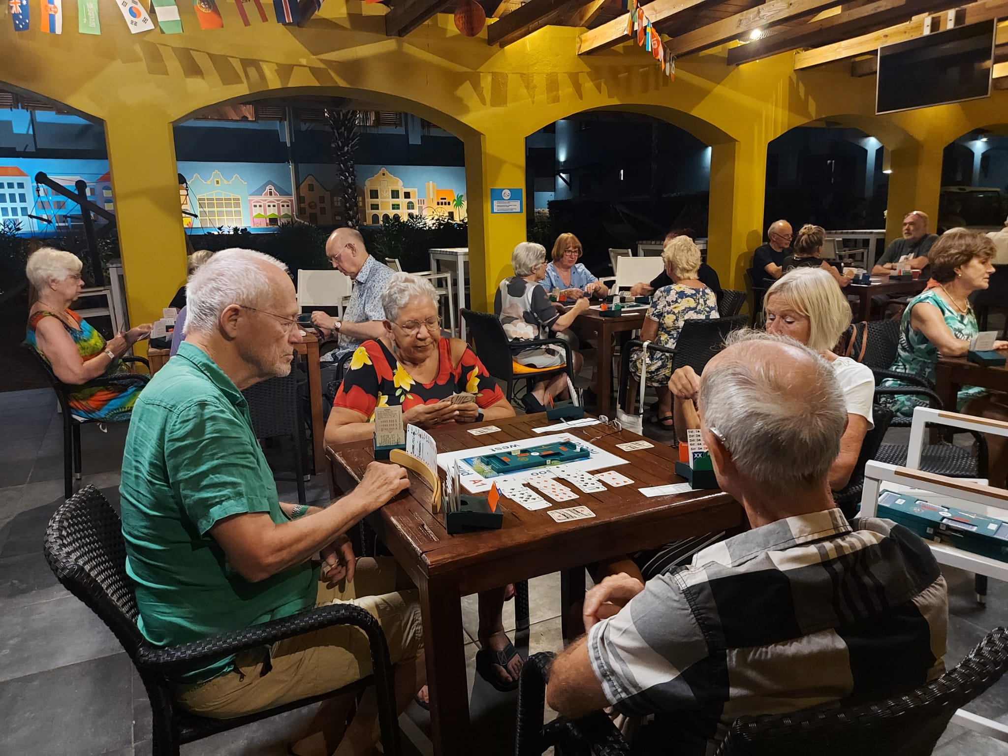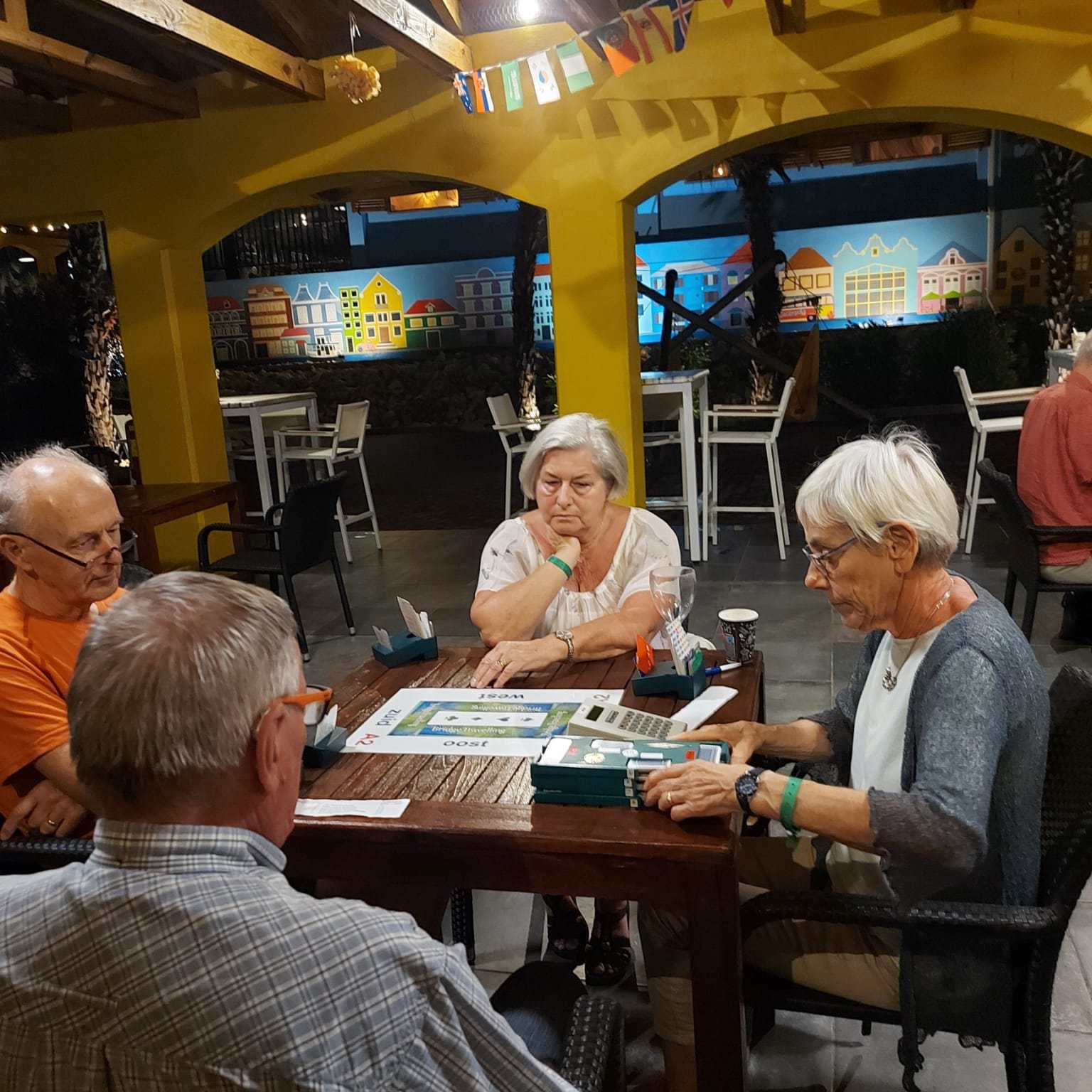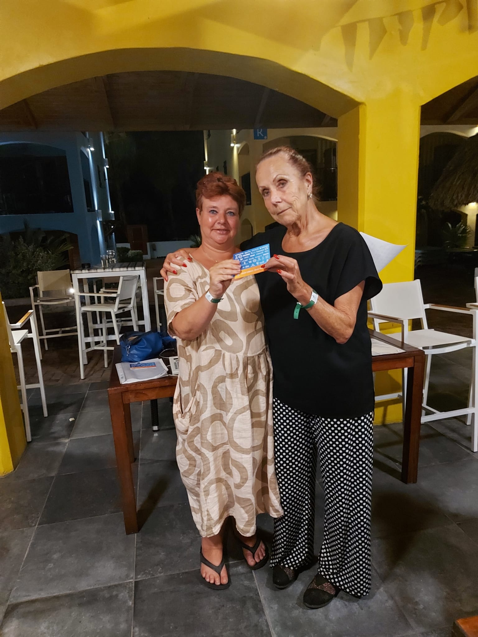 Wij, Anja en Tanja, willen iedereen bedanken voor de leuke en vooral gezellige dagen op het mooie Curaçao. Ook wij hebben genoten van de zon, de zee, het heerlijke eten en drinken op het resort. Maar bovenal nieuwe contacten opgedaan, oude contacten verstevigd. Het was fijn om jullie wedstrijdleider en gastvrouw te zijn. Daarnaast zijn we door jullie verwend met een enveloppe met inhoud en veel lieve woorden op de kaart. Wij hopen jullie in goede gezondheid weer te zien bij BridgeTravelling of aan de bridgetafel in het land.