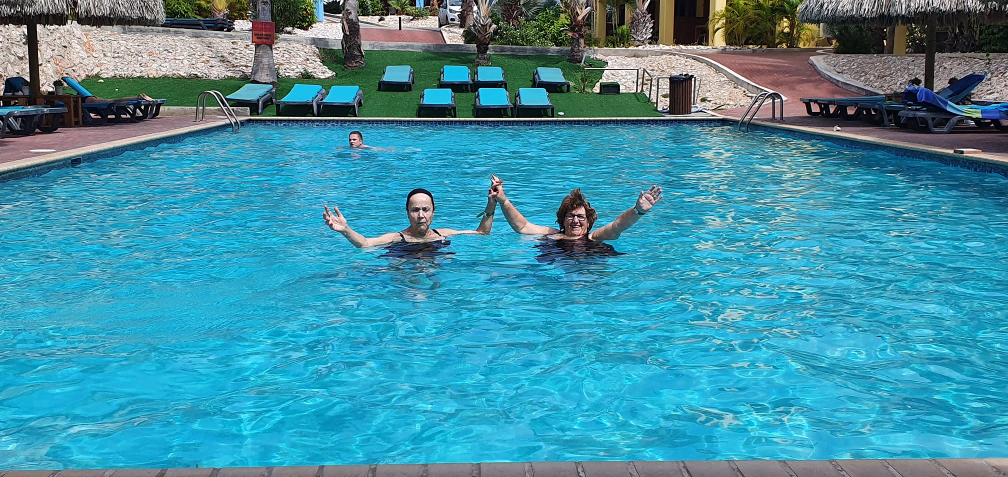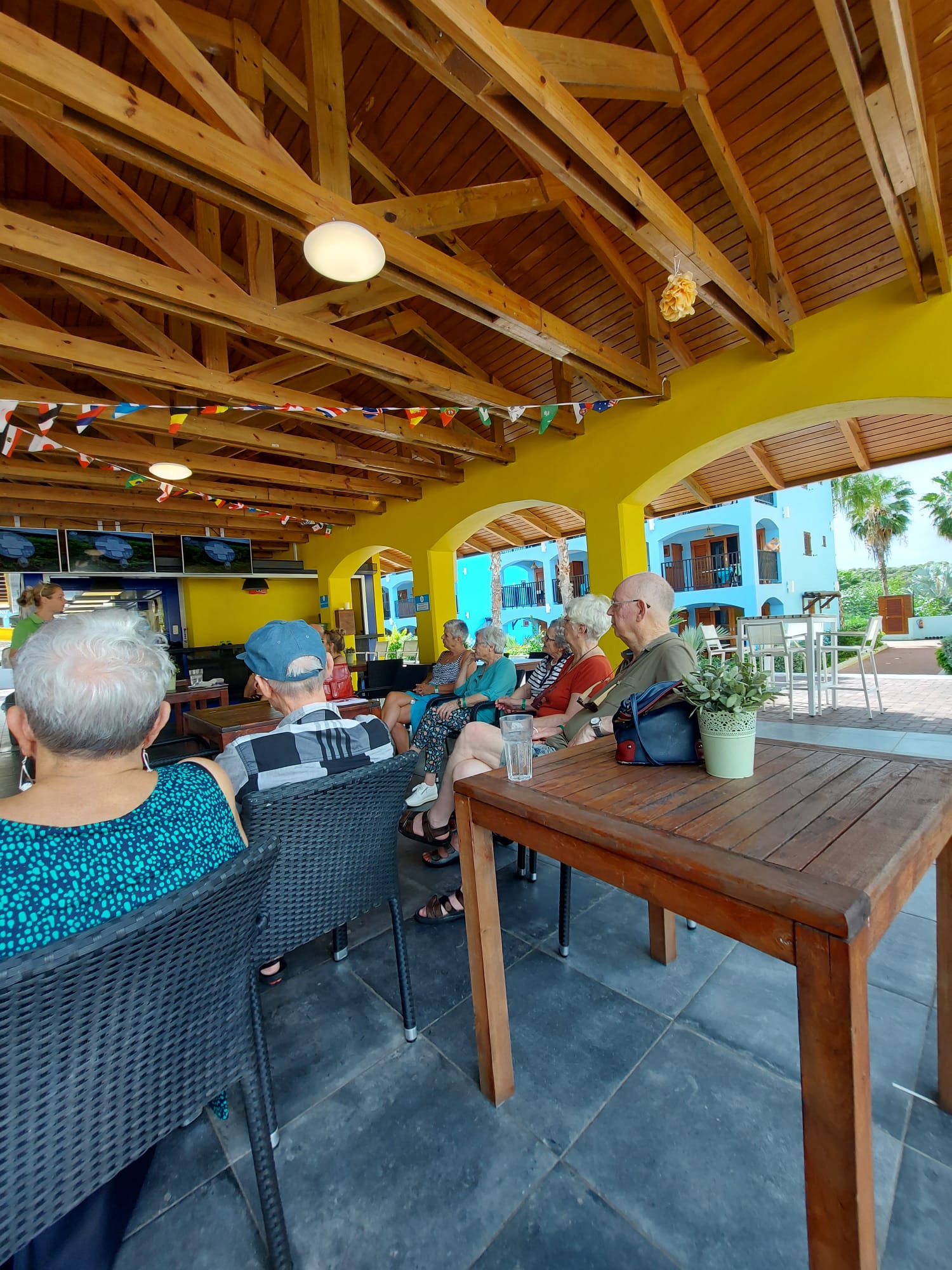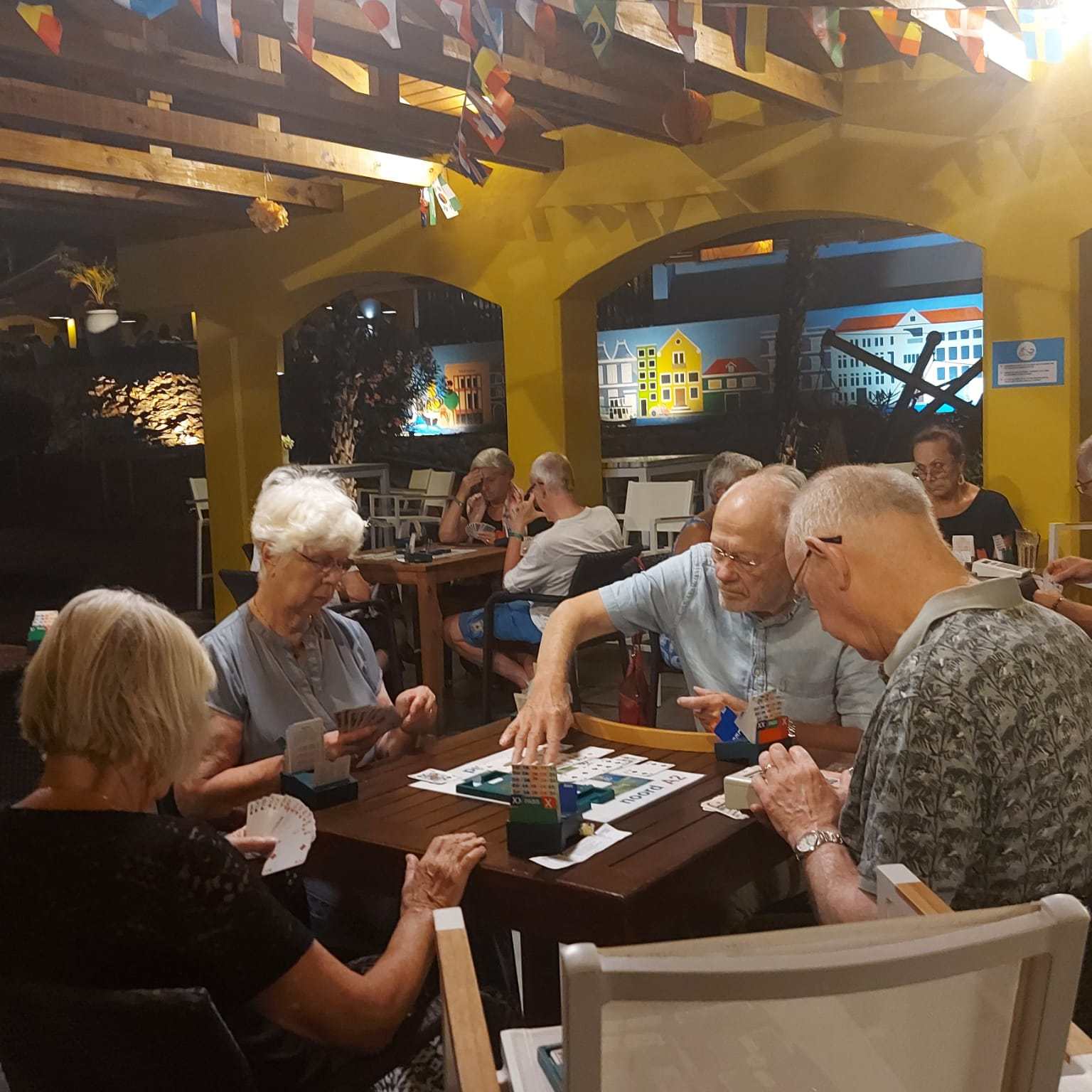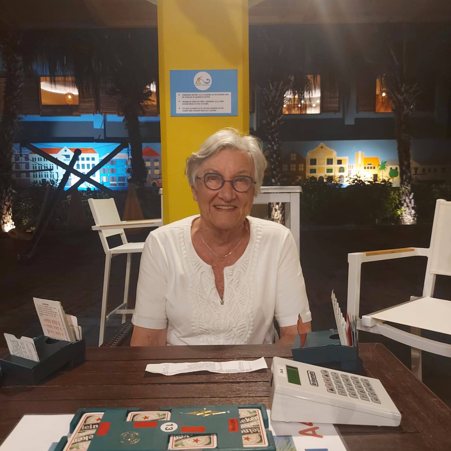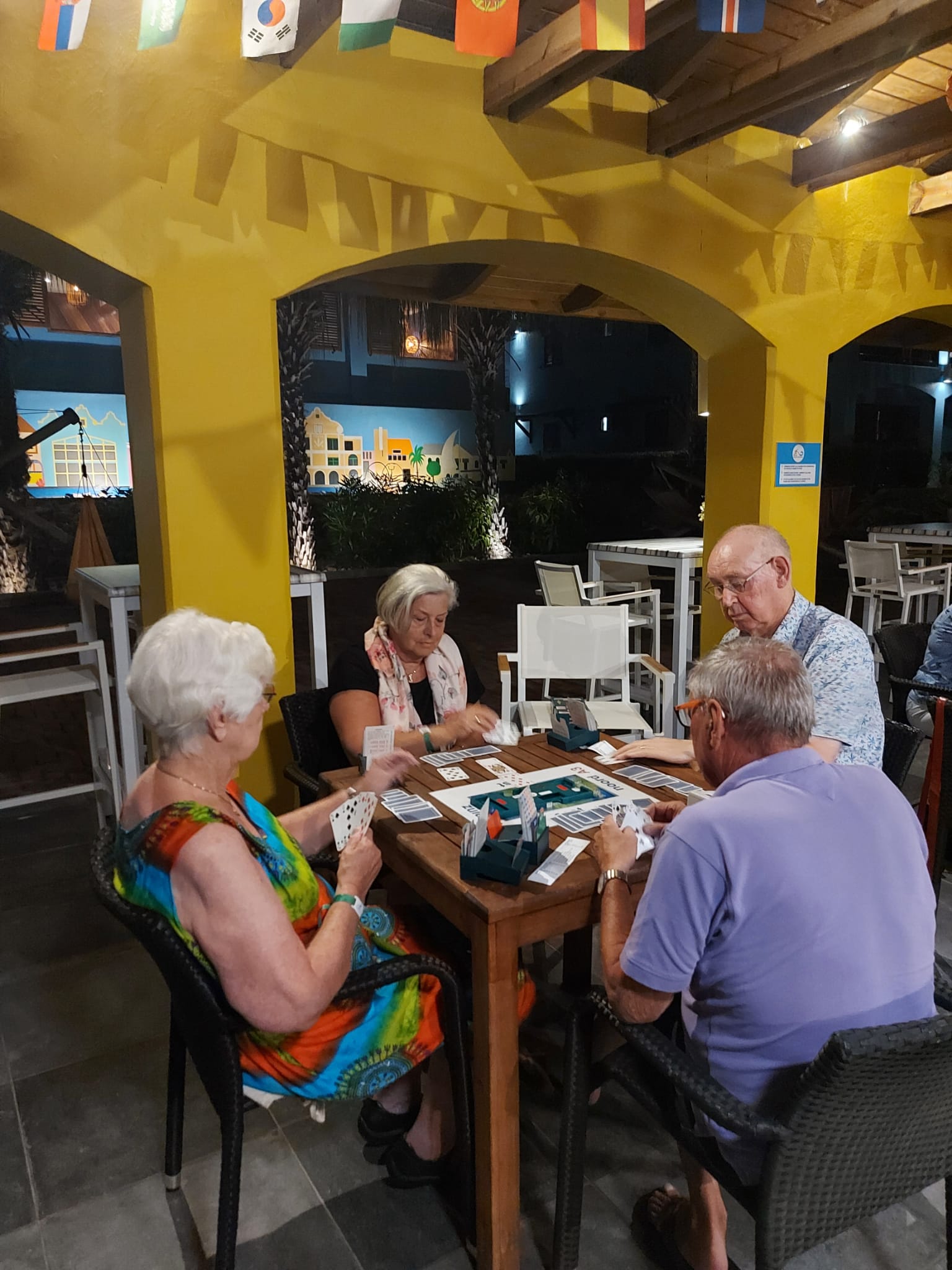 Wij, Anja en Tanja, willen iedereen bedanken voor de leuke en vooral gezellige dagen op het mooie Curaçao. Ook wij hebben genoten van de zon, de zee, het heerlijke eten en drinken op het resort. Maar bovenal nieuwe contacten opgedaan, oude contacten verstevigd. Het was fijn om jullie wedstrijdleider en gastvrouw te zijn. Daarnaast zijn we door jullie verwend met een enveloppe met inhoud en veel lieve woorden op de kaart. Wij hopen jullie in goede gezondheid weer te zien bij BridgeTravelling of aan de bridgetafel in het land.
