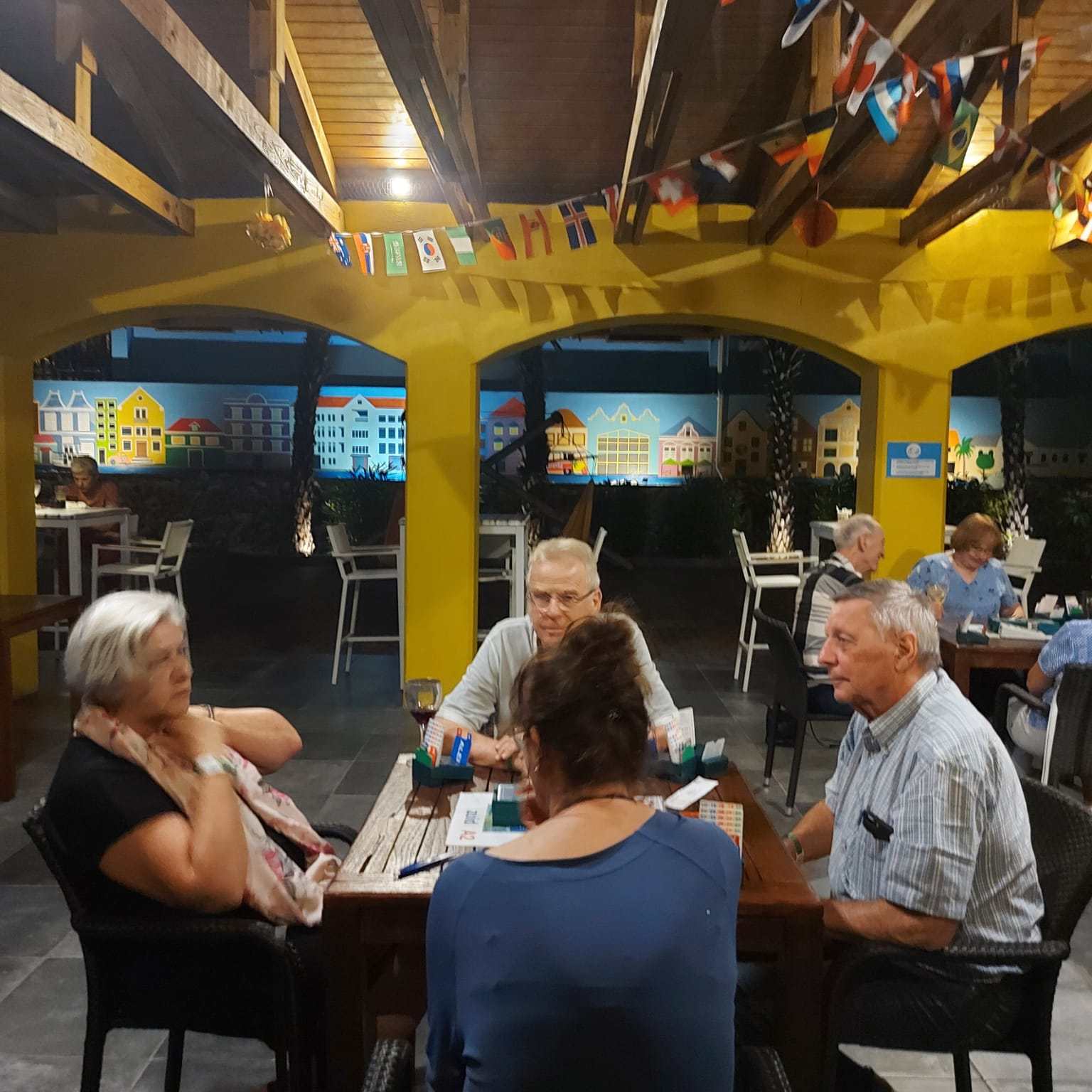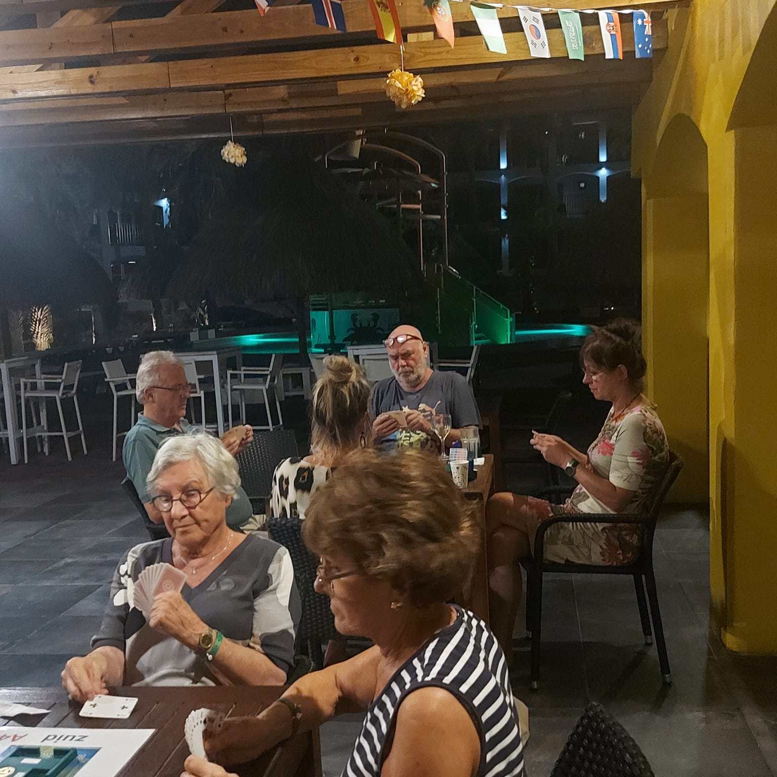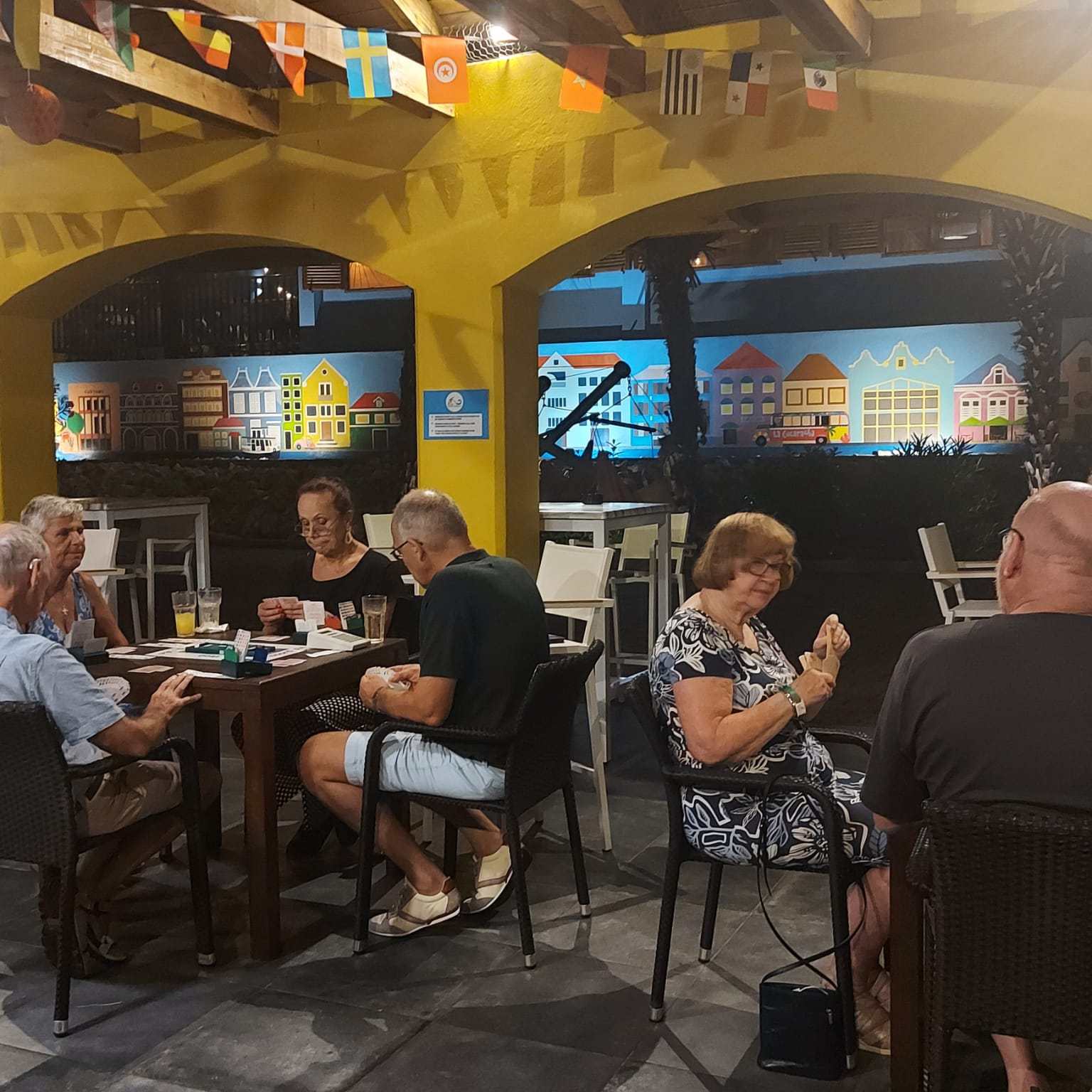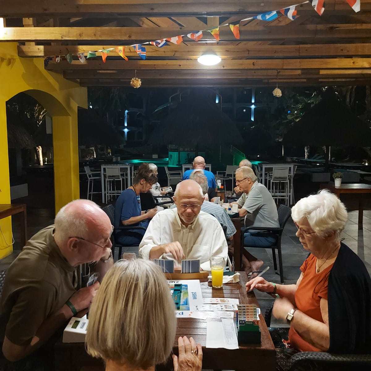 Wij, Anja en Tanja, willen iedereen bedanken voor de leuke en vooral gezellige dagen op het mooie Curaçao. Ook wij hebben genoten van de zon, de zee, het heerlijke eten en drinken op het resort. Maar bovenal nieuwe contacten opgedaan, oude contacten verstevigd. Het was fijn om jullie wedstrijdleider en gastvrouw te zijn. Daarnaast zijn we door jullie verwend met een enveloppe met inhoud en veel lieve woorden op de kaart. Wij hopen jullie in goede gezondheid weer te zien bij BridgeTravelling of aan de bridgetafel in het land.