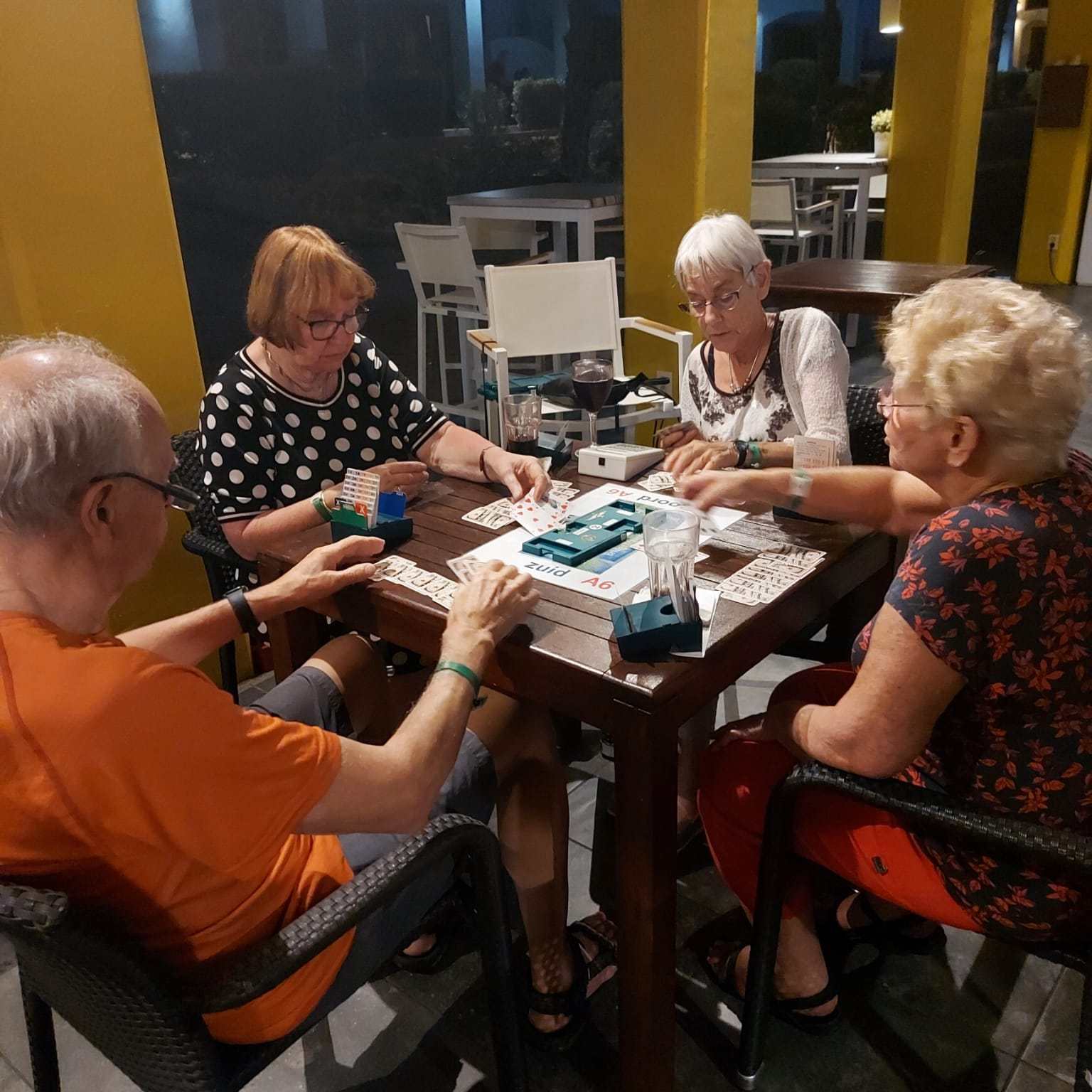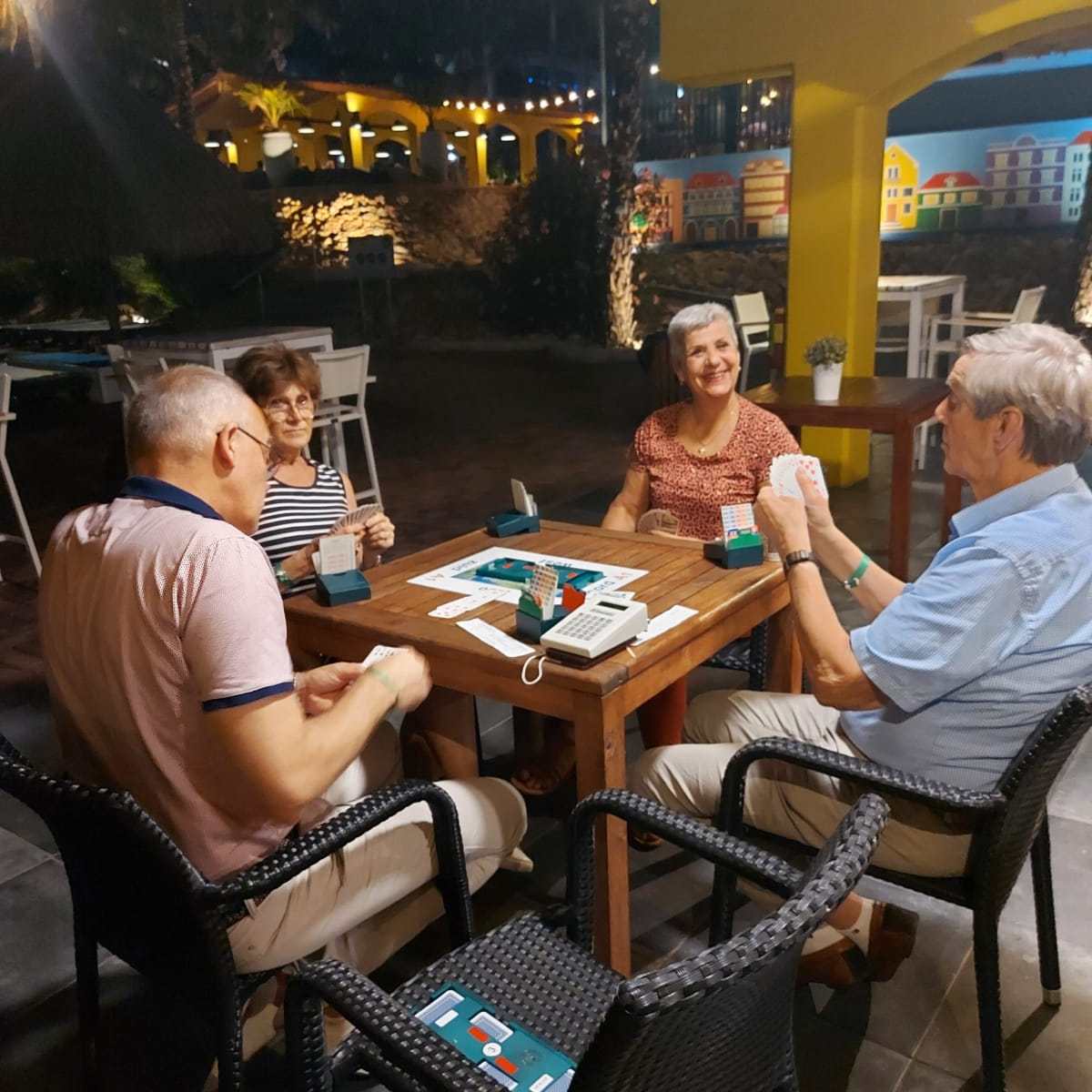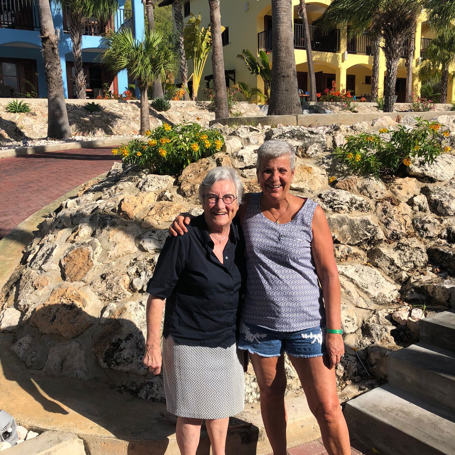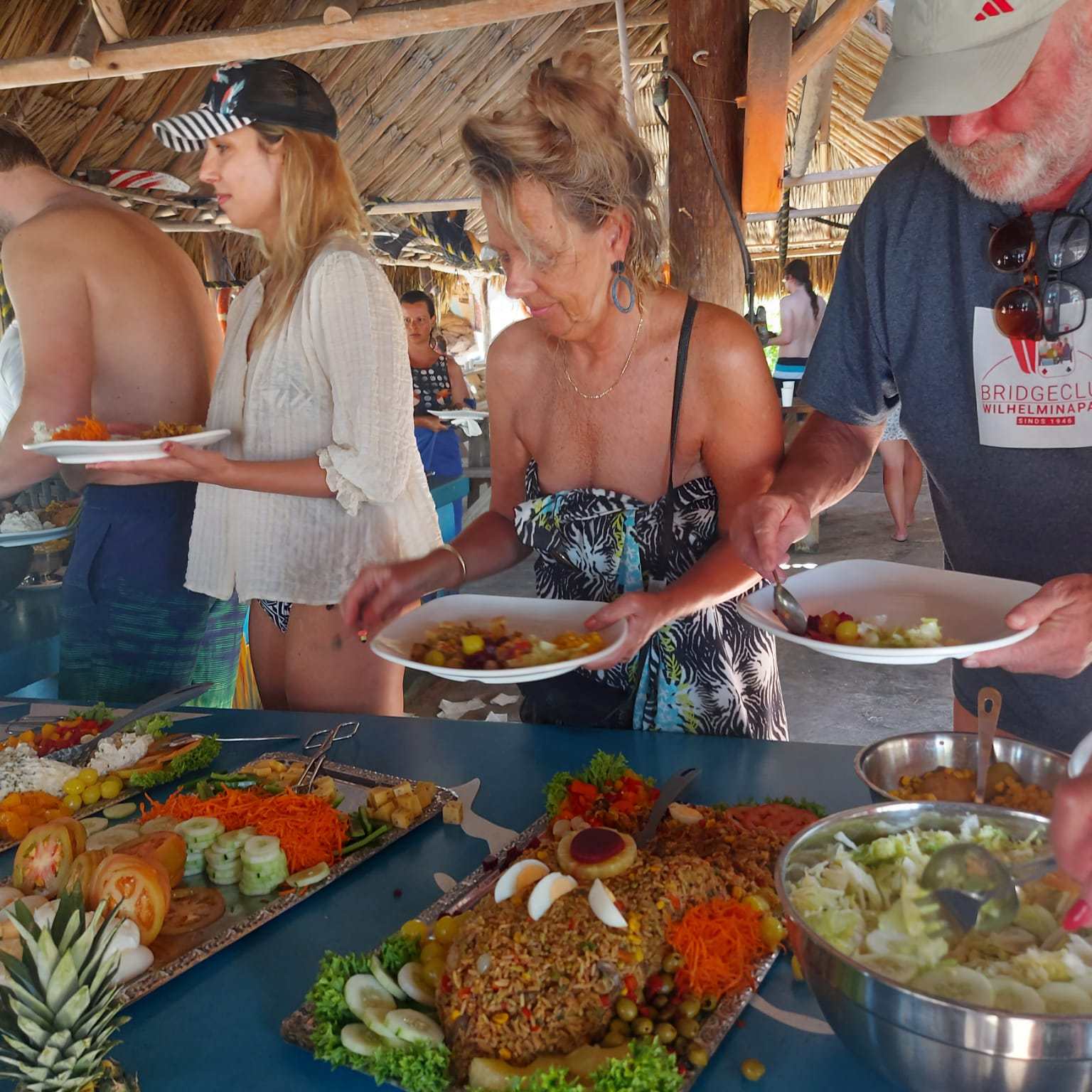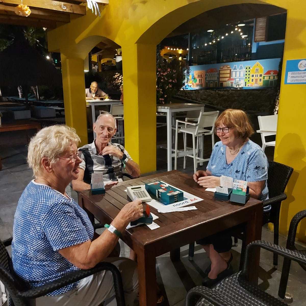 Wij, Anja en Tanja, willen iedereen bedanken voor de leuke en vooral gezellige dagen op het mooie Curaçao. Ook wij hebben genoten van de zon, de zee, het heerlijke eten en drinken op het resort. Maar bovenal nieuwe contacten opgedaan, oude contacten verstevigd. Het was fijn om jullie wedstrijdleider en gastvrouw te zijn. Daarnaast zijn we door jullie verwend met een enveloppe met inhoud en veel lieve woorden op de kaart. Wij hopen jullie in goede gezondheid weer te zien bij BridgeTravelling of aan de bridgetafel in het land.