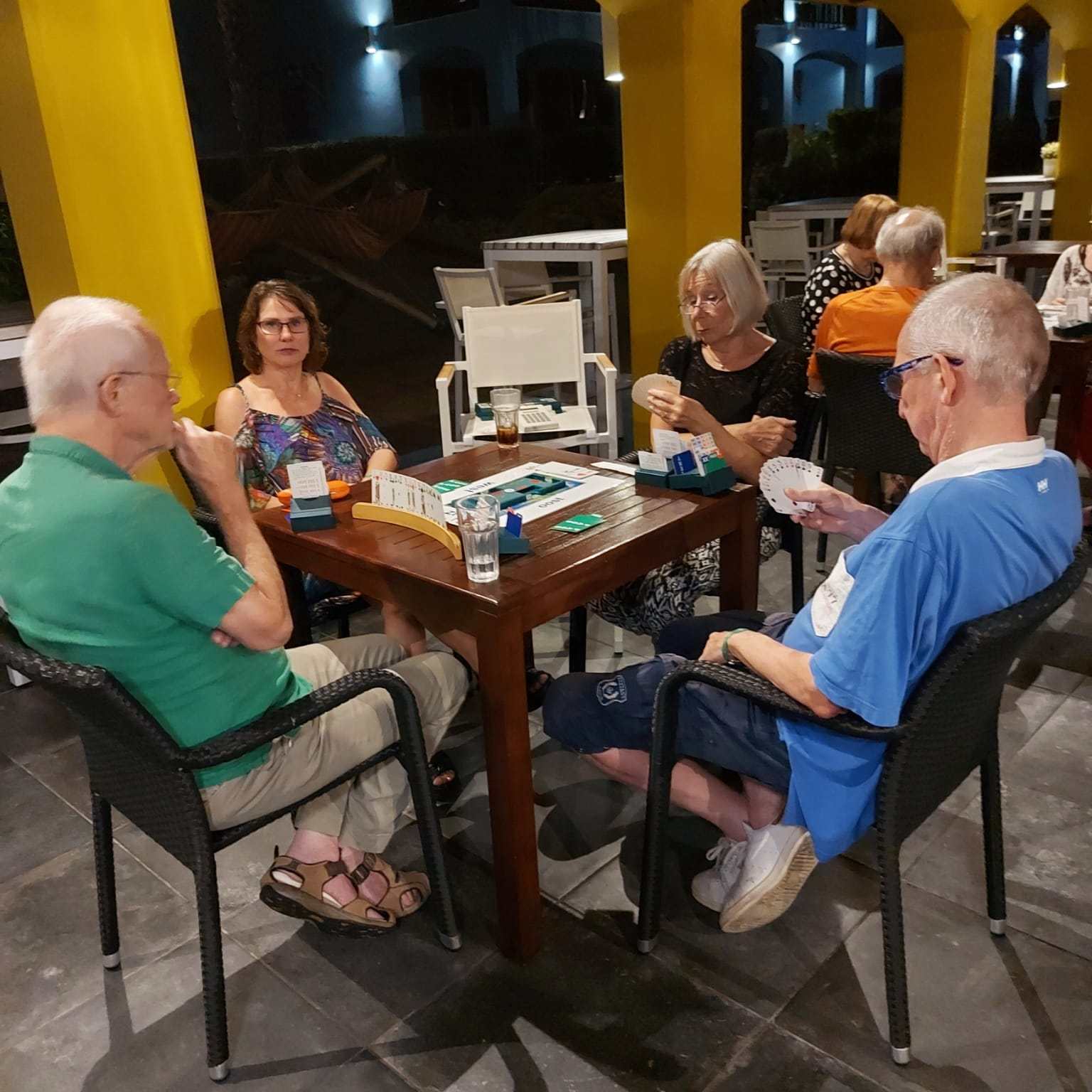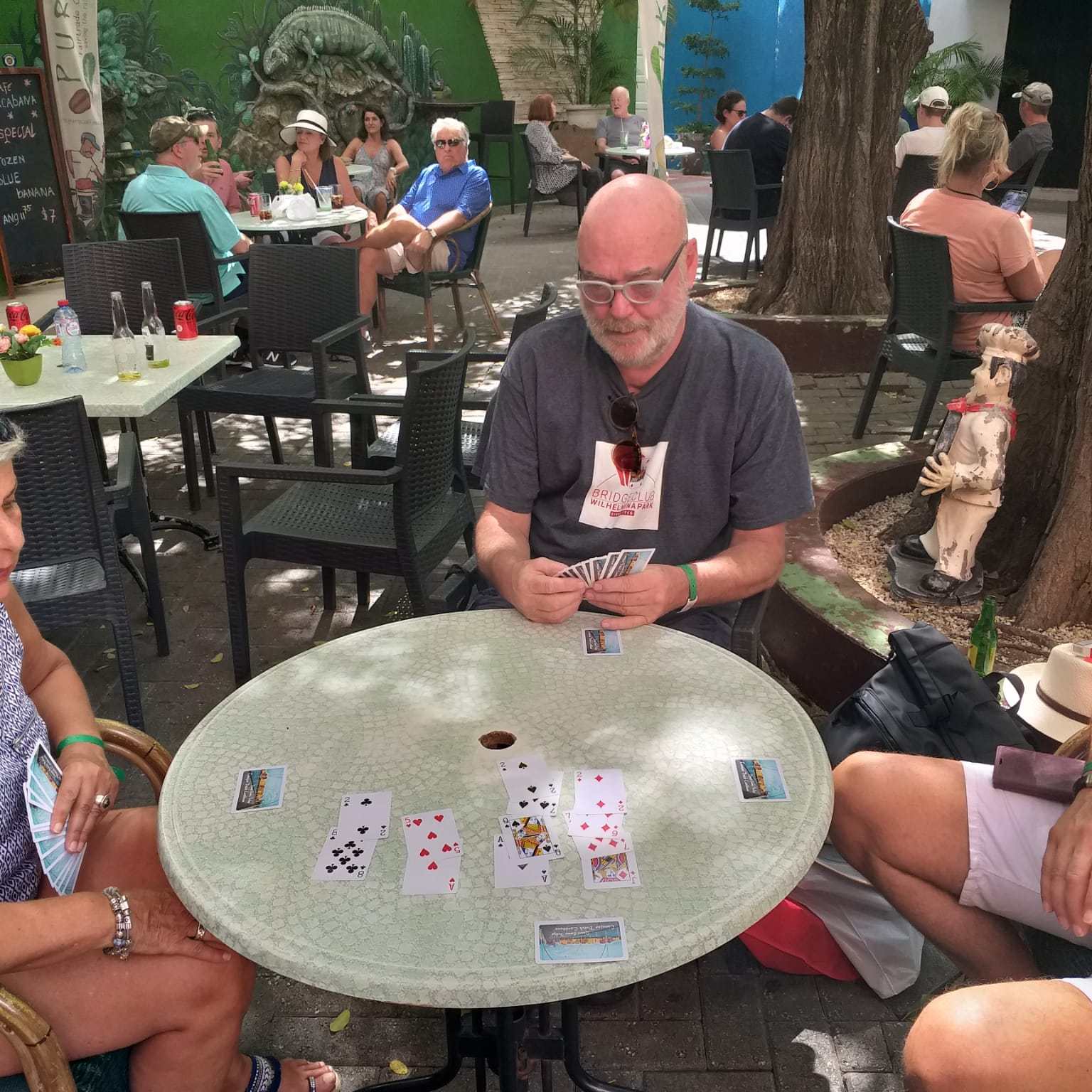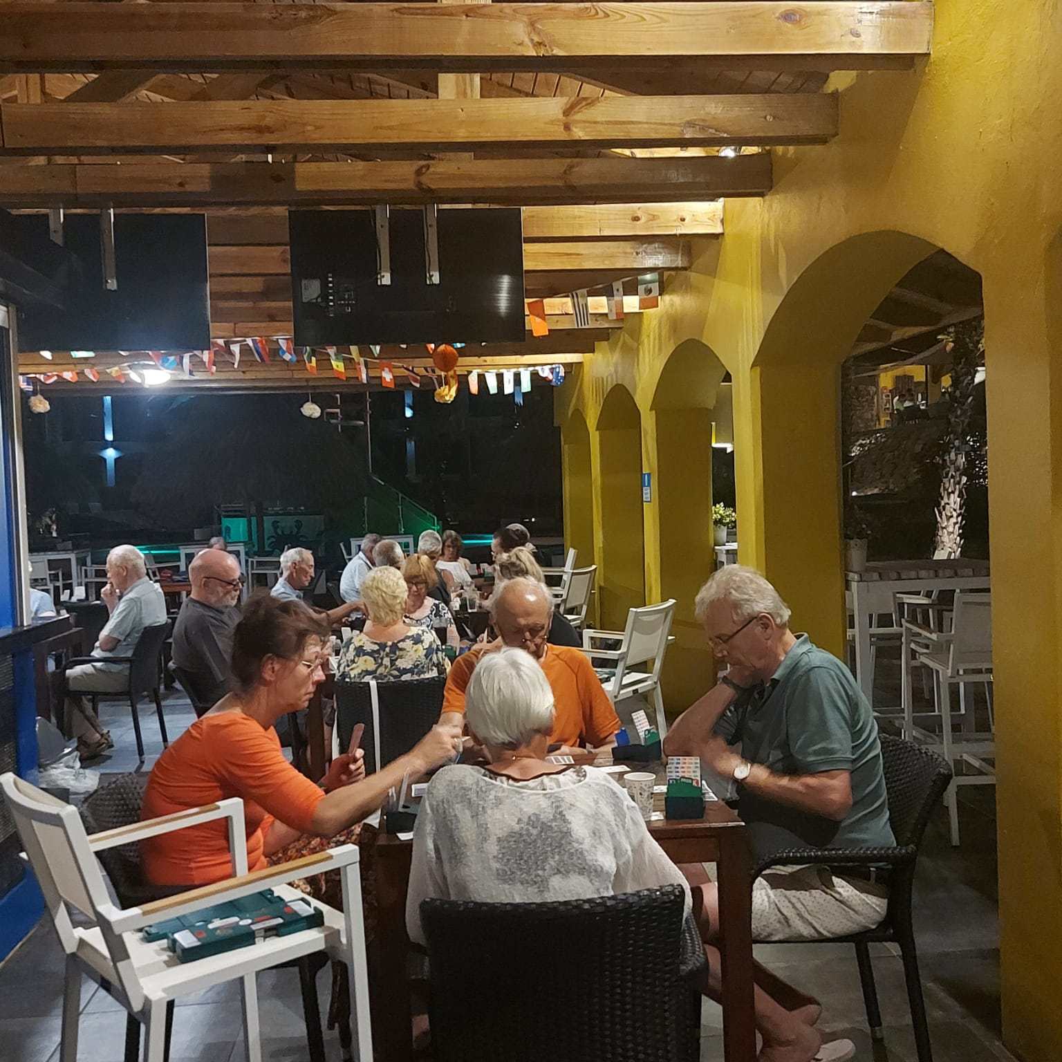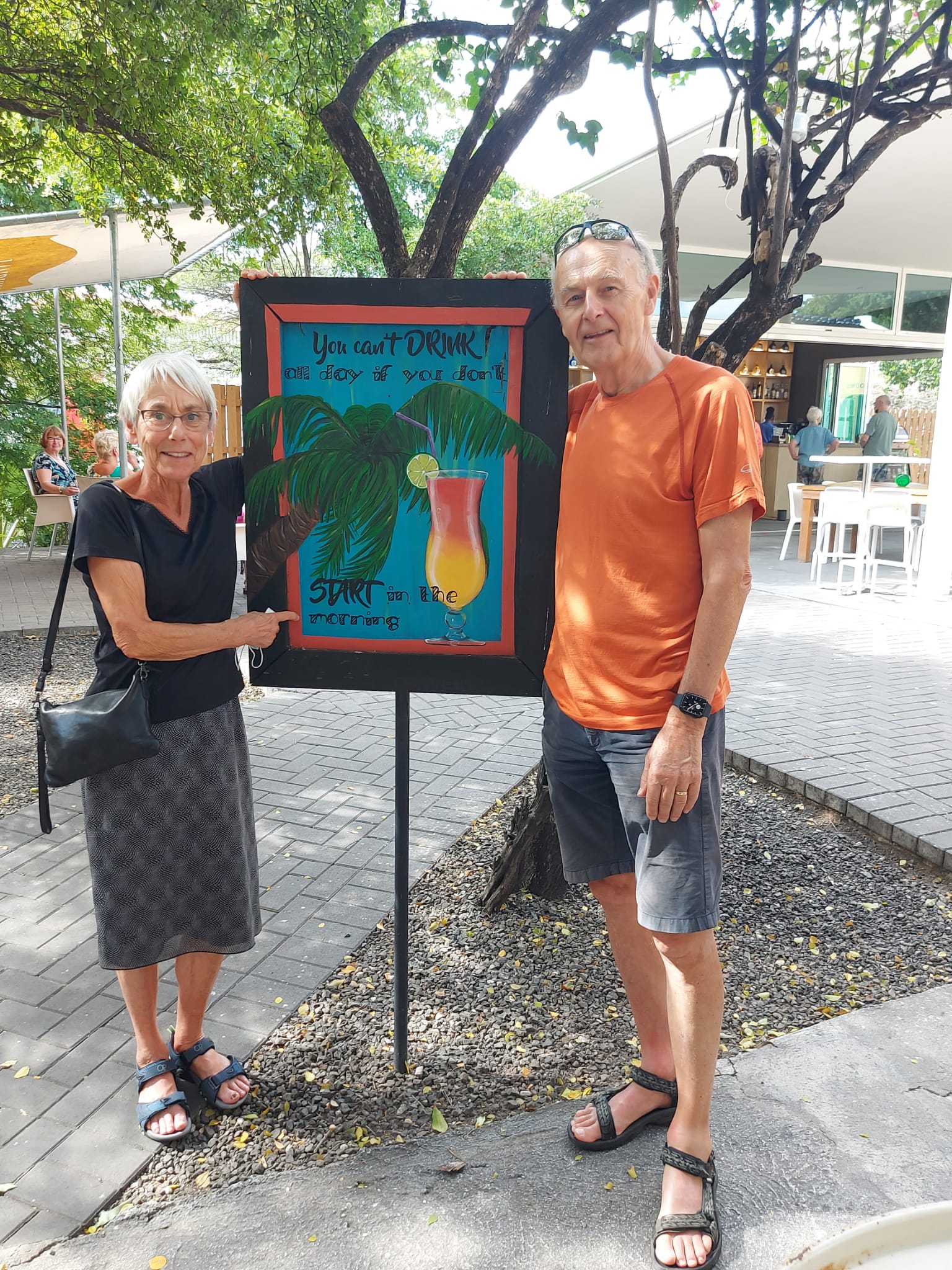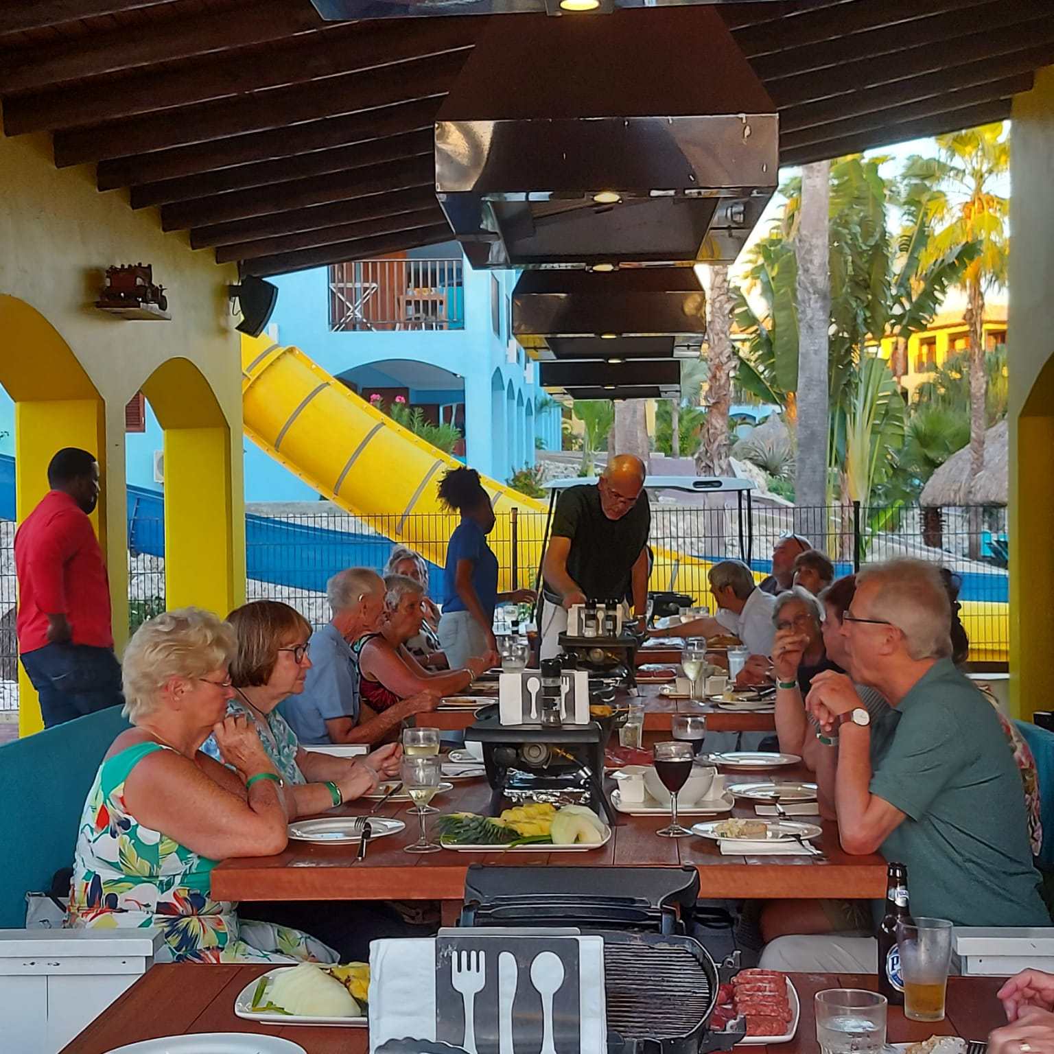 Wij, Anja en Tanja, willen iedereen bedanken voor de leuke en vooral gezellige dagen op het mooie Curaçao. Ook wij hebben genoten van de zon, de zee, het heerlijke eten en drinken op het resort. Maar bovenal nieuwe contacten opgedaan, oude contacten verstevigd. Het was fijn om jullie wedstrijdleider en gastvrouw te zijn. Daarnaast zijn we door jullie verwend met een enveloppe met inhoud en veel lieve woorden op de kaart. Wij hopen jullie in goede gezondheid weer te zien bij BridgeTravelling of aan de bridgetafel in het land.