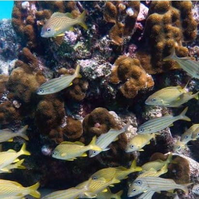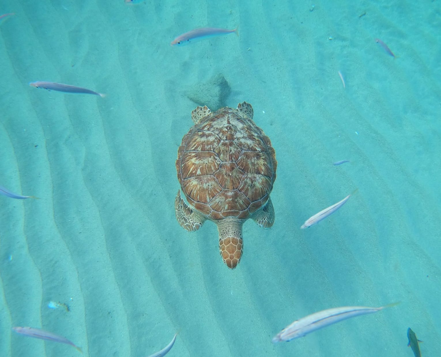 Playa Piskado zwemmen tussen tussen de schildpadden en vissen