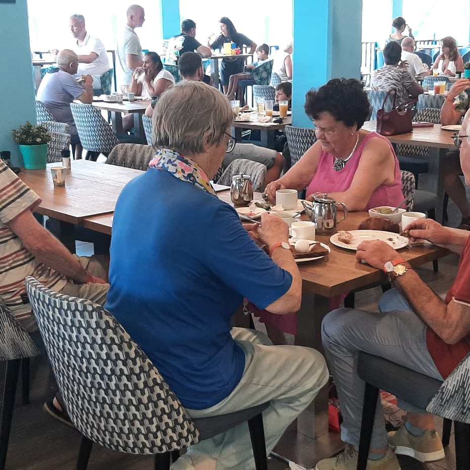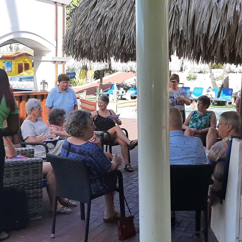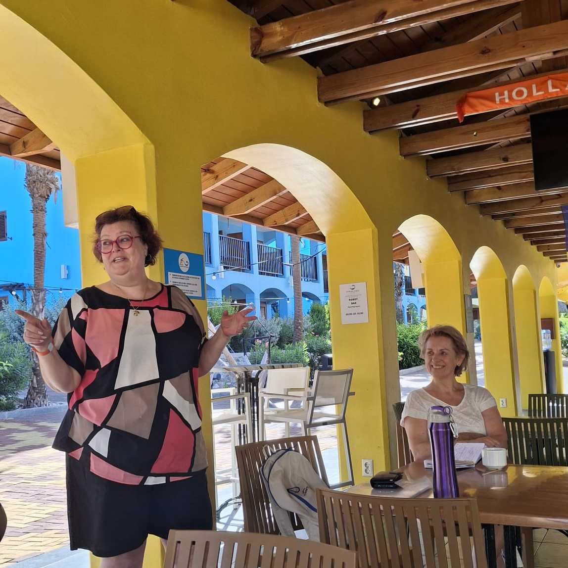 Na het ontbijt en de informatiebijeenkomst van de hostess van Corendon vertel ik op het bridgeterras meer over het resort, het bridgeprogramma, de shuttle service en de geplande uitstapjes.