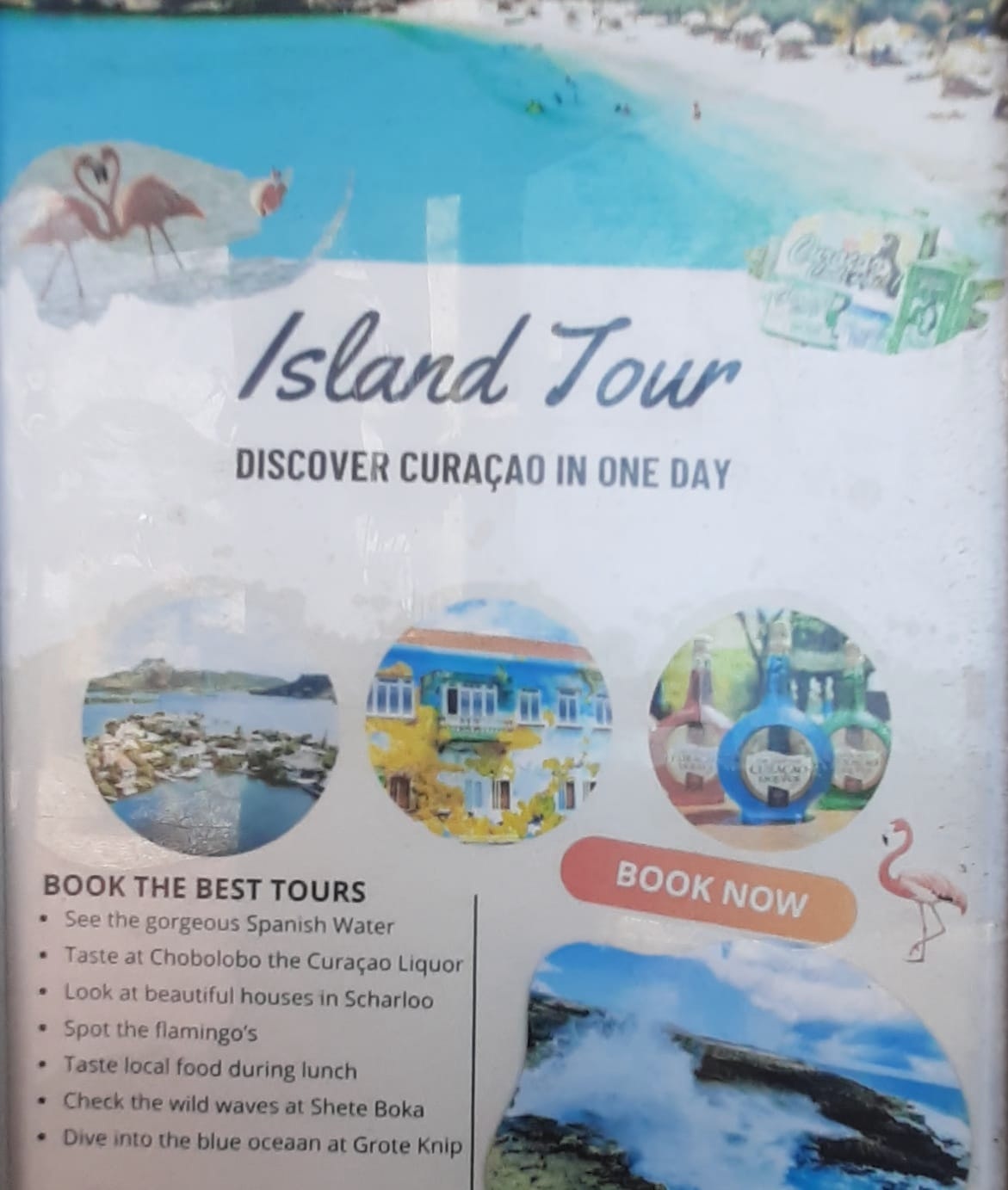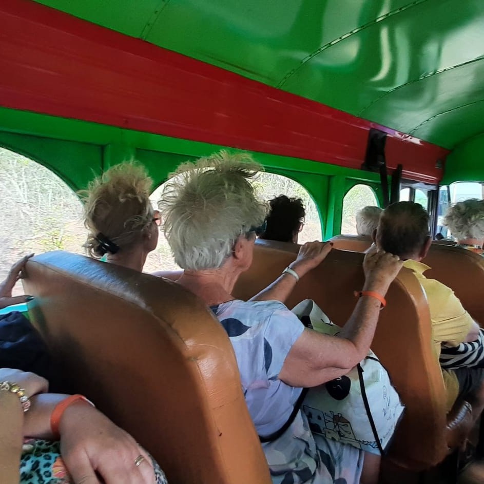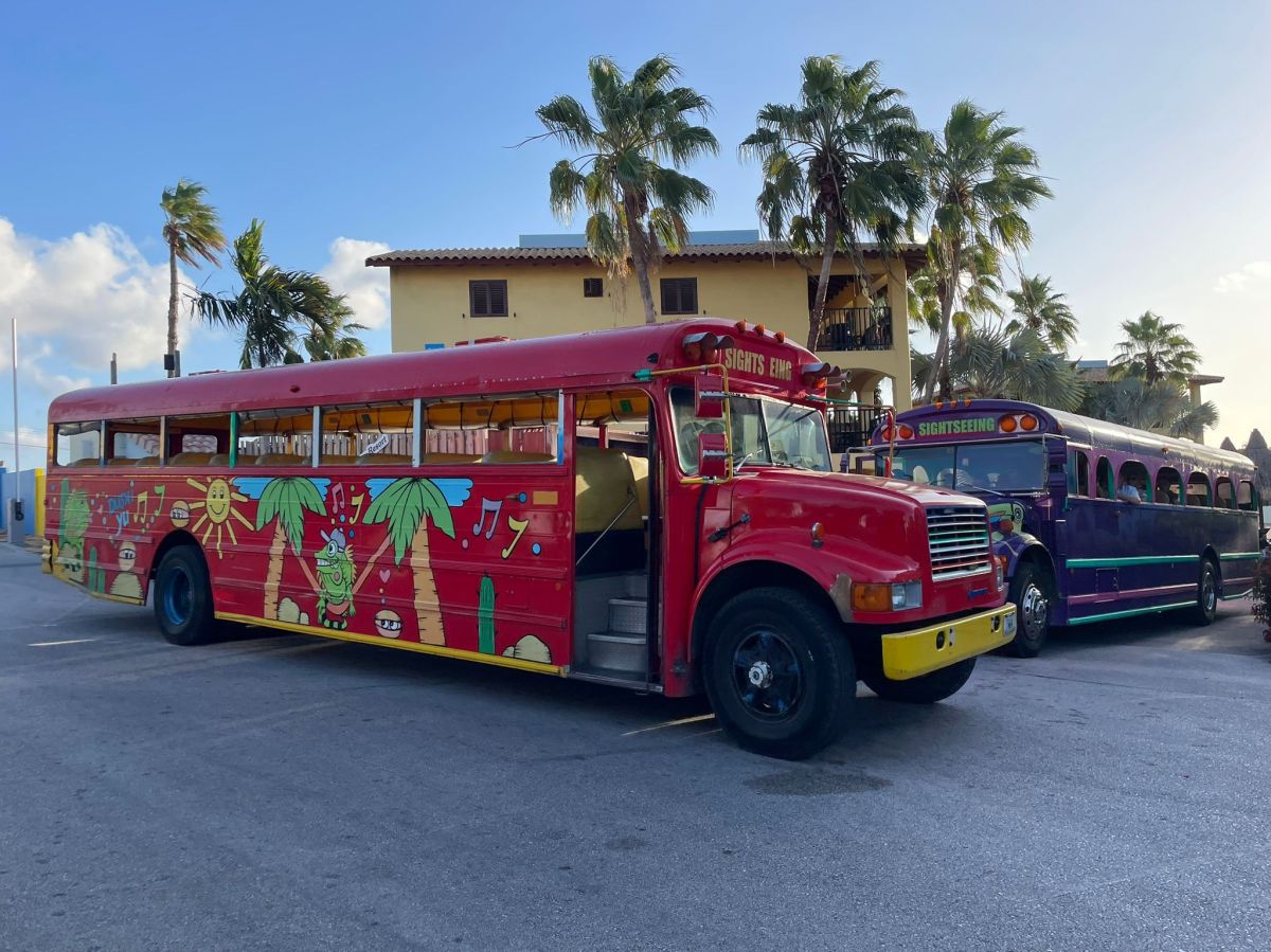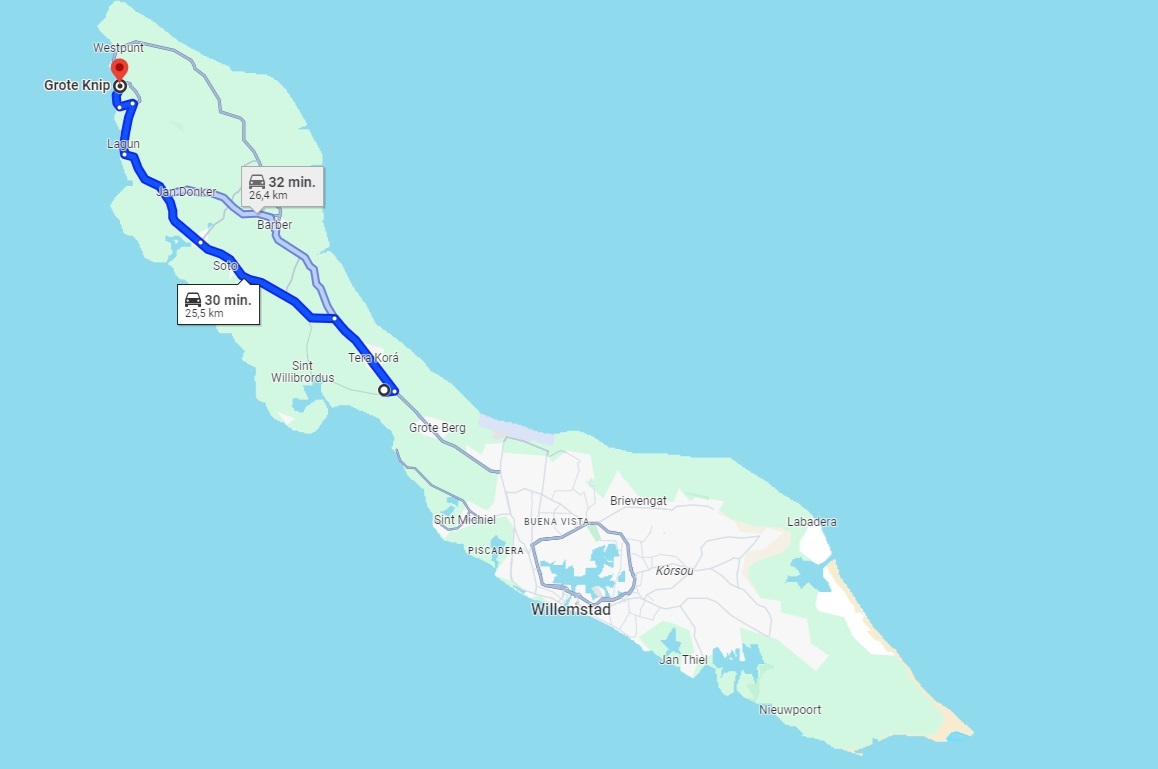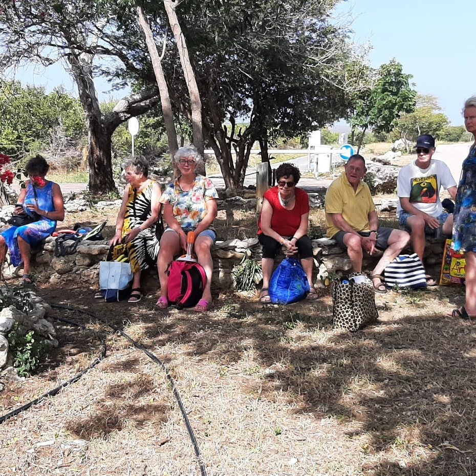 We gaan op weg voor een dag vol eilandtoeren. Eerst reizen we door de Shell-wijk Juliana Dorp naar Jan Thielbaai. Vervolgens rijden we naar de likeurfabriek, Landhuis Chobolobo. Daarna staat het westpunt op het programma. In de middag keren we terug via de Grote Knipbaai.