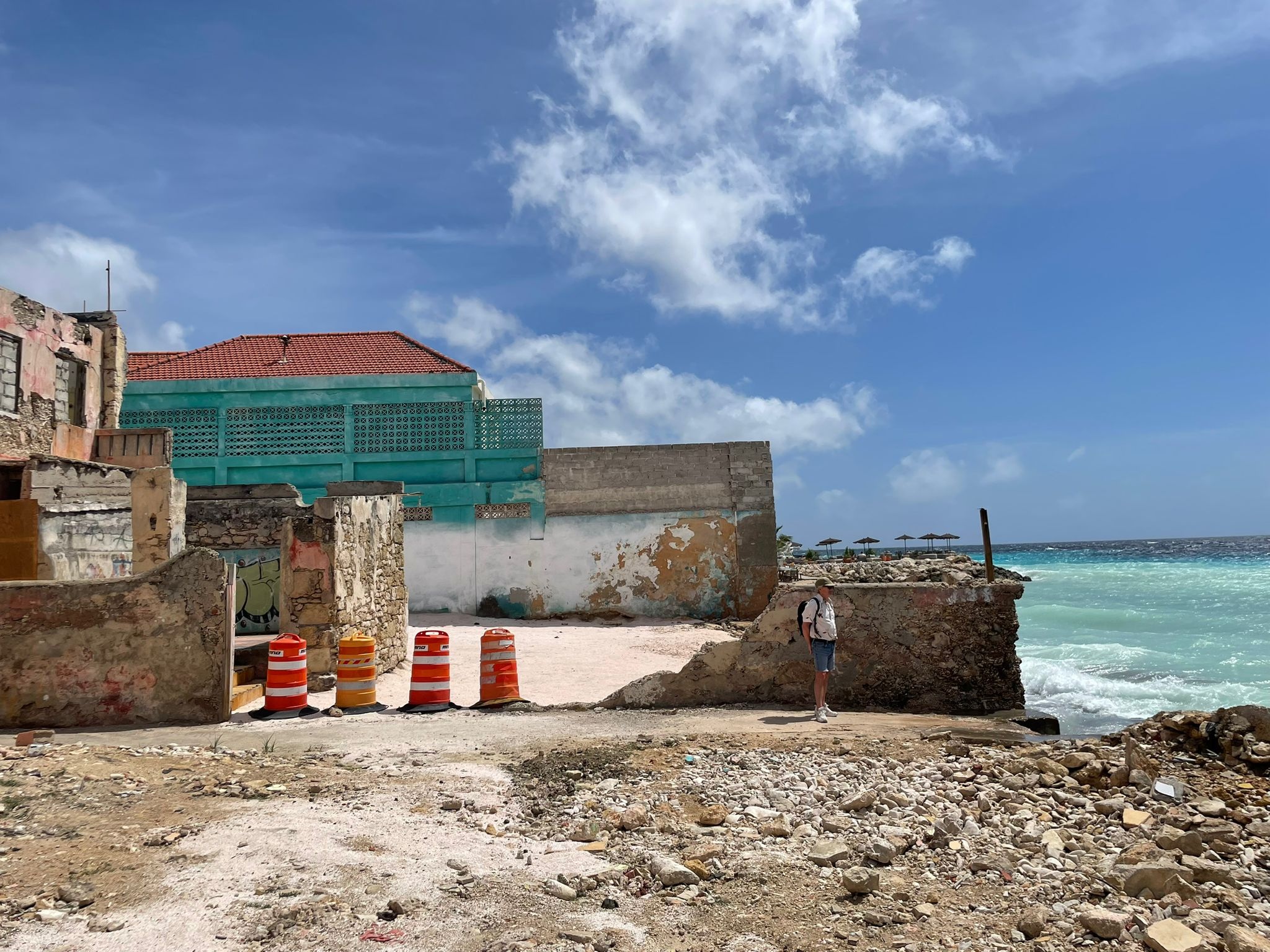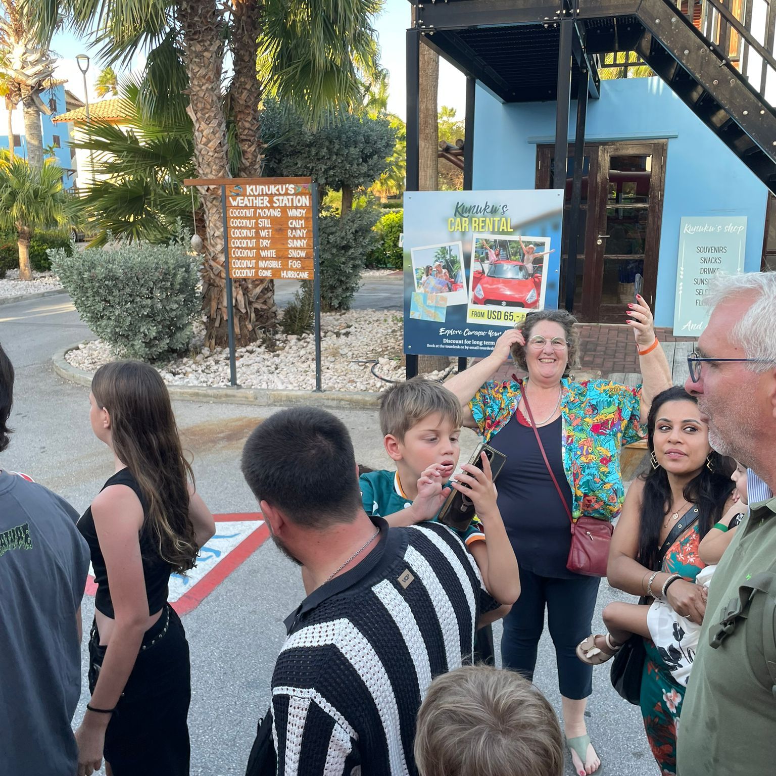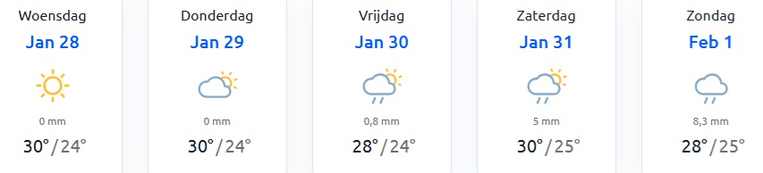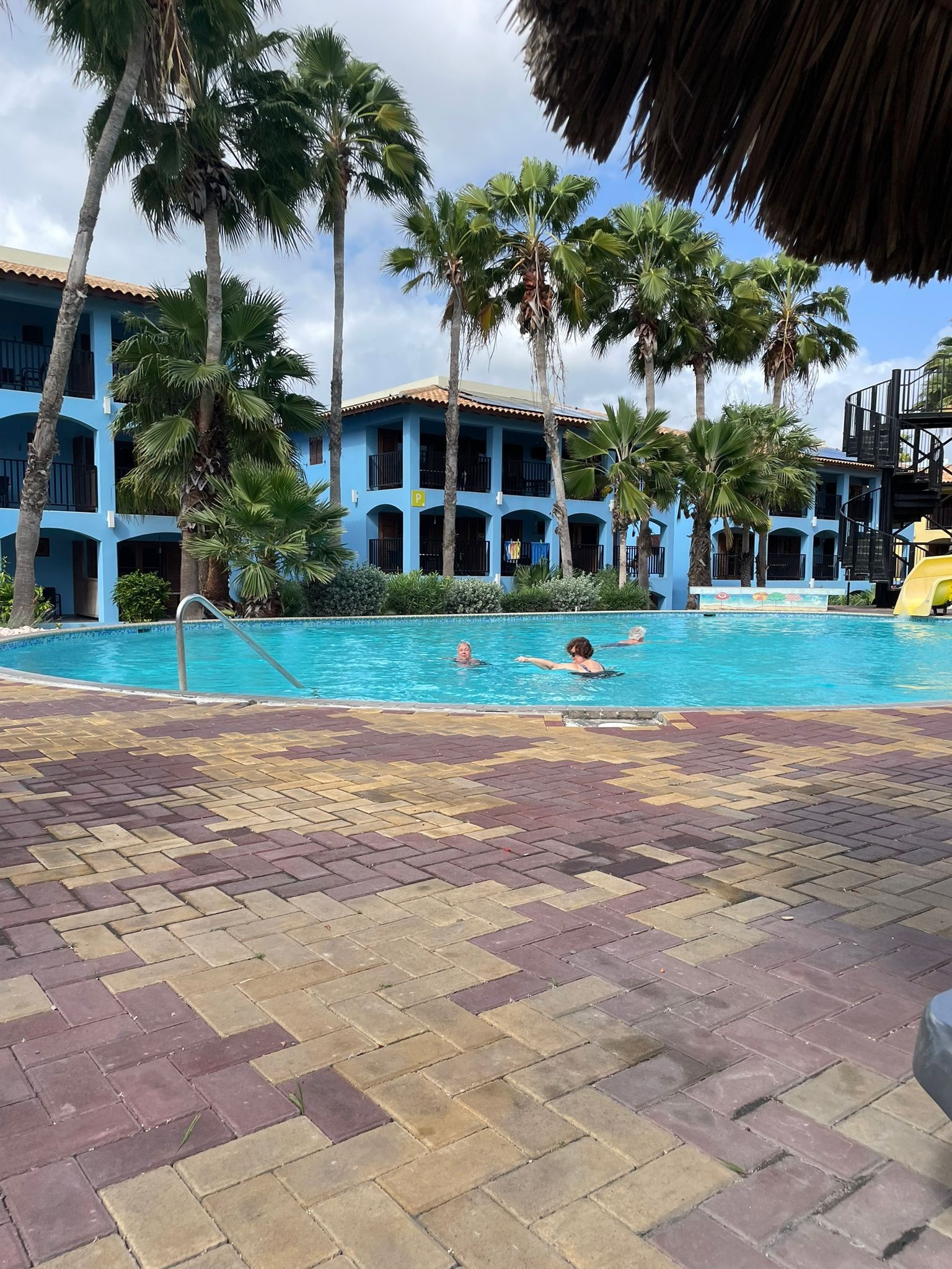 Na het ontbijt vertrekken veel gasten met de shuttle naar Willemstad. We zien ook gasten vertrekken naar het strand van Piratebay en Boka Pistol, een natuurverschijnsel (zie video verder). Het is warm en drukkend, vannacht is een flinke bui gevallen. Voorspellingen zijn dat er veel dagtoeristen vandaag op het Resort zijn voor de glijbanen.