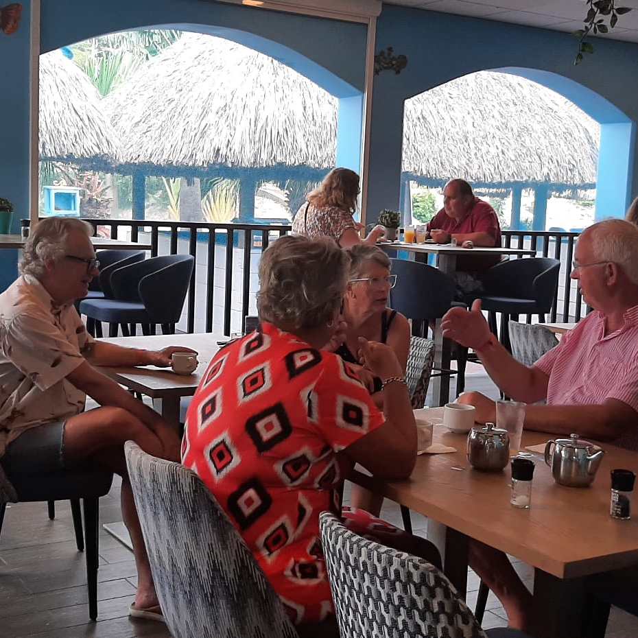 Om 7.45 uur zijn bijna alle balkonnetjes al ruim bezet en genieten onze gasten van het heerlijke ochtendontwaken in de Caribische tropen.