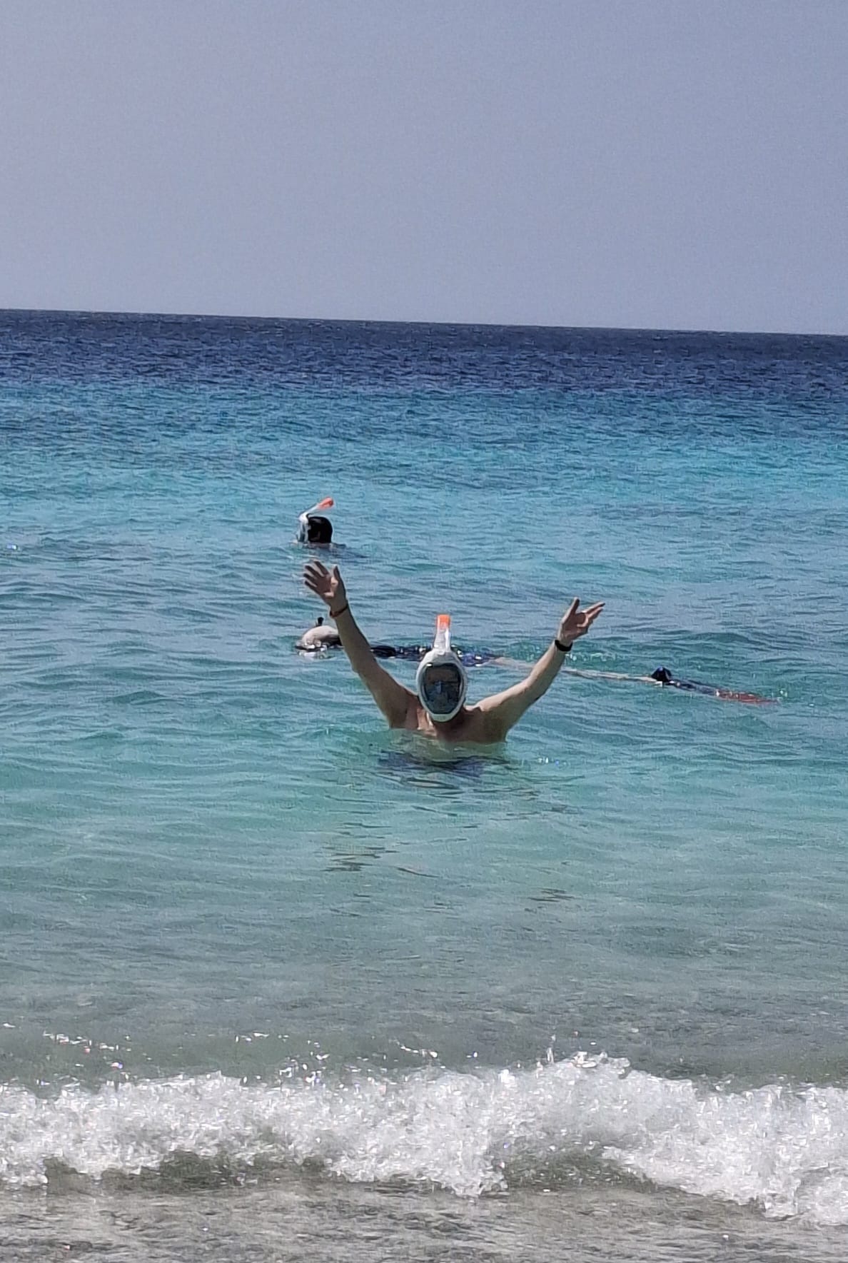 Na de informatie is het volop genieten: 31 graden, een heerlijk briesje en een geweldige watertemperatuur. Een echte bijkom- en ontspandag na de reis. Ook van de shuttlebus wordt al gebruikgemaakt.