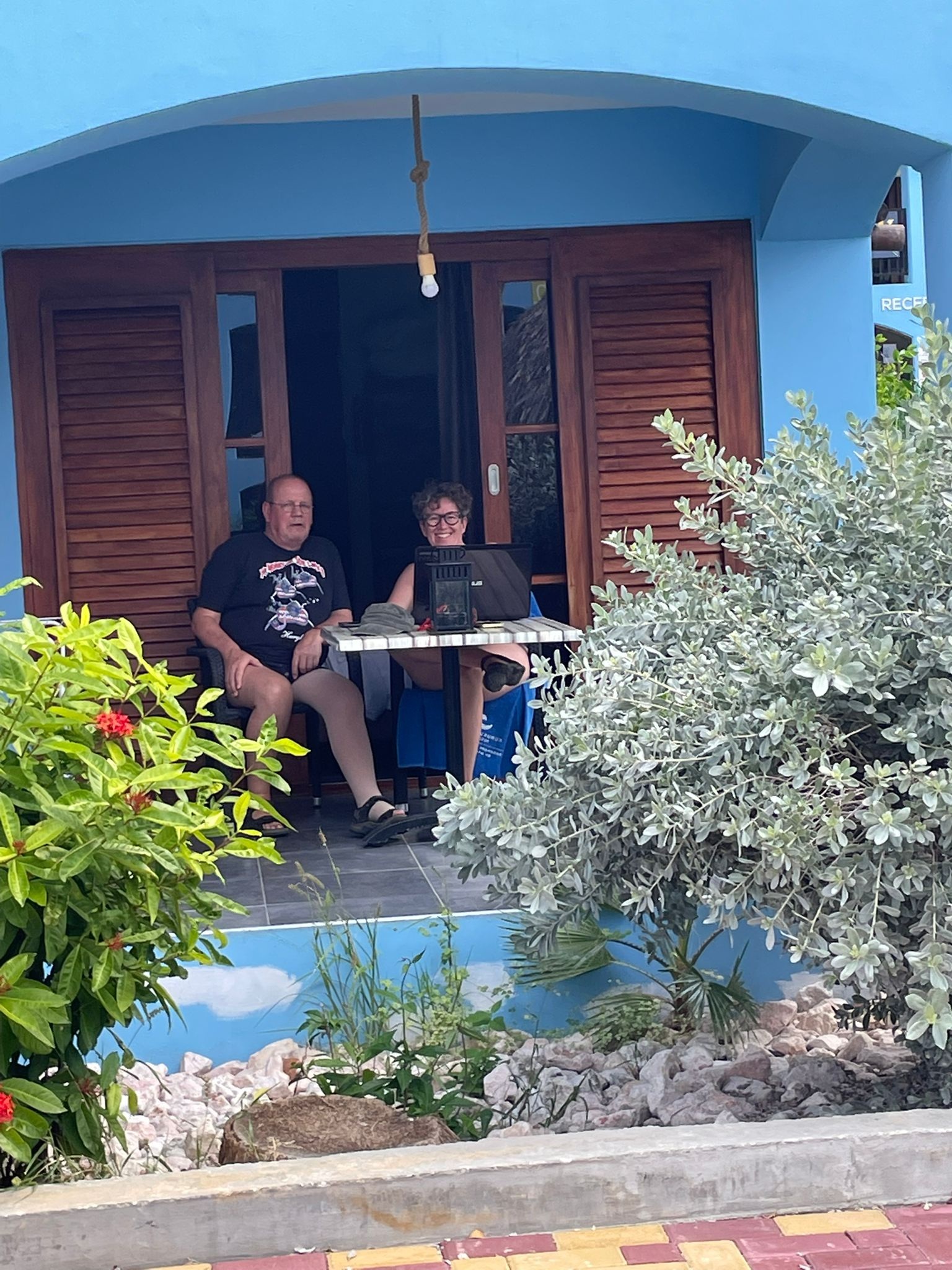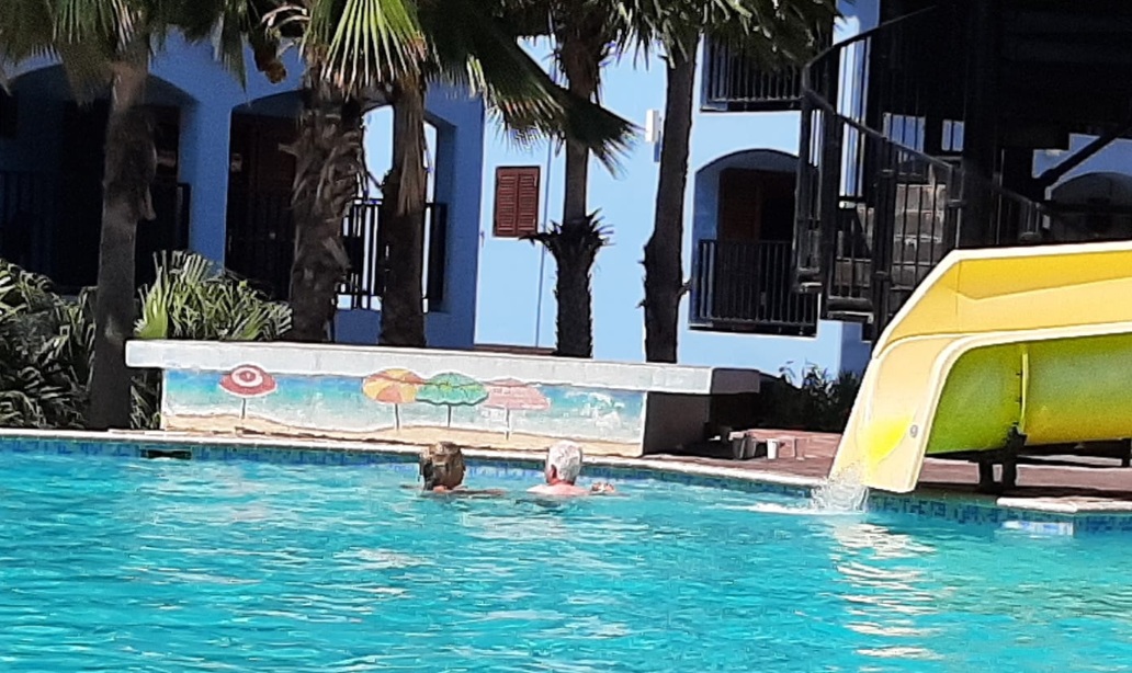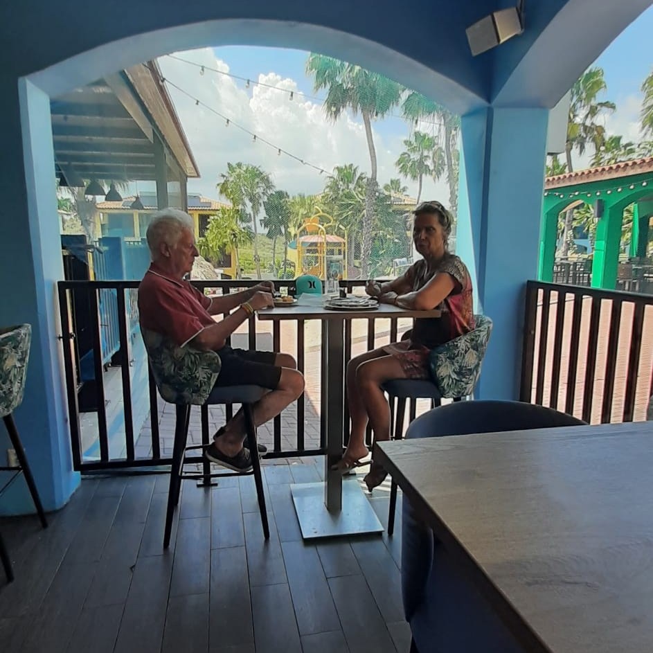 Vandaag is het opnieuw een heerlijke relaxdag. Aan zee worden de strandstoelen gretig bezet, terwijl we bij het zwembad op het resort volop glijbaanacties zien. Marcel zorgt intussen voor de nodige hersengymnastiek met een leerzaam lesje “Puntenkul en op weg naar slem”. Temara en Jaap genieten ondertussen volop van het uitzicht op hun eigen stukje “buiten” — een moment van rust en genieten pur sang.
