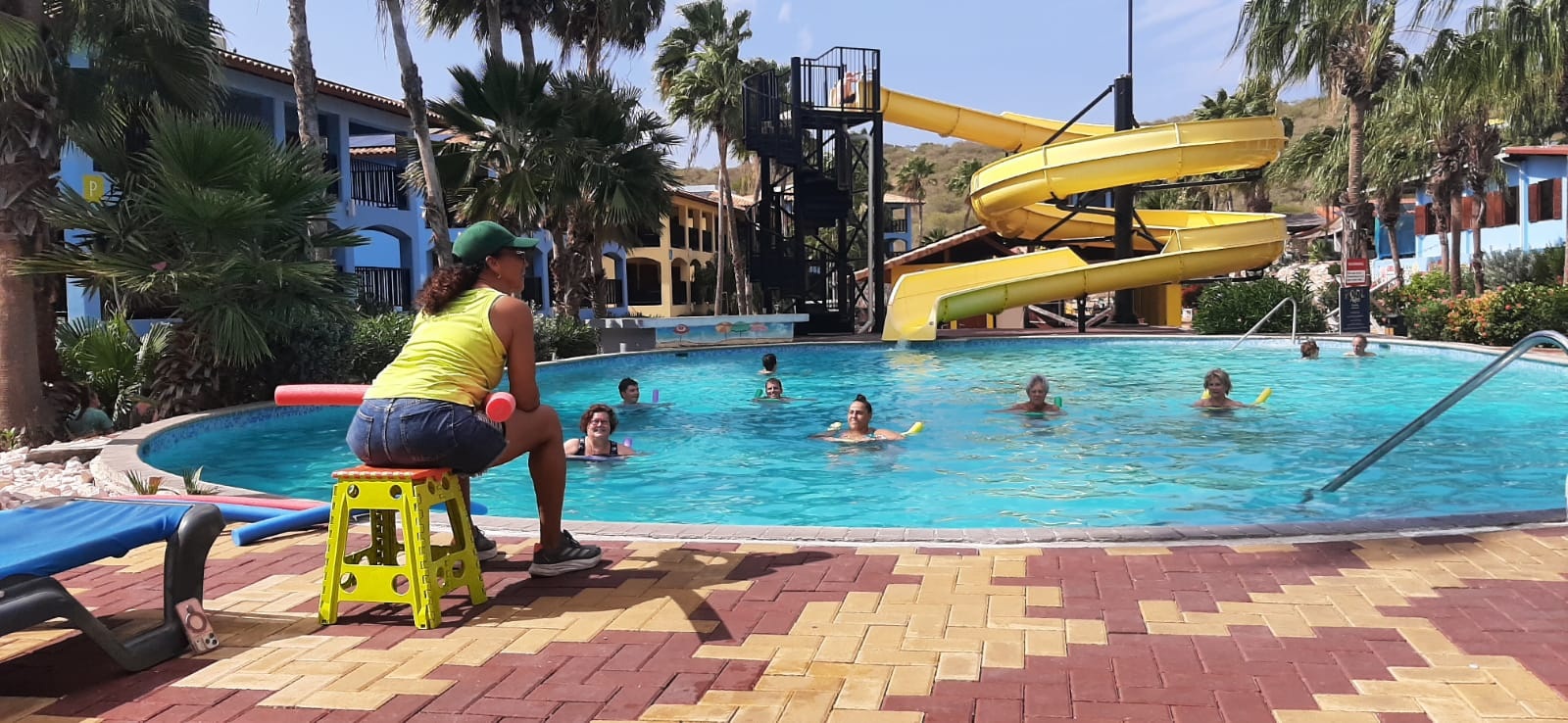 Onder leiding van Ruth hebben Henny, Corrien en ik, Caroline – met veel aanmoediging – een aqua-jogginglesje gevolgd. Ruth is daarnaast ook salsalerares en zal ons volgende week laten kennismaken met de eerste passen van het salsadansen.