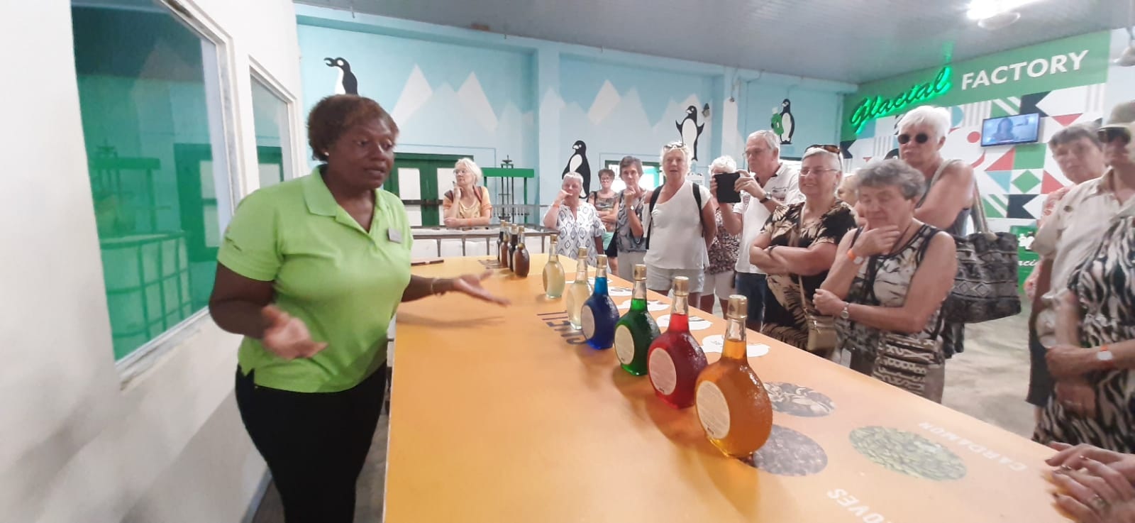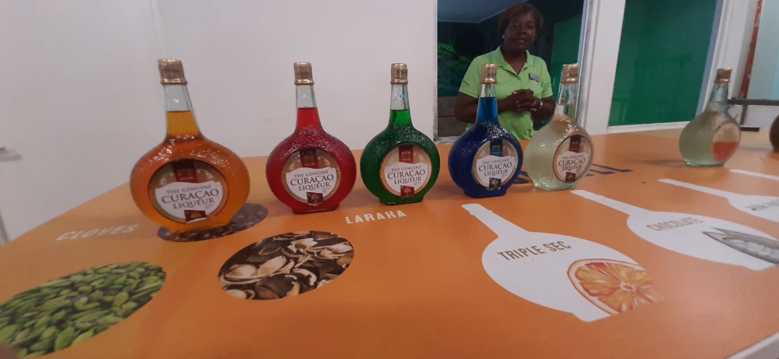 Onze volgende stop is in de wijk Salinia, bij een zoutpan, waar we een fabriek bezoeken die de bekende likeur van sinaasappelschillen produceert. De sinaasappelschillen geven de likeur zijn karakteristieke, speciale smaak. Tijdens het bezoek wordt uitgelegd dat alle gekleurde varianten, zoals Blue Curaçao, eigenlijk dezelfde likeur zijn, alleen met toegevoegde kleurstoffen. De originele likeur is doorzichtig.