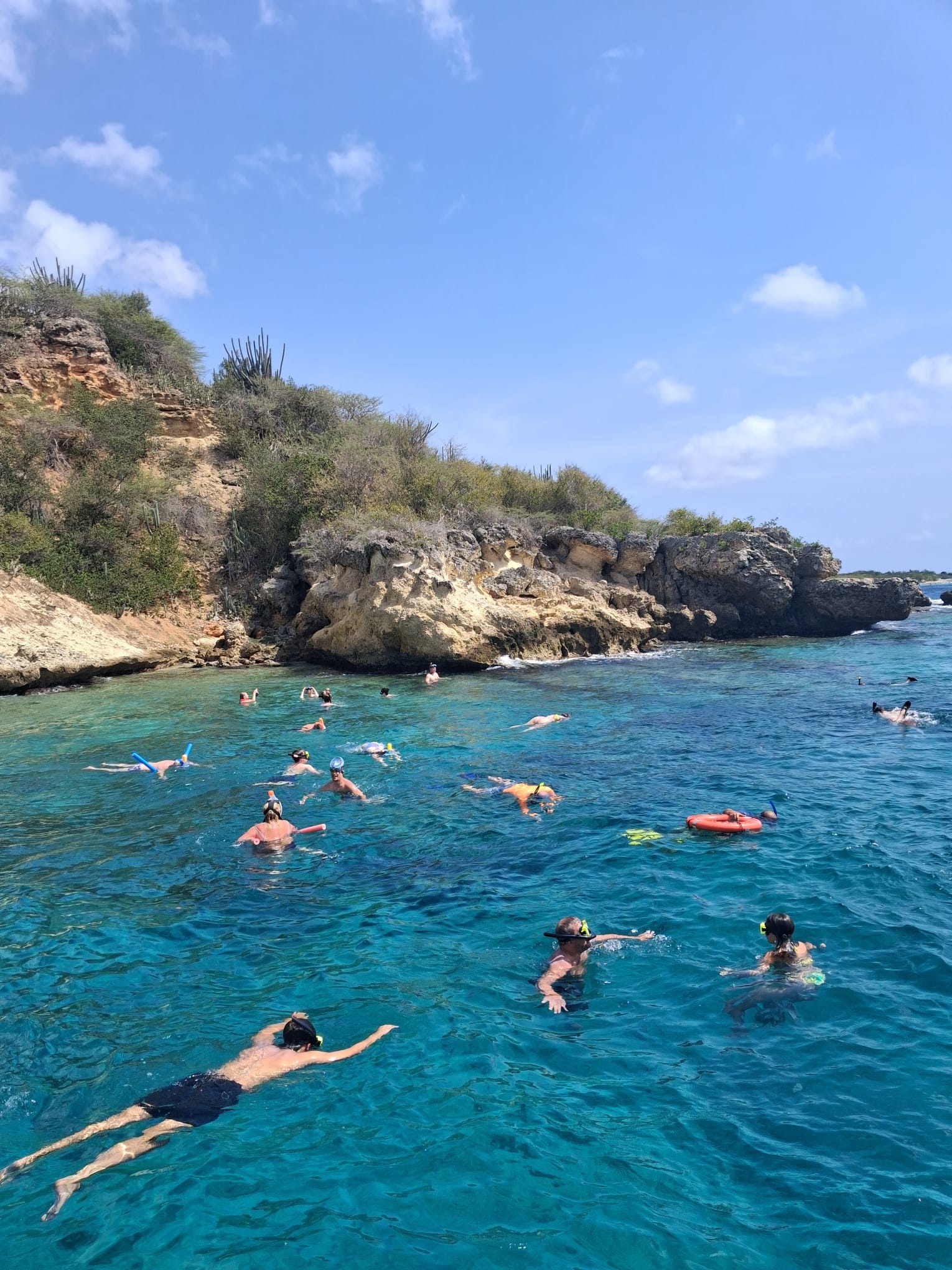Onze eerste stop was bij strand Caracasbaai. Hier namen we een verfrissende duik en werd er volop gezwommen en gesnorkeld. Het heldere water en de rustige omgeving maakten dit een perfecte start van de dag.