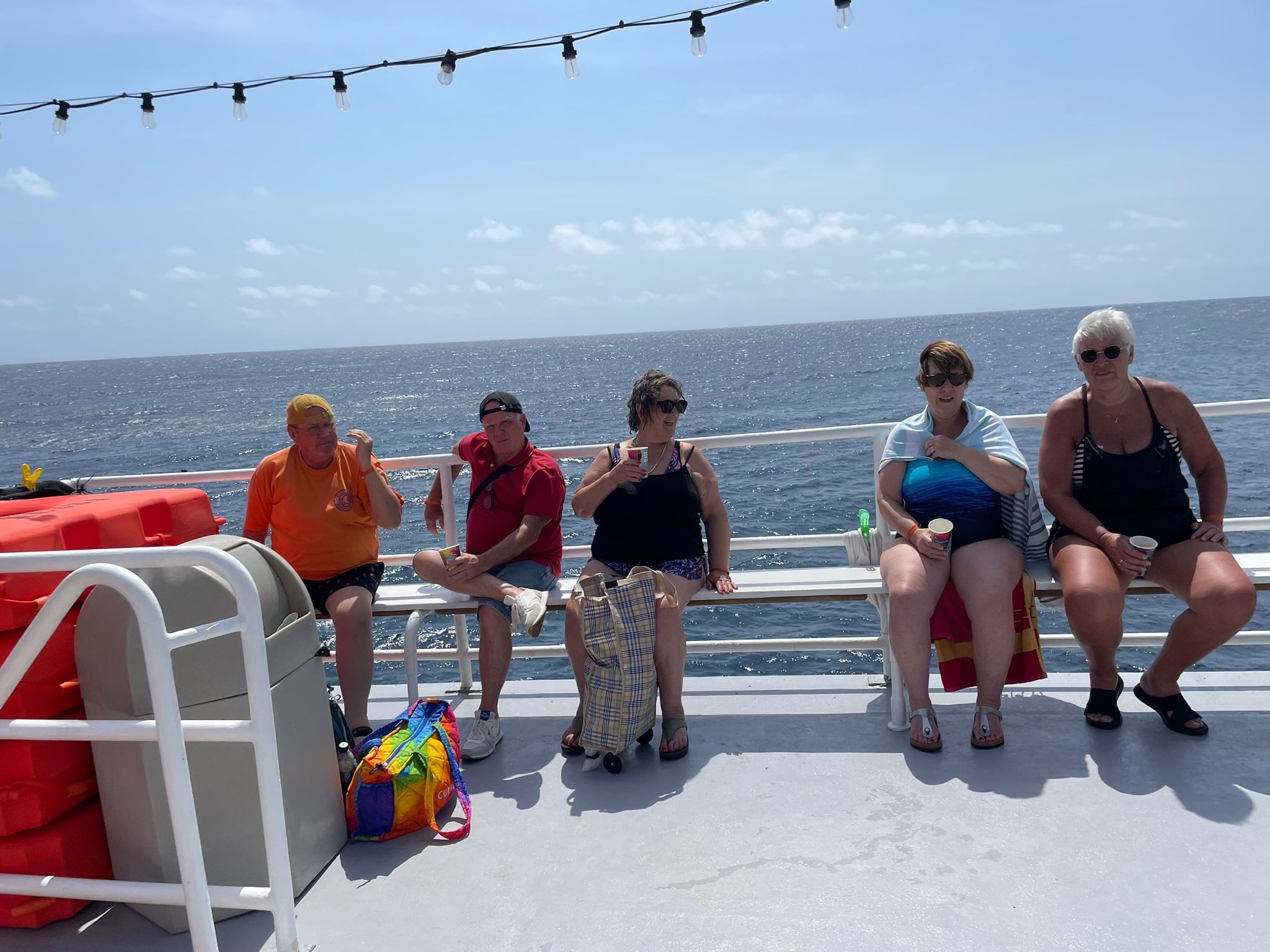 Na de lunch voeren we door naar de Tugboat. Voor de snorkelaars was dit een absoluut hoogtepunt: rondom het gezonken schip zwommen we in een oase van gekleurde vissen, koraal en de prachtige zeebodem. Een waar onderwaterparadijs. Voor anderen was het dobberen in zee en rustig zwemmen al meer dan voldoende — ook dát hoort bij genieten.