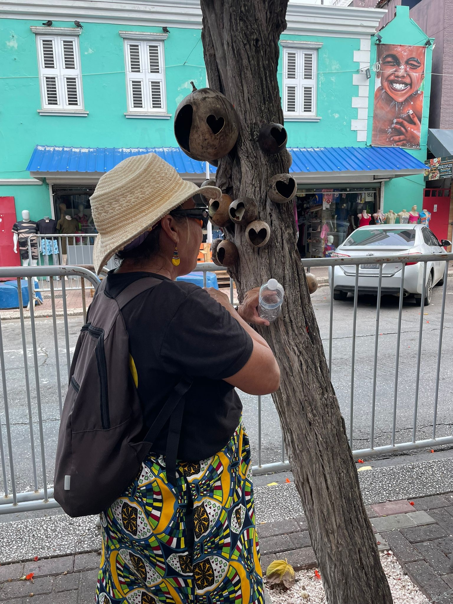 In Willemstad kun je moeiteloos uren rondlopen zonder je ook maar een moment te vervelen. Zo werd onder andere de wijk Otrobanda aangedaan, waar het Slavernijmuseum is gevestigd. Tijdens een wandeling kwamen Hans en Frietsje een bijzonder kunstwerk tegen, volledig gemaakt van plastic afval.