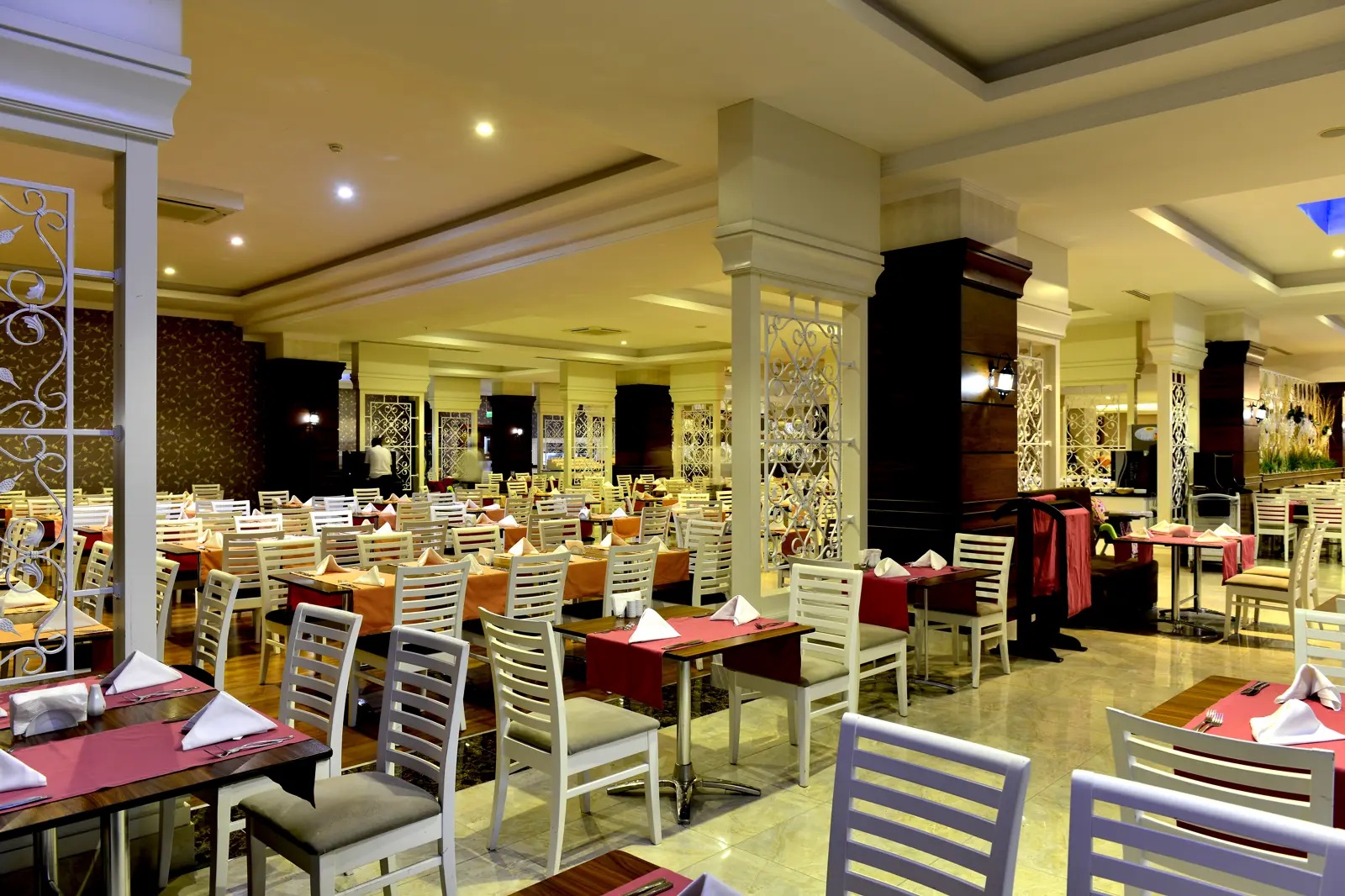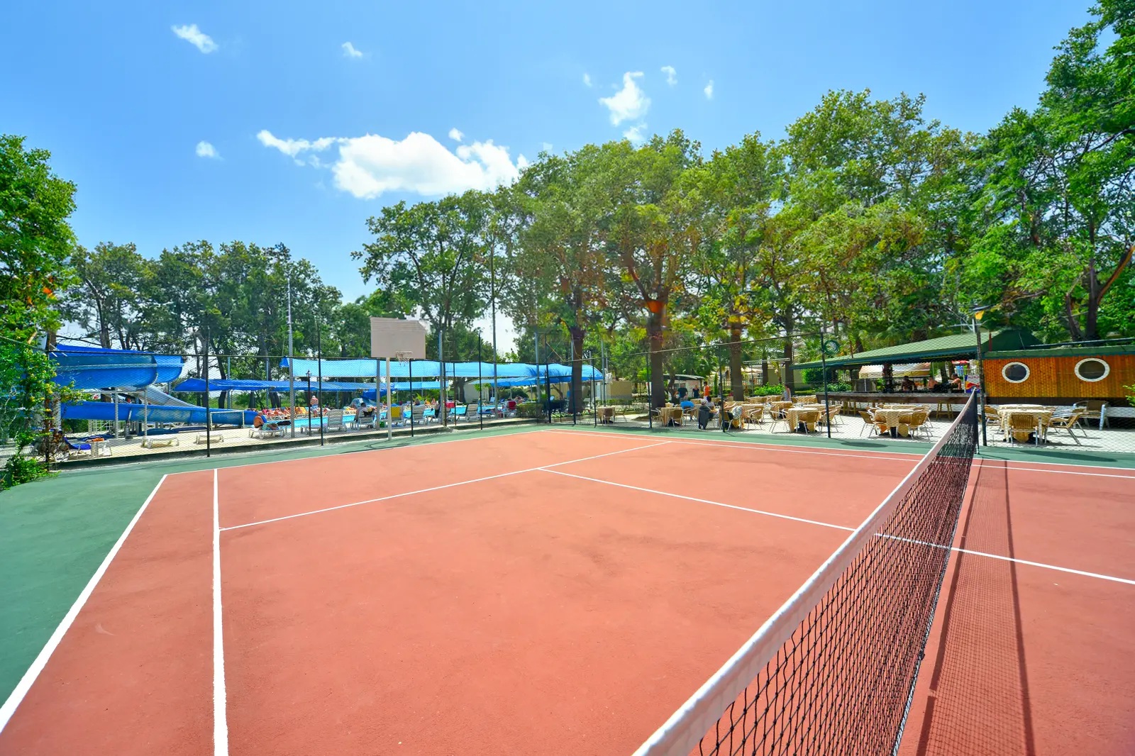 | Activiteiten & ontspanning Aerobics, Basketbal Beachvolleybal Biljart tegen betaling Boccia, Fitness, Tafeltennis Tennis, Voetbal, Volleybal, Yoga Spafaciliteiten, Sauna, Hamam Bubbelbad binnen Massages tegen betaling Schoonheidsbehandelingen tegen betaling Discotheek toegang tegen betaling Gameroom, Shows 6 keer per week Livemuziek 2 keer per week | Verzorging All Inclusive Ontbijt in buffetvorm (07.00-10.00 uur) Laat ontbijt in buffetvorm (10.00-10.30 uur) Lunch in buffetvorm (12.30-14.00 uur) Diner in buffetvorm (19.00-21.00 uur) Snacks (12.00-16.00 uur) Koffie, thee & koekjes (16.00-16.45 uur) IJs (15.00-15.45 uur) Middernachtsnack (23.00-00.00 uur) Non-alcoholische drankjes (10.00-00.00 uur) Tegen betaling: drankjes in flessen, import drankjes en verse vruchtensappen |