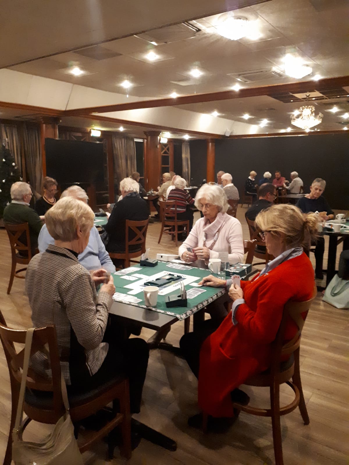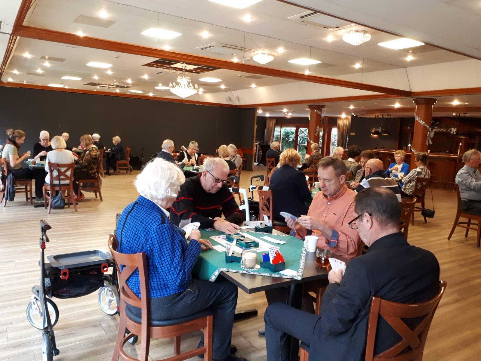 Onze gasten gaan met een tevreden gevoel over het diner en het koor aan tafel met een kopje koffie of thee. Het bridgen verloopt in een gemoedelijke sfeer onder het genot van gratis drankjes en hapjes.