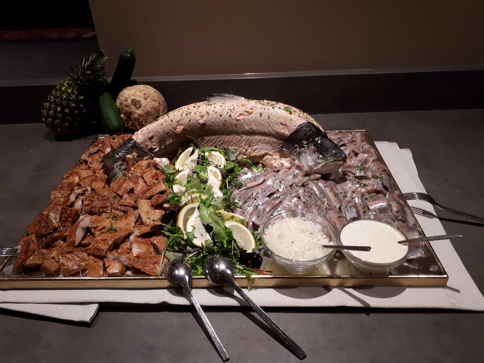 Vandaag staat er een dinerbuffet op het menu maar eerst wordt er een broodplankje en een ossenstaartsoepje aan tafel geserveerd. Het buffet ziet er mooi uit en belangrijker nog het smaakt heerlijk. Het dessert wordt rond 19.45 uur weer uit geserveerd aan tafel. De complimenten voor de keuken, het was weer heerlijk.