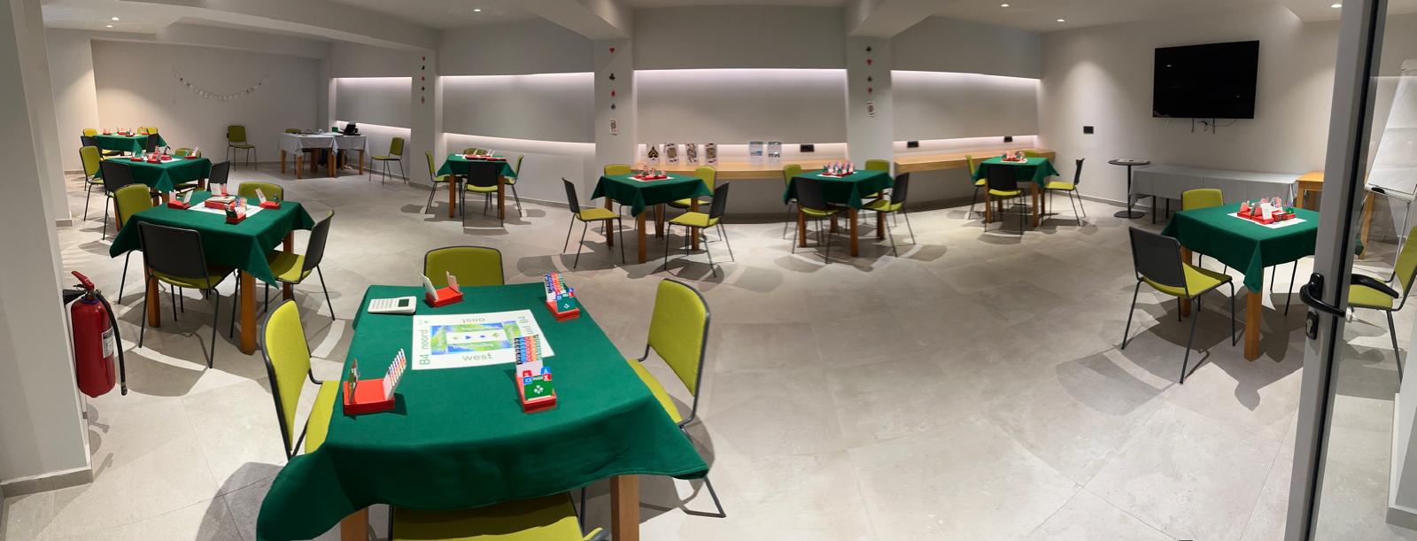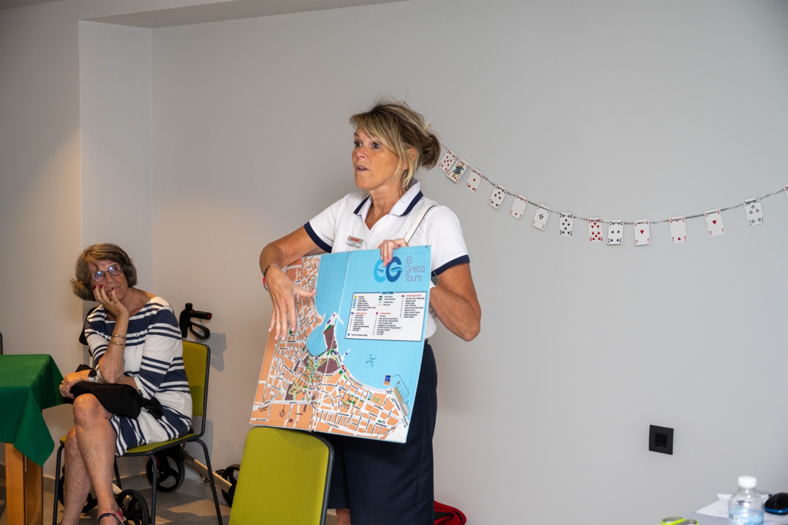 Na het ontbijt hebben we iedereen officieel welkom geheten en iets verteld over het bridgen. Doordat de bridgezaal alleen te bereiken is met een paar traptreden gaan we naar de bridgezaal lopen minimaliseren. We starten daarom pas na het eten met bridgen. Dan spelen we 6 ronden van 4 spellen. Na de derde ronde houden we een korte pauze.