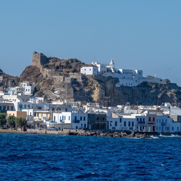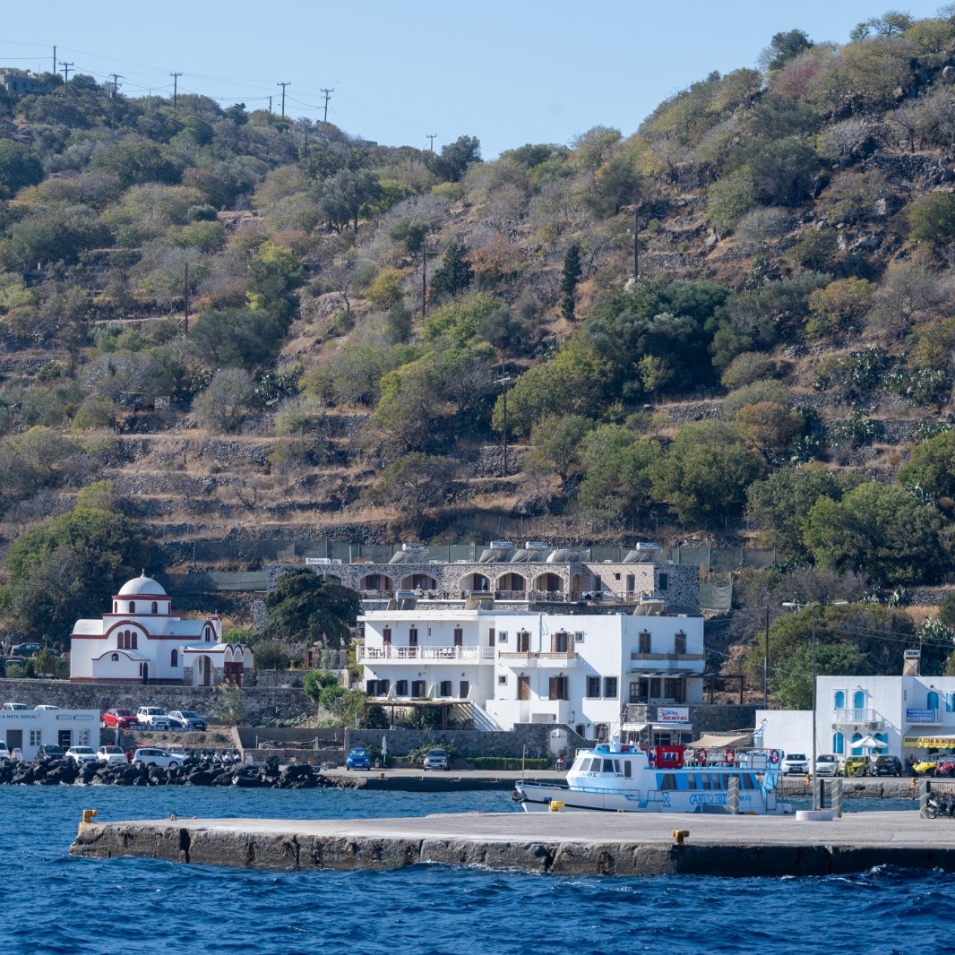Na het bezoek aan het vulkaaneiland varen we terug naar de kustplaats, waar onze gids Martine al op ons staat te wachten. Ze neemt ons mee door het charmante dorpje Nisyros en vertelt enthousiast allerlei verhalen over de omgeving en het klooster.