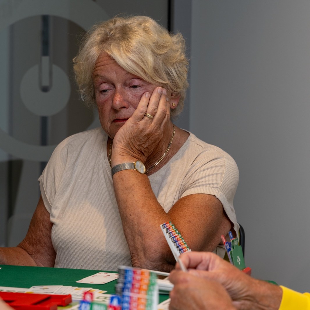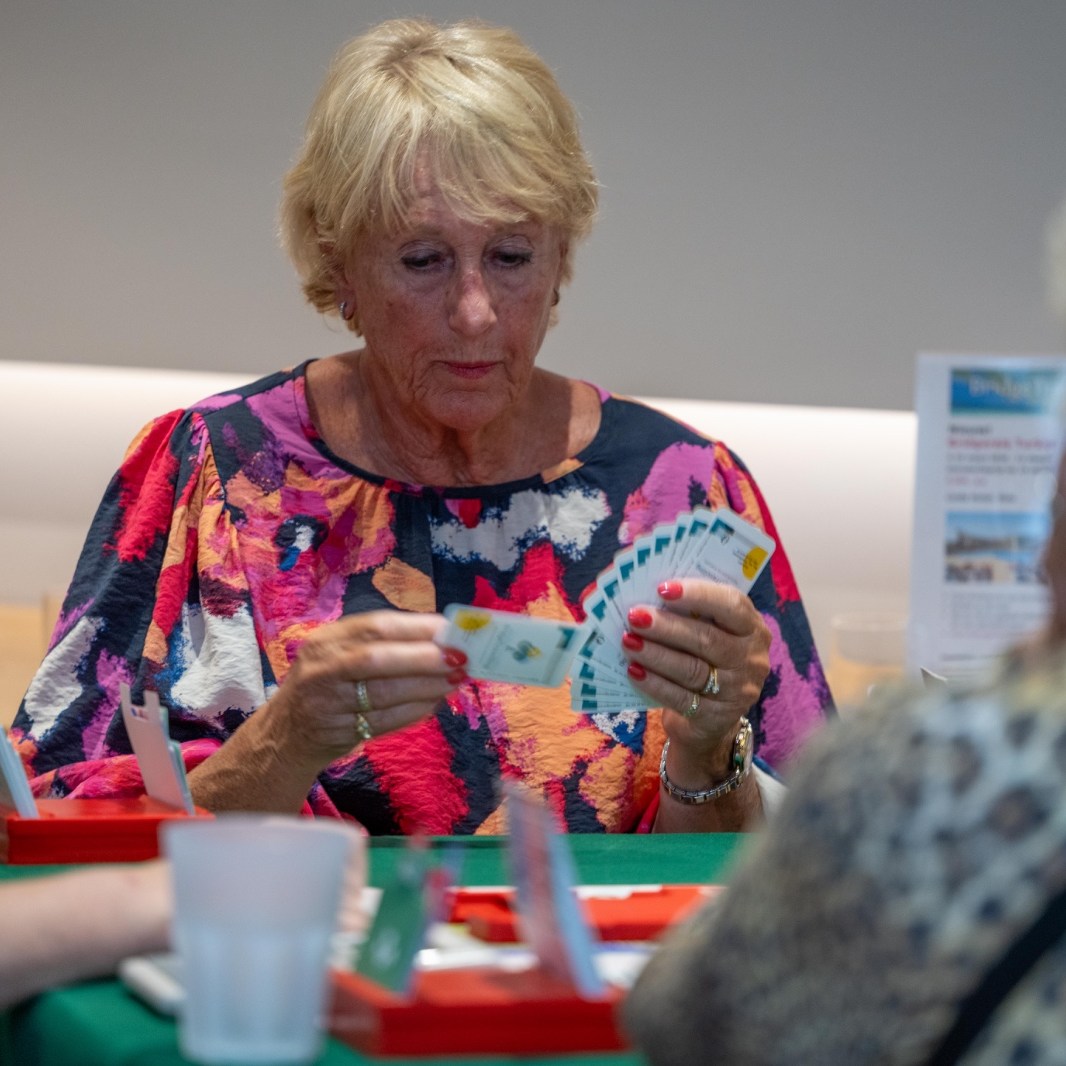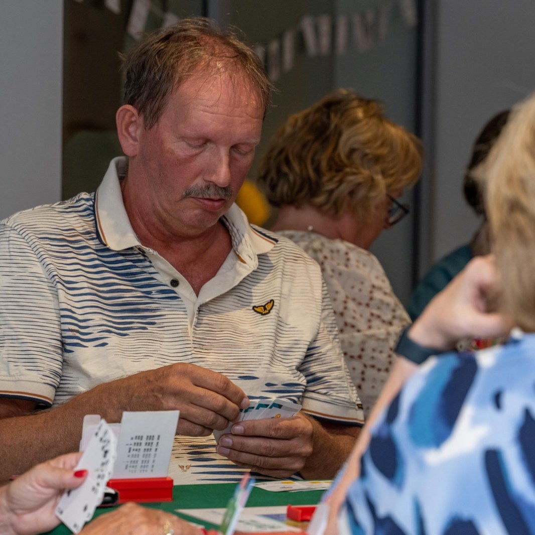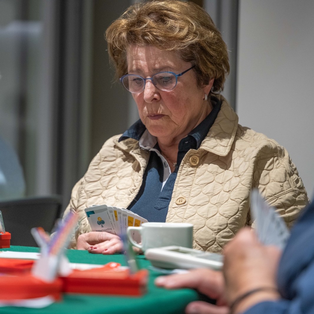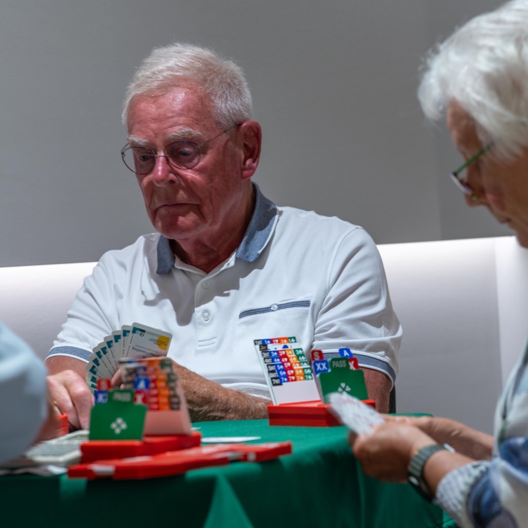 Na het heerlijke buffet schuiven we weer aan bij de bridgetafels voor de vierde zitting — gezellig en met gezonde spanning wie er vanavond met de winst vandoor gaat.