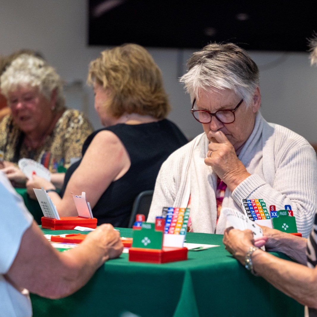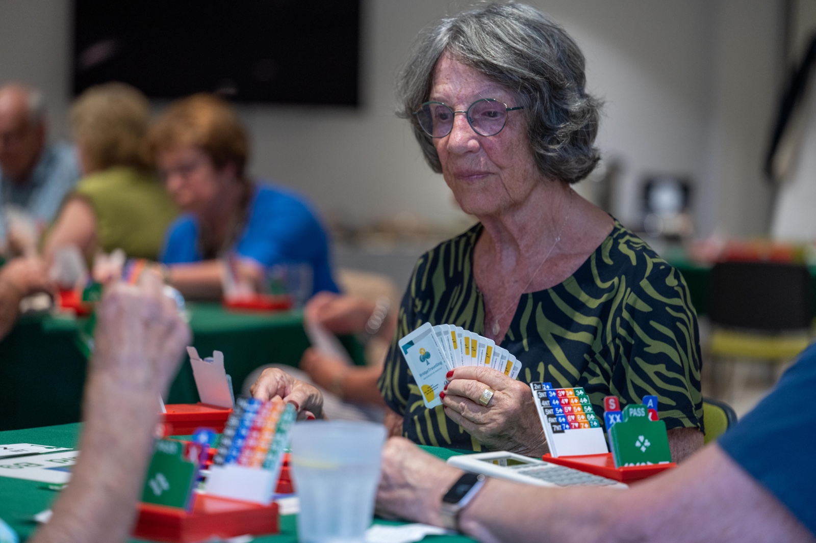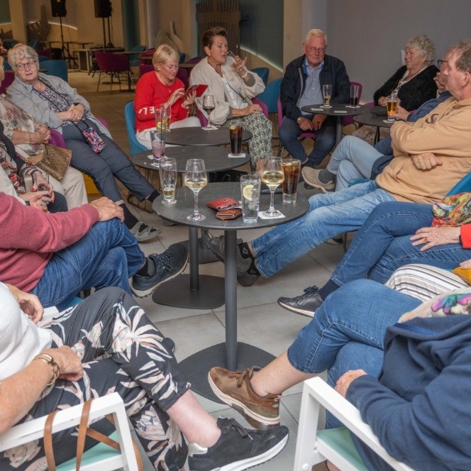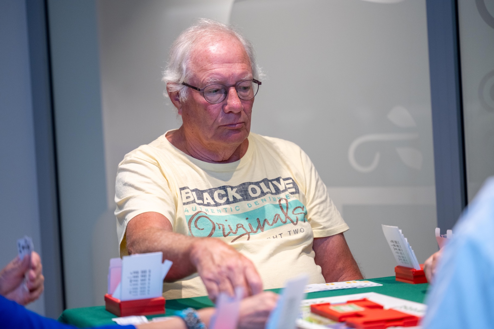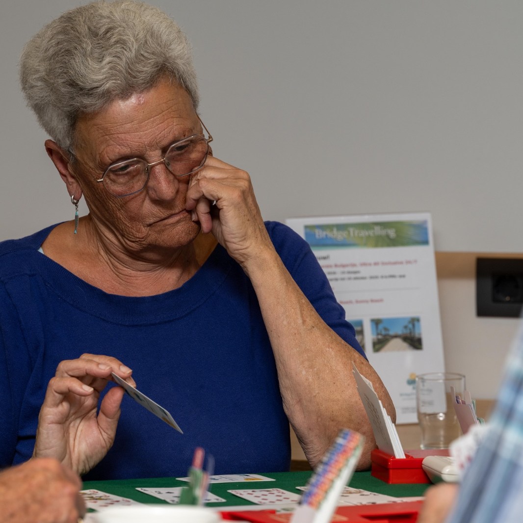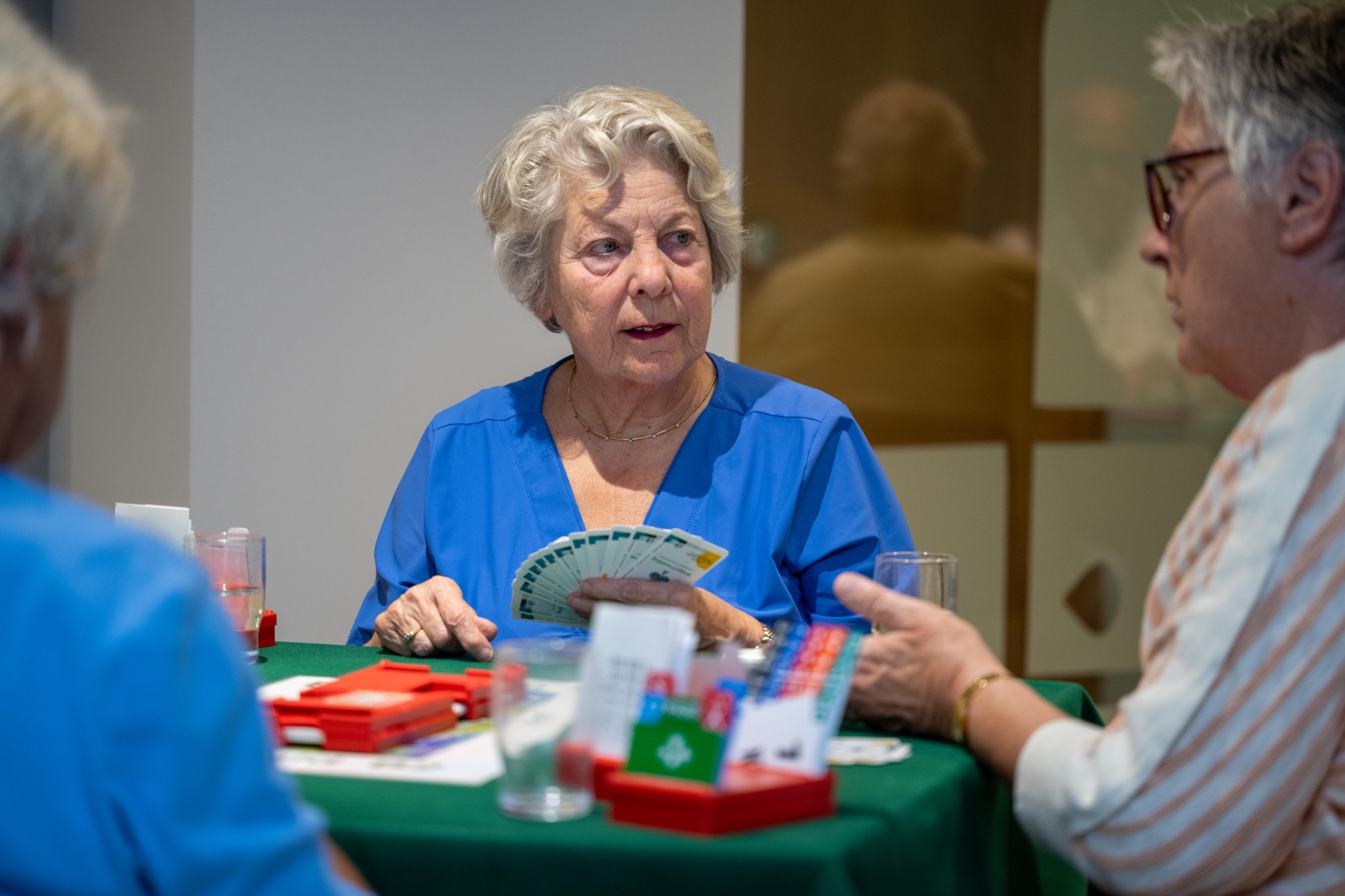 Na het heerlijke buffet schuiven we weer aan bij de bridgetafels voor de vierde zitting — gezellig en met gezonde spanning wie er vanavond met de winst vandoor gaat.