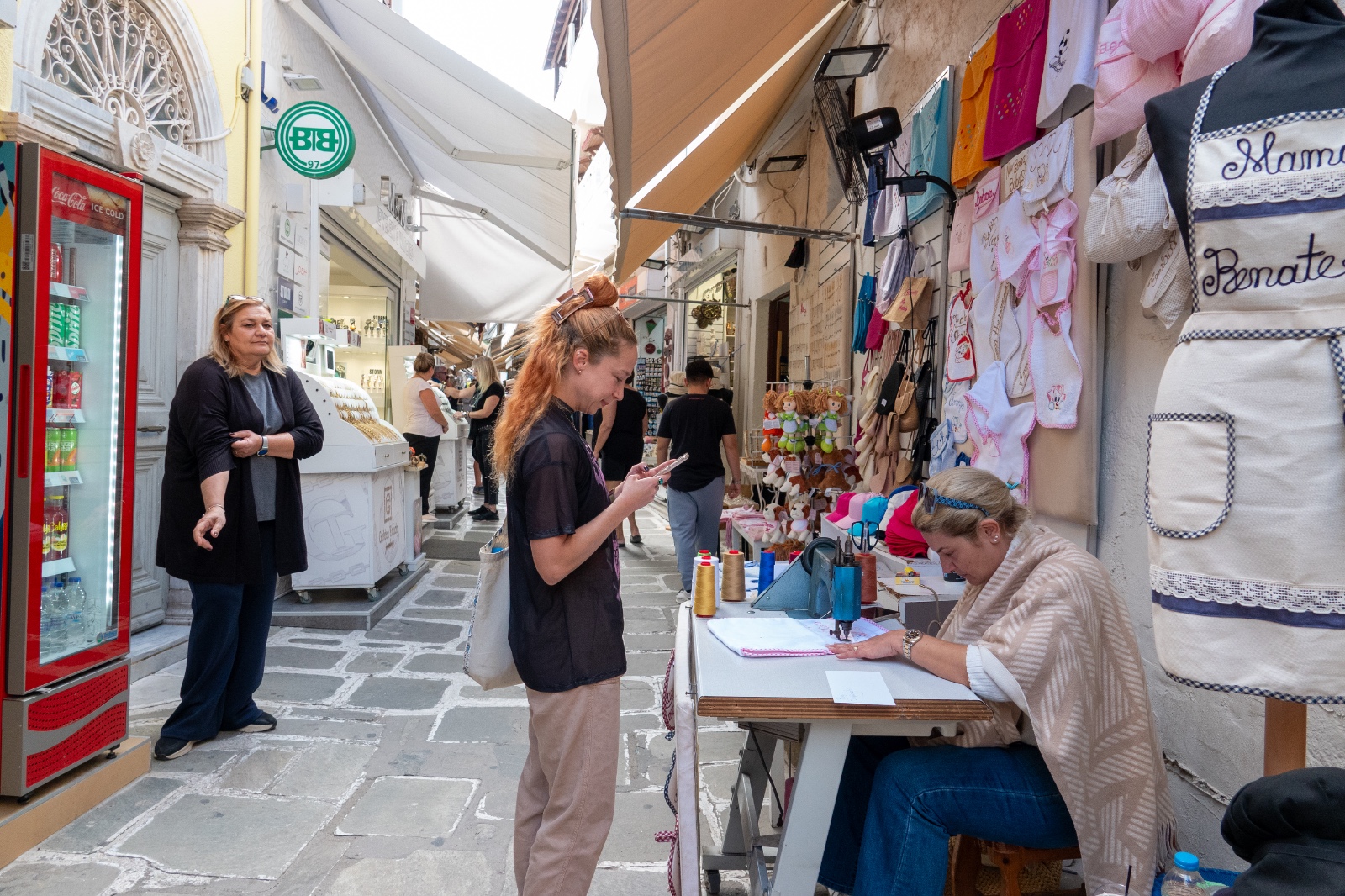 Sommigen zijn nog naar het vulkaaneiland gegaan, terwijl anderen een bezoek brachten aan Kos-stad om de laatste inkopen te doen. Ikzelf ben mijn nieuwe sandalen gaan ophalen — op maat gemaakt door de lokale schoenmaker, die hier echt vakwerk levert.