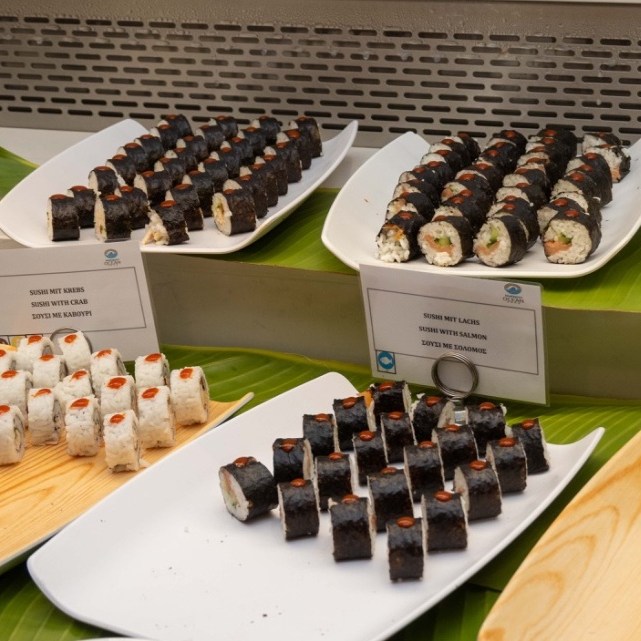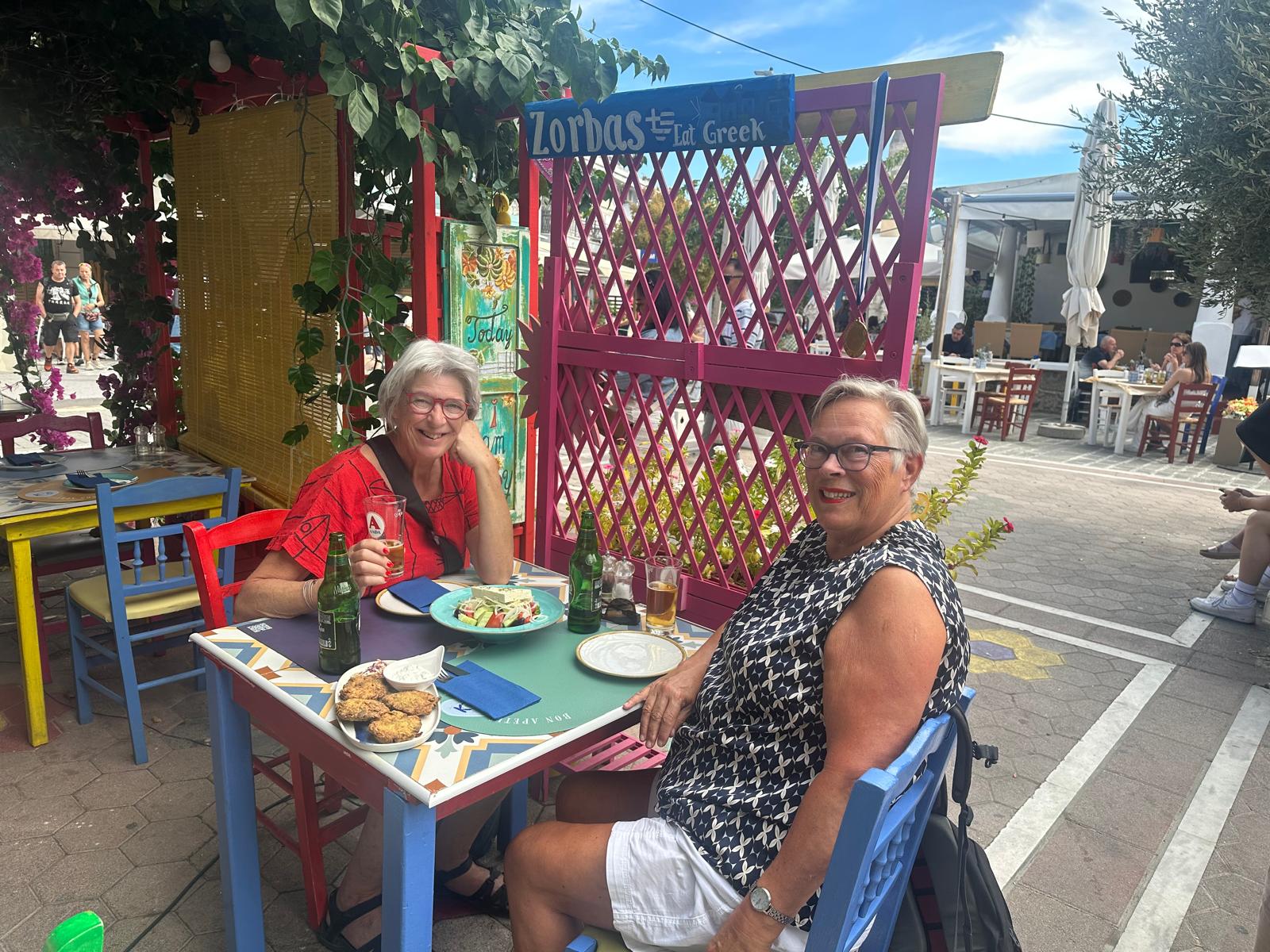 Rond 17.45 uur kwamen we weer terug in het hotel. Na een heerlijke douche schoof iedereen om 18.30 uur gezellig aan tafel. Het was vanavond Grieks buffet, dus genieten van allerlei lokale gerechten!