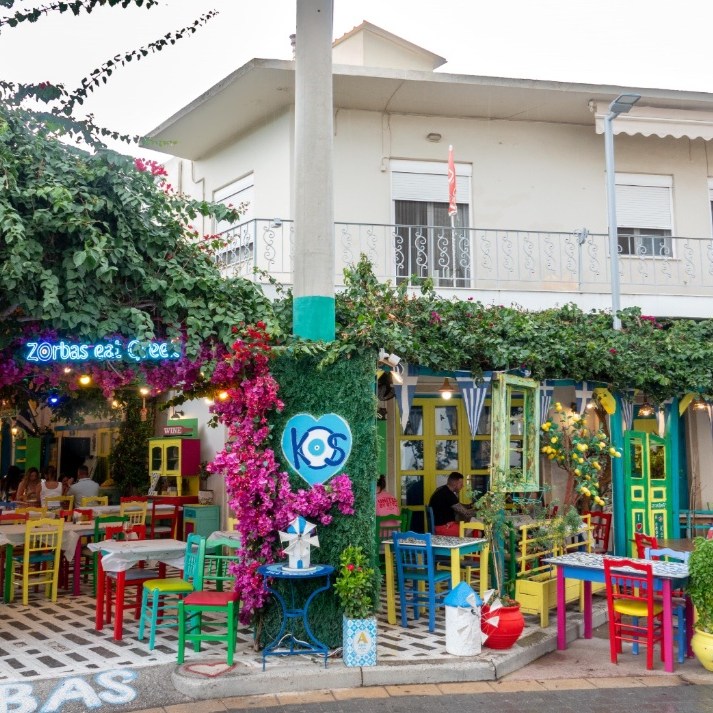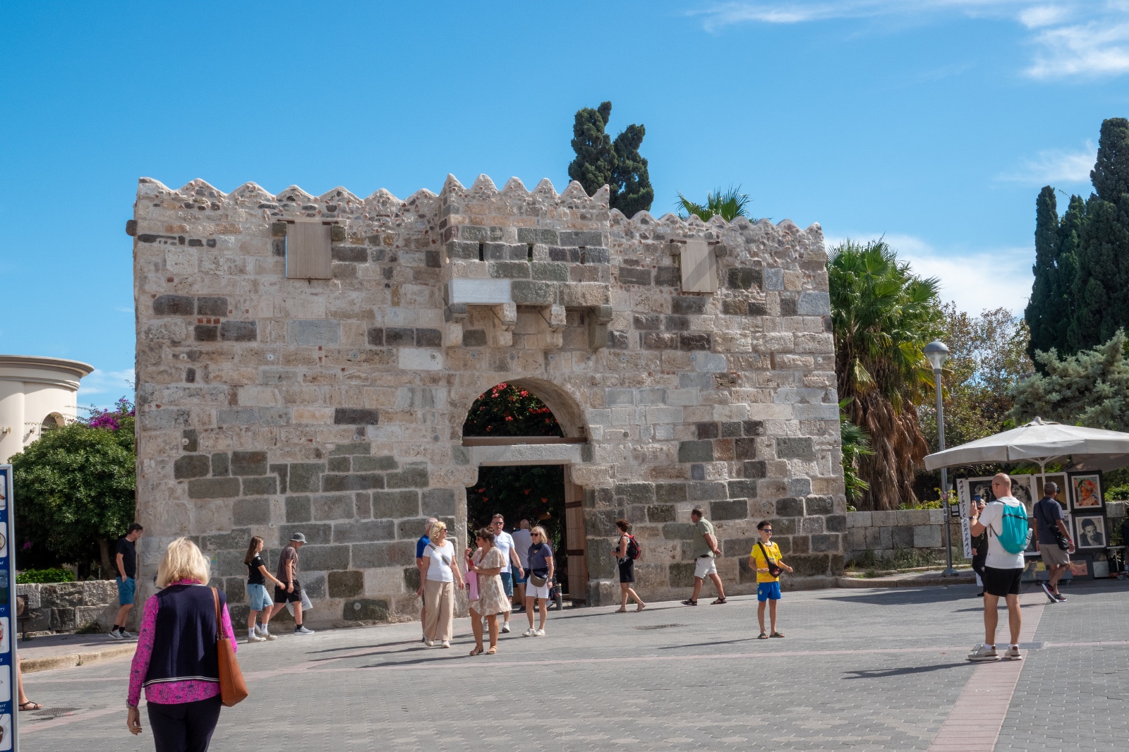 Aangekomen in het sfeervolle Kos regent het heftig, jammer! Maar goed, dan maar eerst een lekker kopje koffie onder een overkapping gedronken. Nadat we even hadden genoten van het kopje koffie, hield de regen op en wandelden we de stad in. Kos heeft veel gezellige winkeltjes en terrasjes. Nu het einde van het seizoen nadert, wordt er her en der flink afgeprijsd — altijd leuk om even rond te snuffelen.