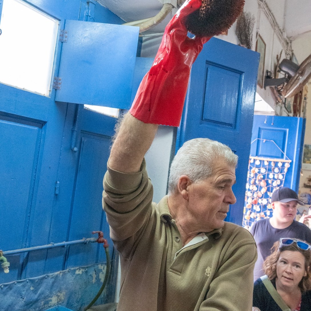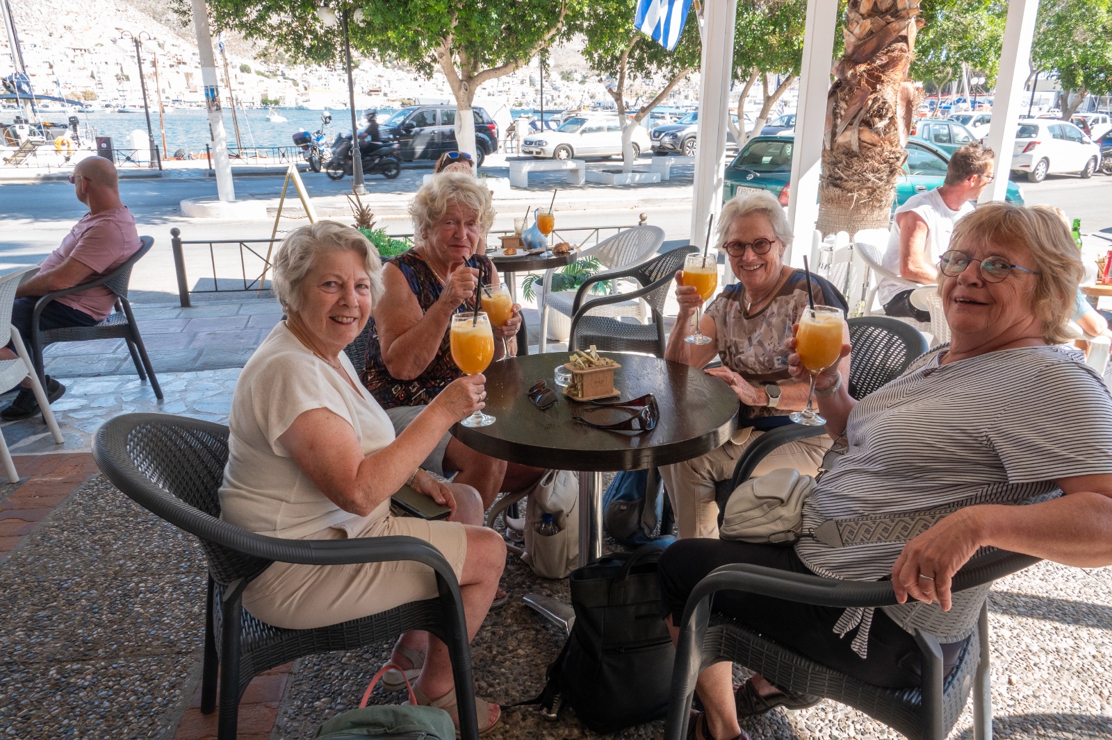 Na het bezoek aan de sponzen hadden we een uurtje vrije tijd. Heerlijk om even door de straatjes te slenteren of neer te strijken bij de taverne voor een glas verse sinaasappelsap met ijs.