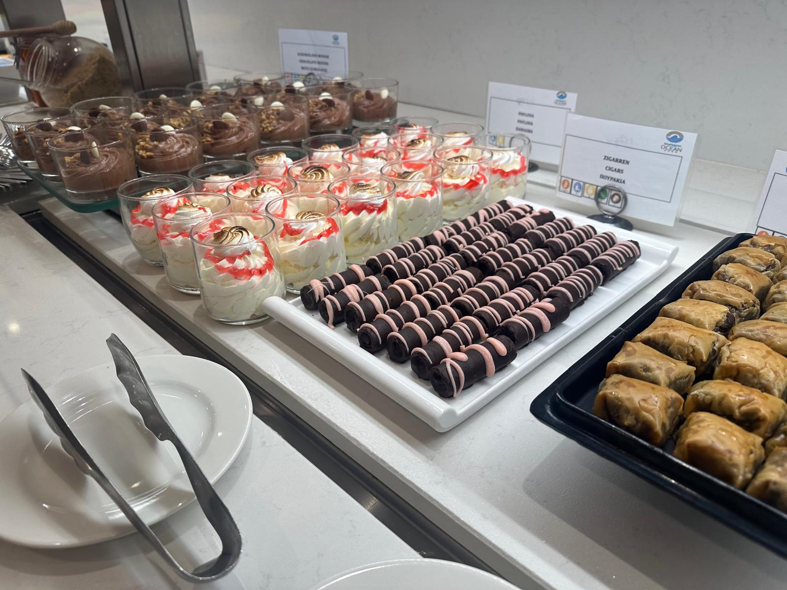 Nadat Carel klaar was met zijn verhaal heeft Ellen van Corendon haar verhaal verteld over het eiland en de mogelijke excursies waar we aan mee kunnen doen. Er was flink animo voor een aantal excursies. Het inschrijven van de excursies vergt nogal wat tijd dus we zijn weer klaar voor de lunch, ook weer te lekker.