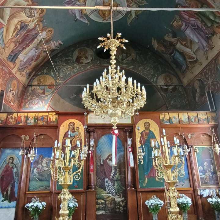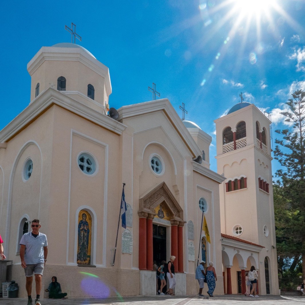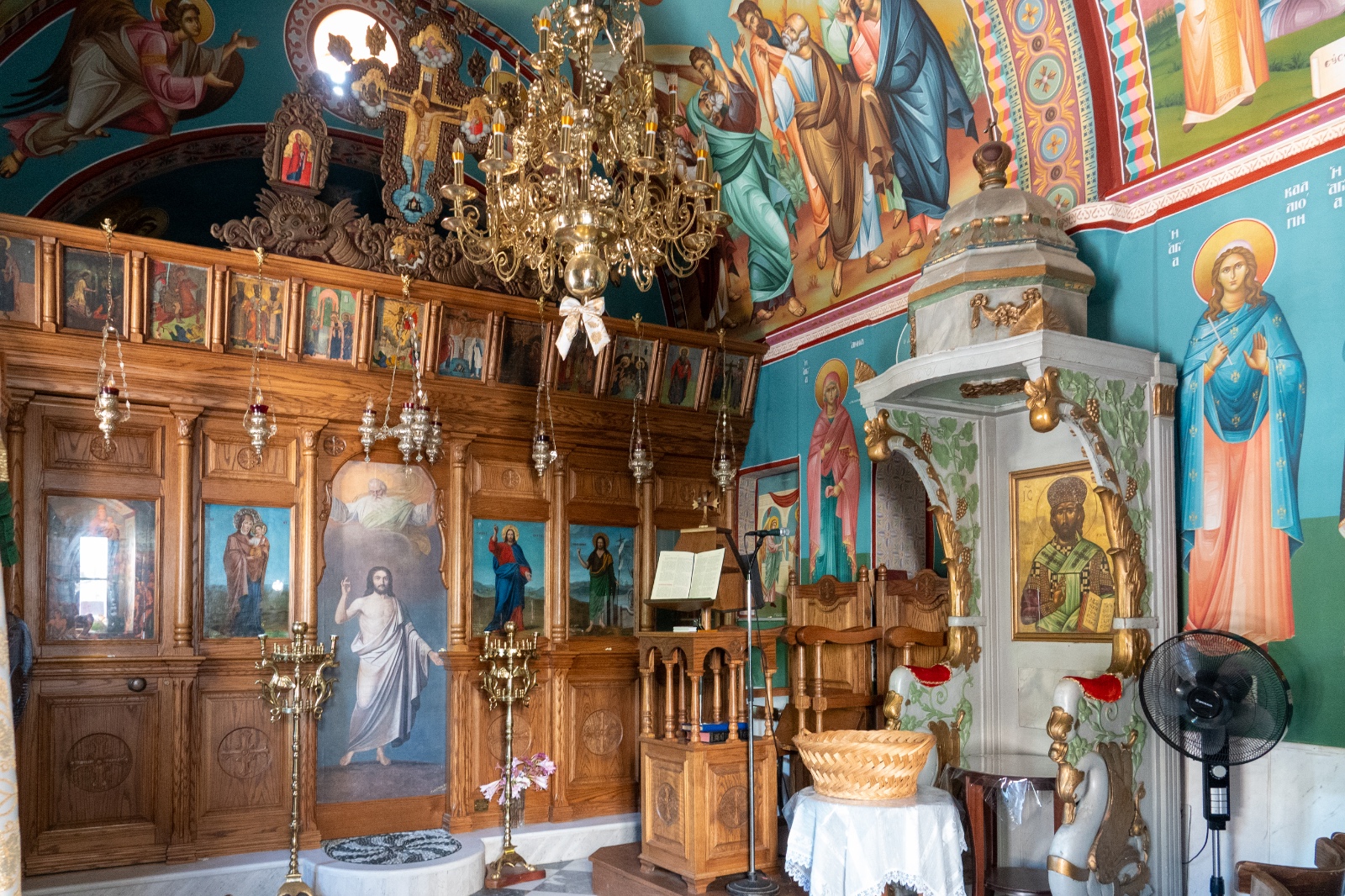 De volgende stop was Plaka, waar honderden pauwen verblijven. Het schiereiland Kefalos werd daarna bezocht. Leuke kleine strandjes aan het oosten hiervan. Ook de lunch bij een klein restaurantje smaakje prima. We besloten door de bergen weer naar huis te rijden en maakten nog een stop bij een prachtige kerk, de Kerk van Lagoudi. De priester gaf ons uitleg en was zeer gastvrij.